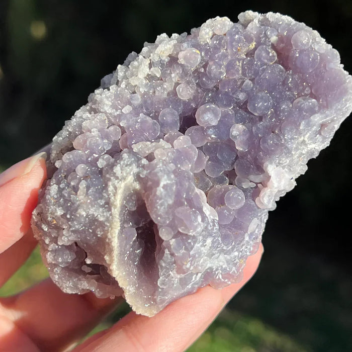 Szőlő Achát az achát egyik legelbűvölőbb formája, a föld erejének és a botroidális kristályosodás titokzatos szépségének kombinációja, amely a szőlőfürt szemekre emlékeztet. Lila, sötét lila...