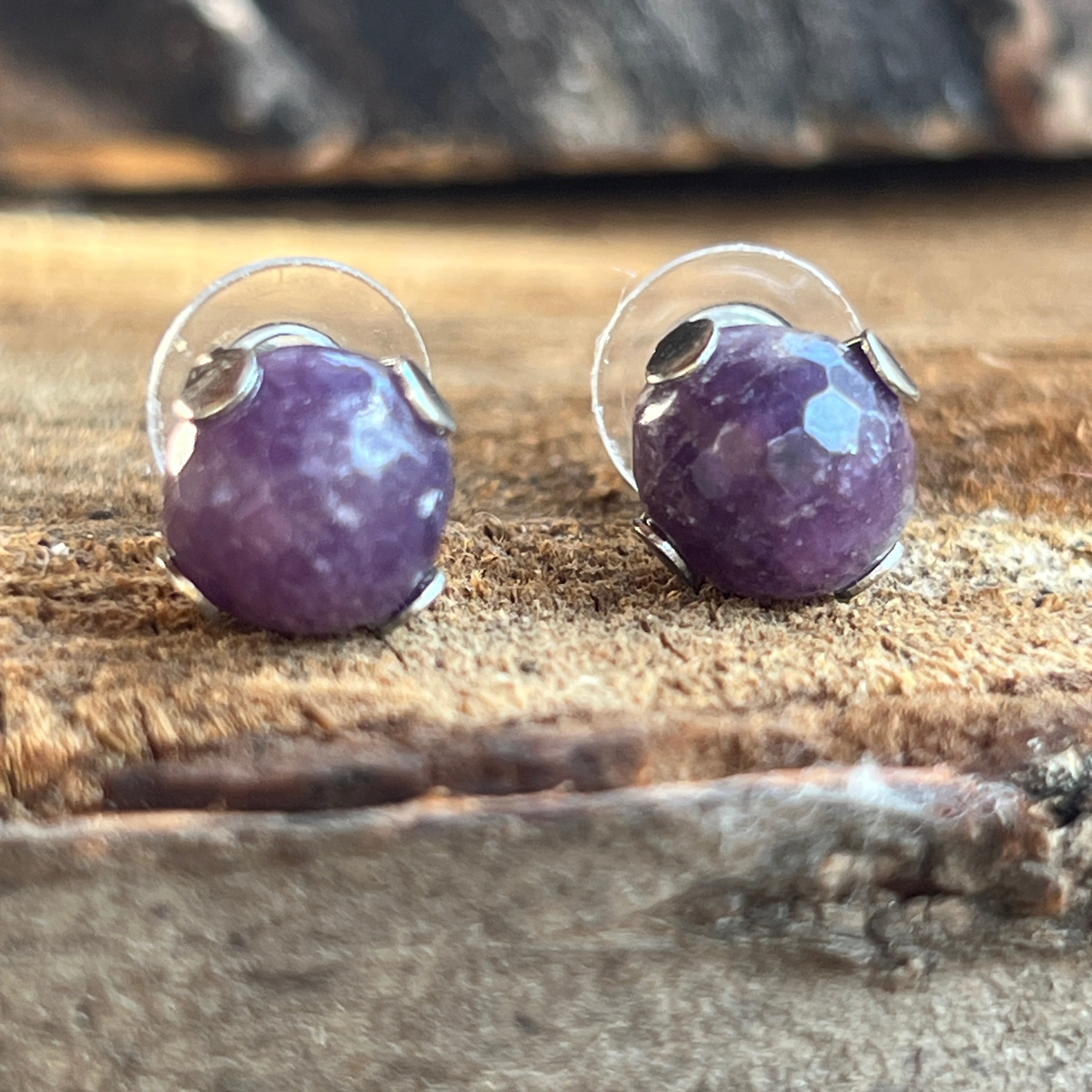 10 mm-es csiszolt lepidolit fülbevaló stud