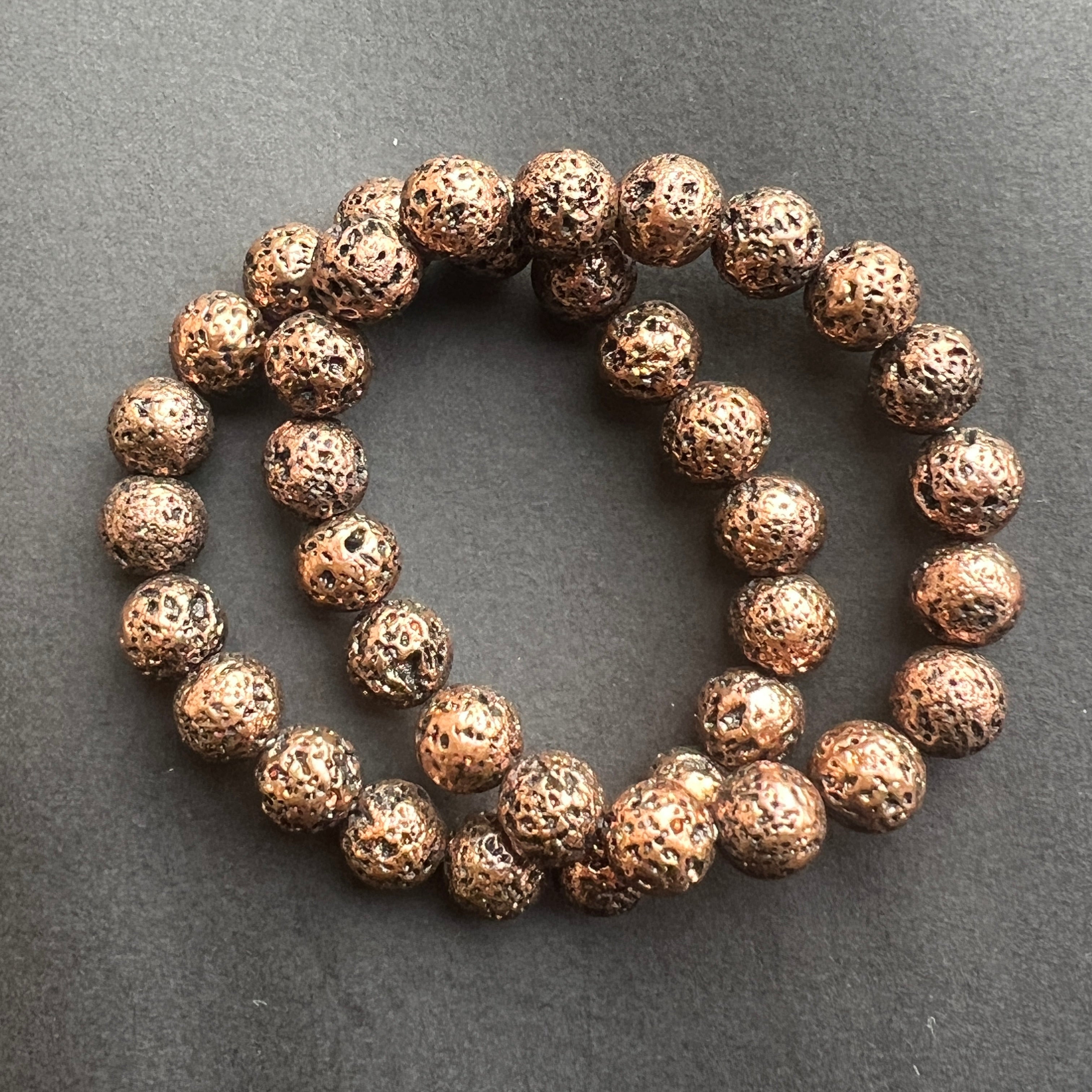 Vélemények - 10 mm-es lávakő karkötő rézben