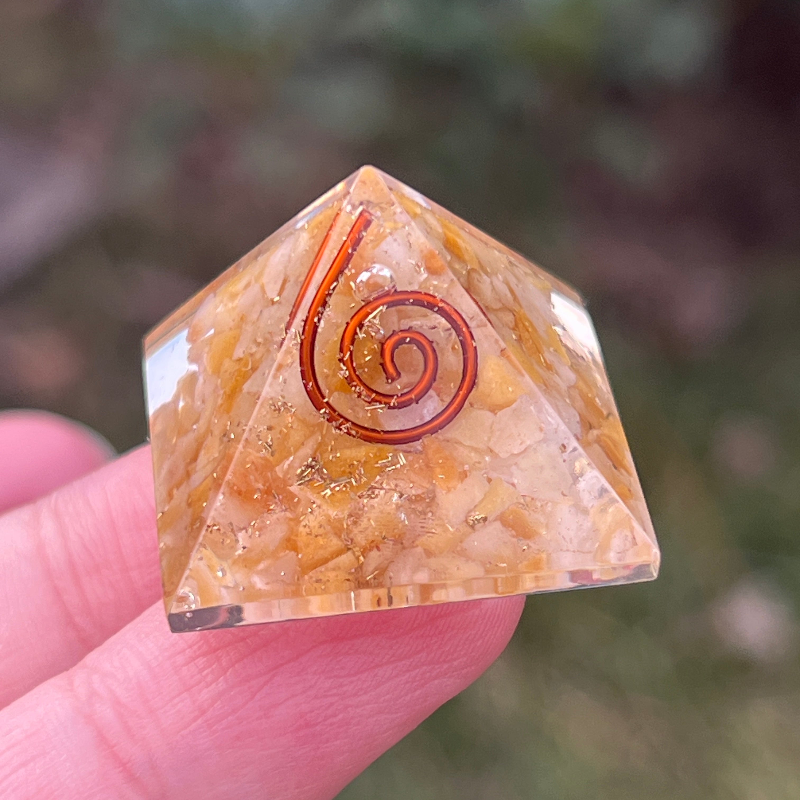 3 cm-es citrin gyanta piramis, mérete: 3 x 3 cm