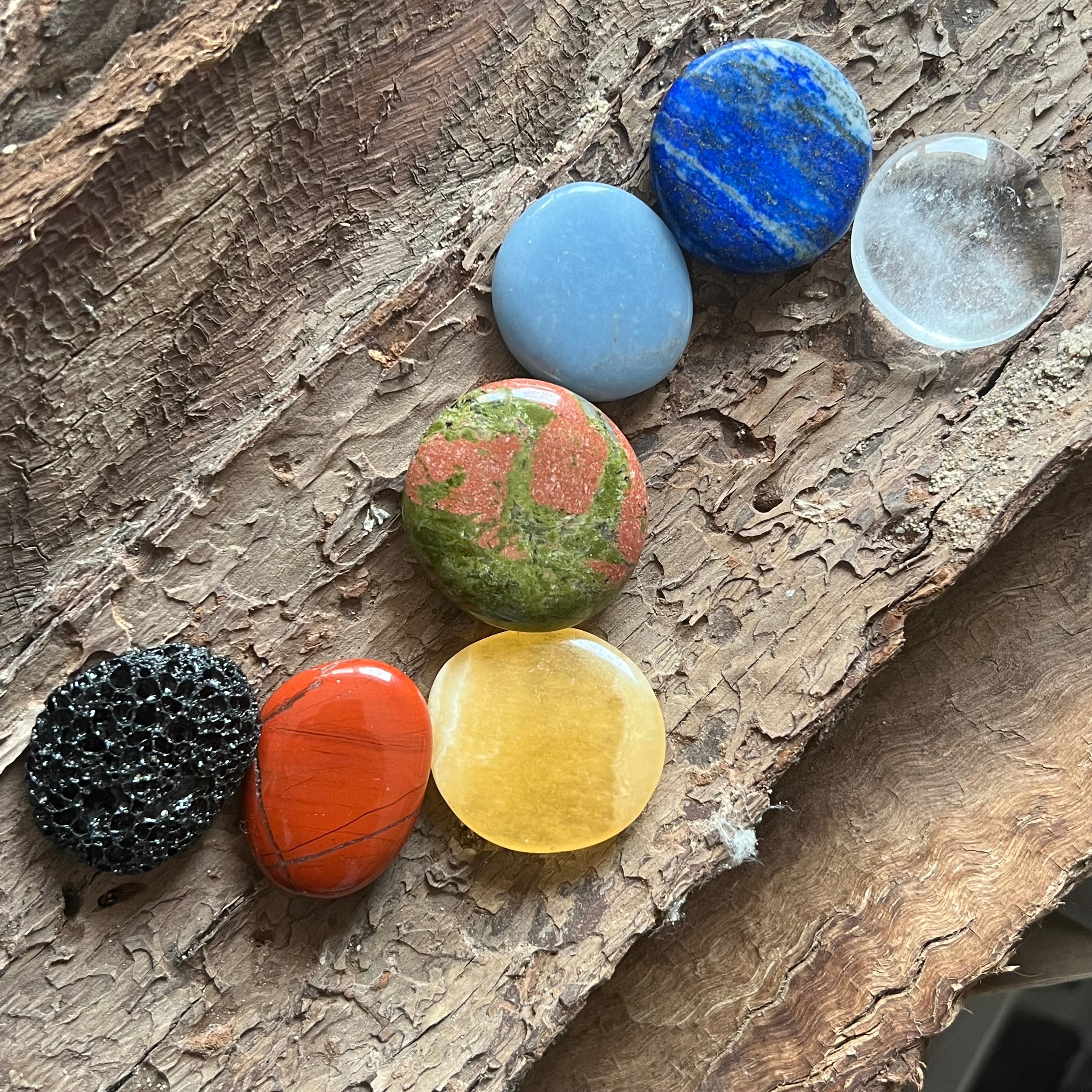 7 csakra meditációs kövek készlet m1, a kövek mérete kb. 4 cm