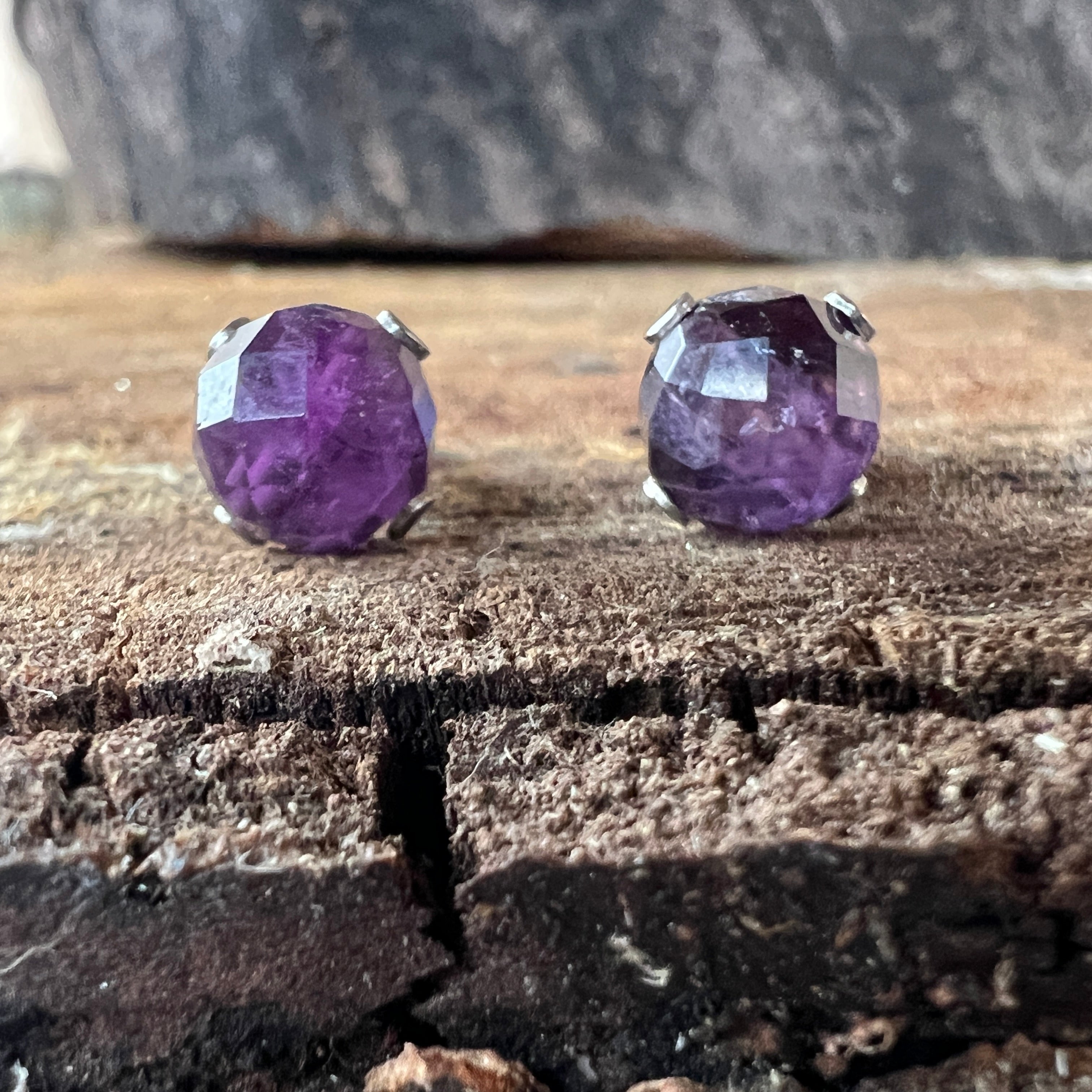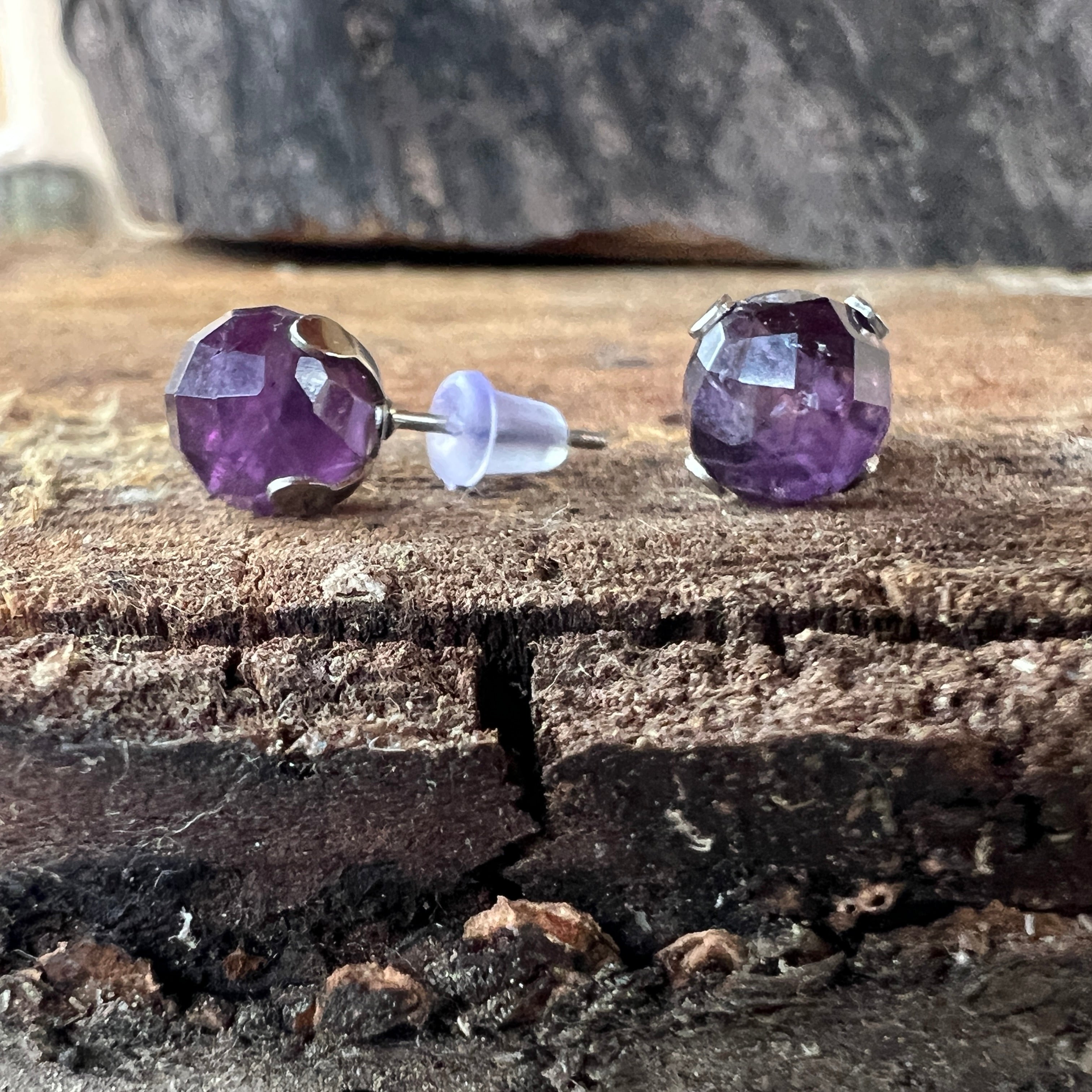 8 mm-es fazettált ametiszt gömb fülbevaló stud