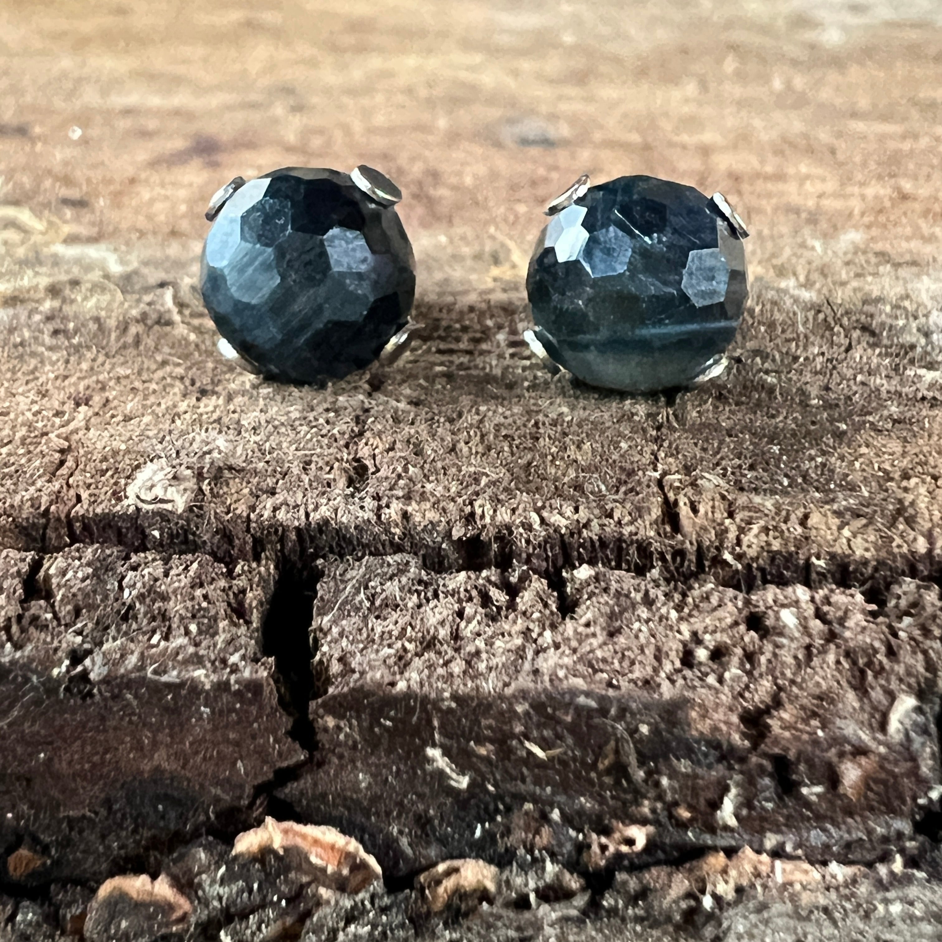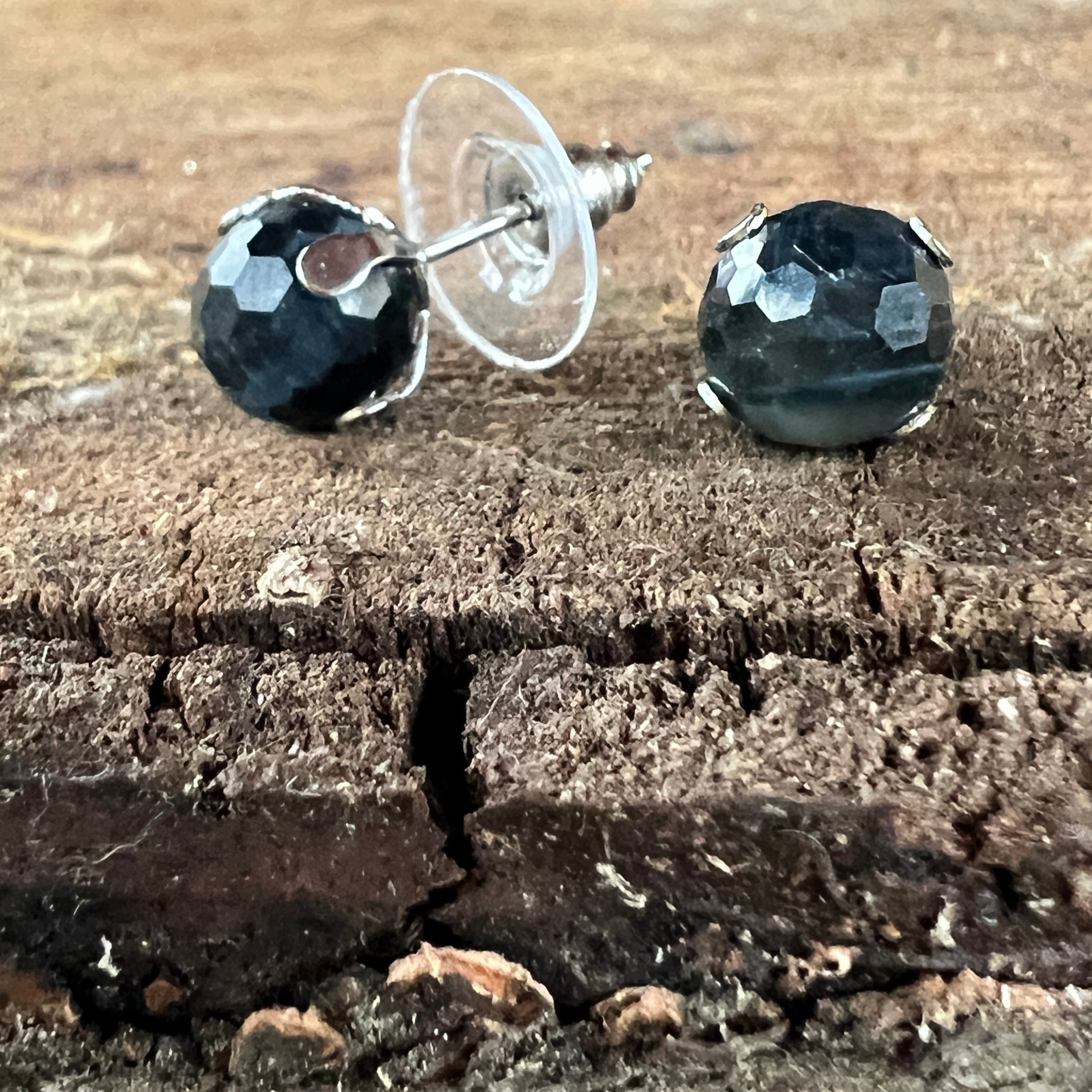 8 mm-es fazettált iolit gömb fülbevaló peg