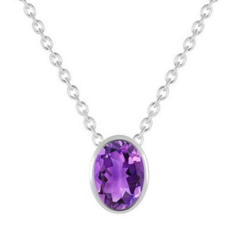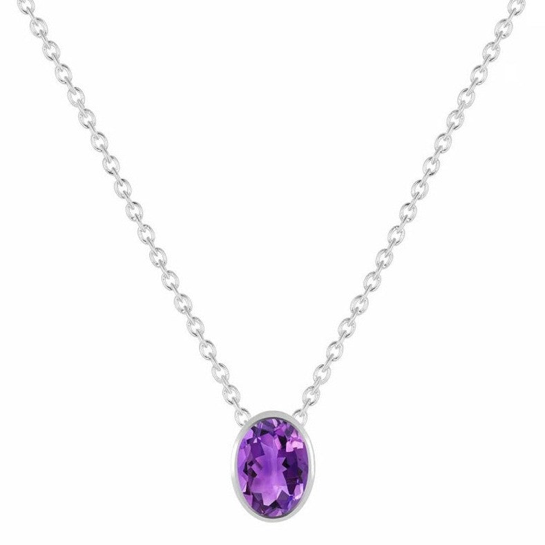8 mm Ovális Ametiszt Ezüst Nyaklánc