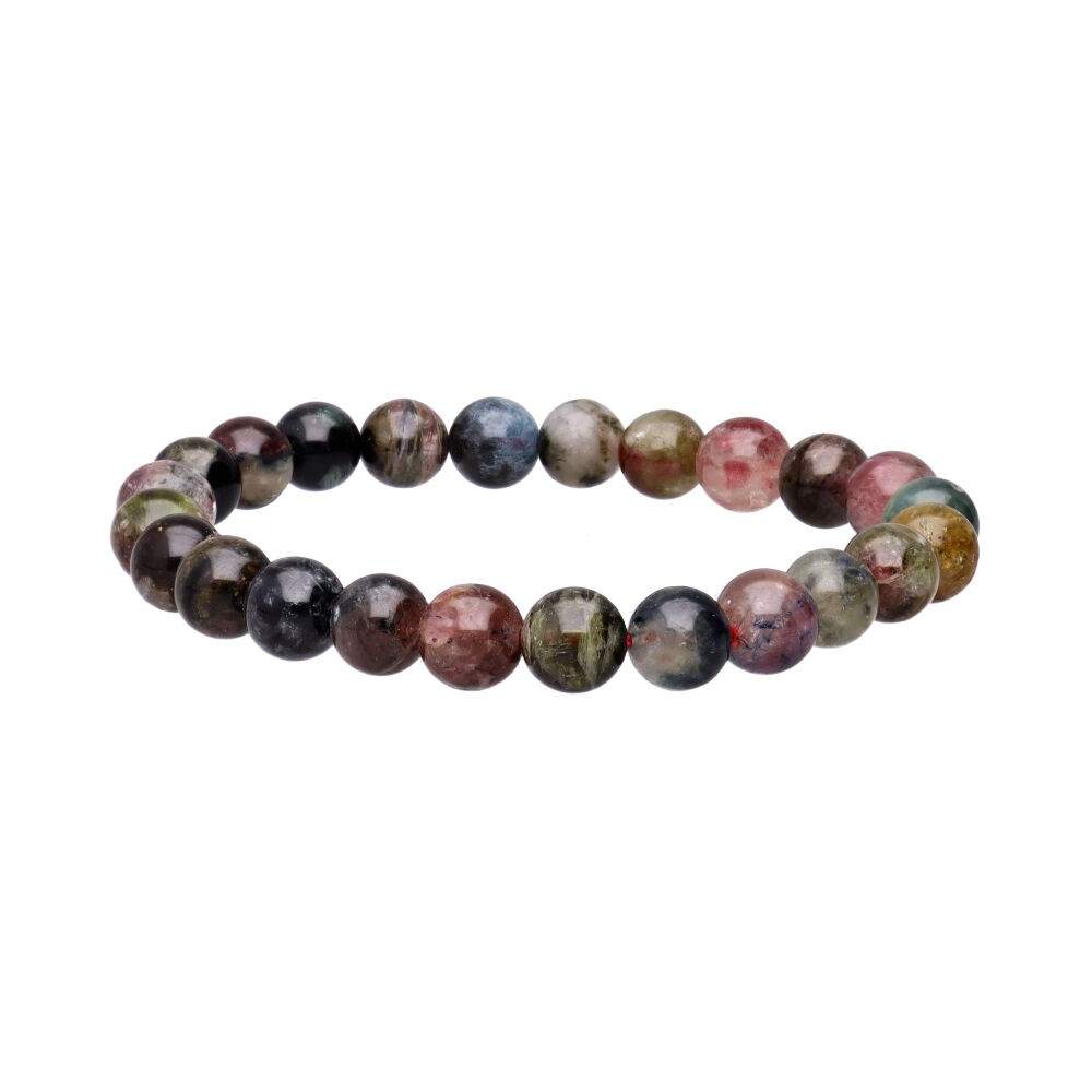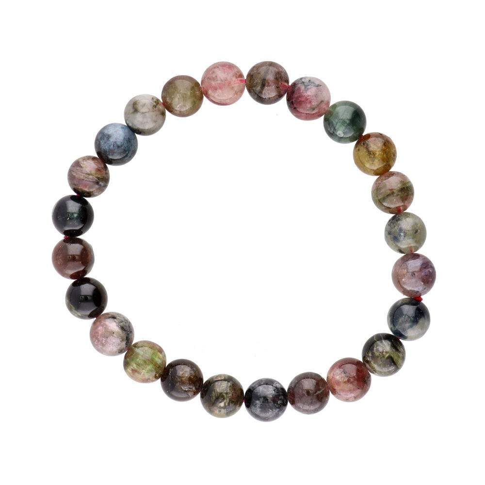 A vegyes turmalin karkötő természetes színpalettát hoz össze, a rózsaszíntől és zöldtől a mélyfeketéig, minden gyöngy a saját egyedi energiáját hordozza.