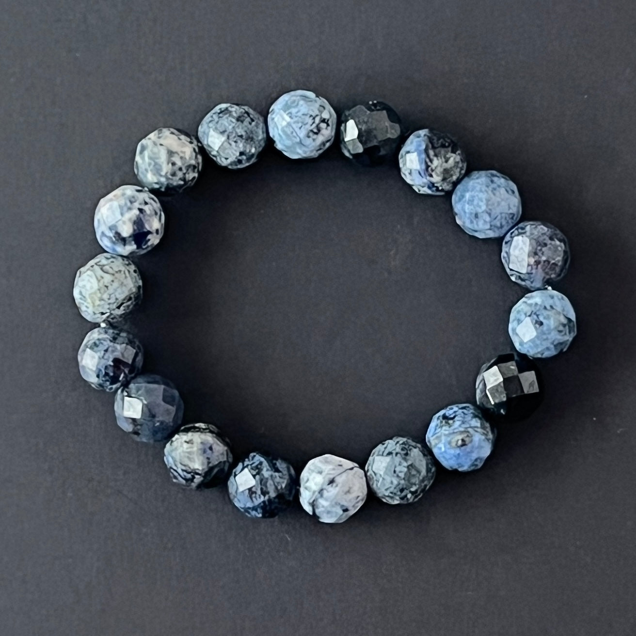 Ez a csiszolt dumortierit karkötő 9–10 mm-es gyöngyökből áll, és mély kék árnyalataival valamint a csiszolt felület fényjátékával lenyűgöz. Minden karkötő egyedi, apró eltéréseket mutatva a kristály természetes szépségét tükrözve.