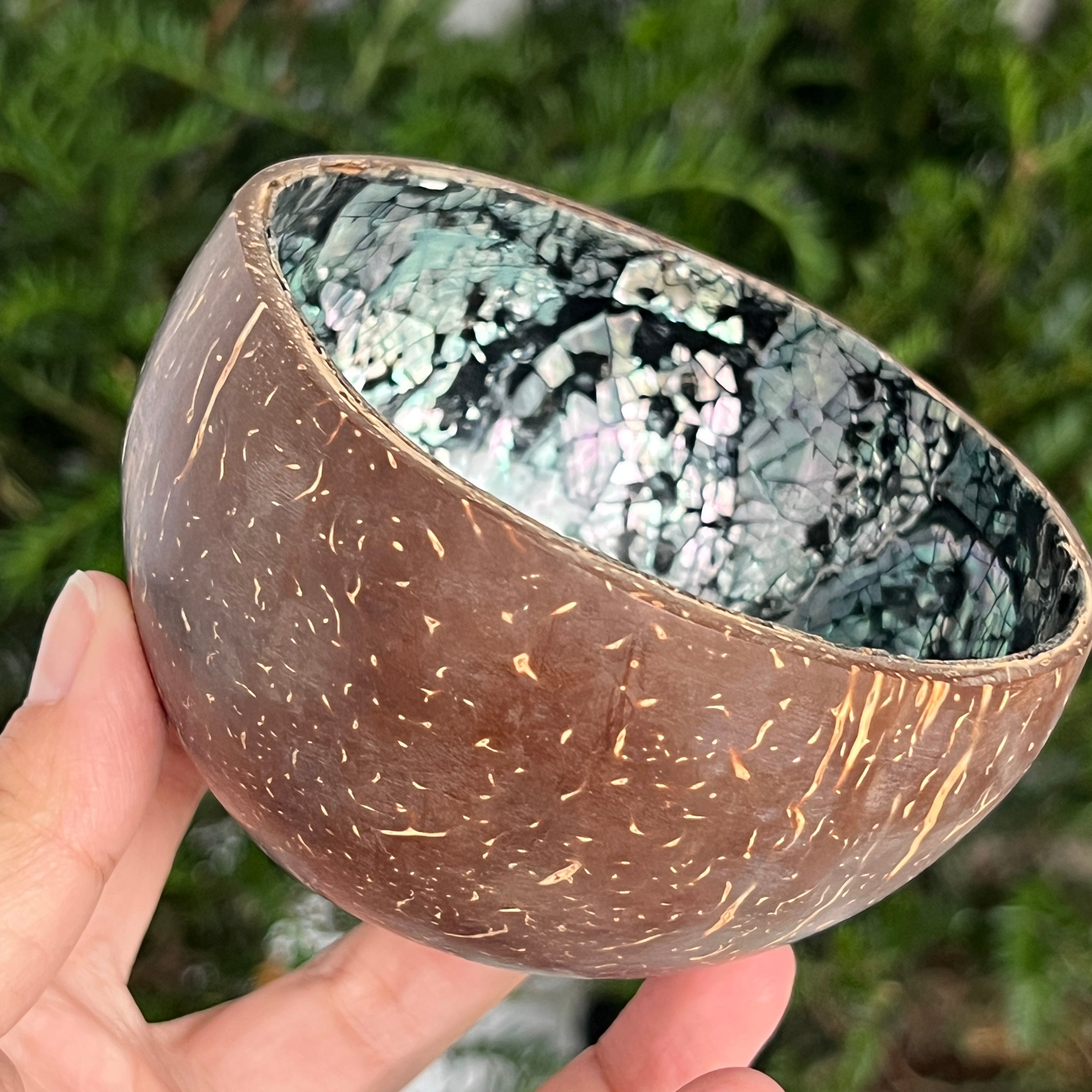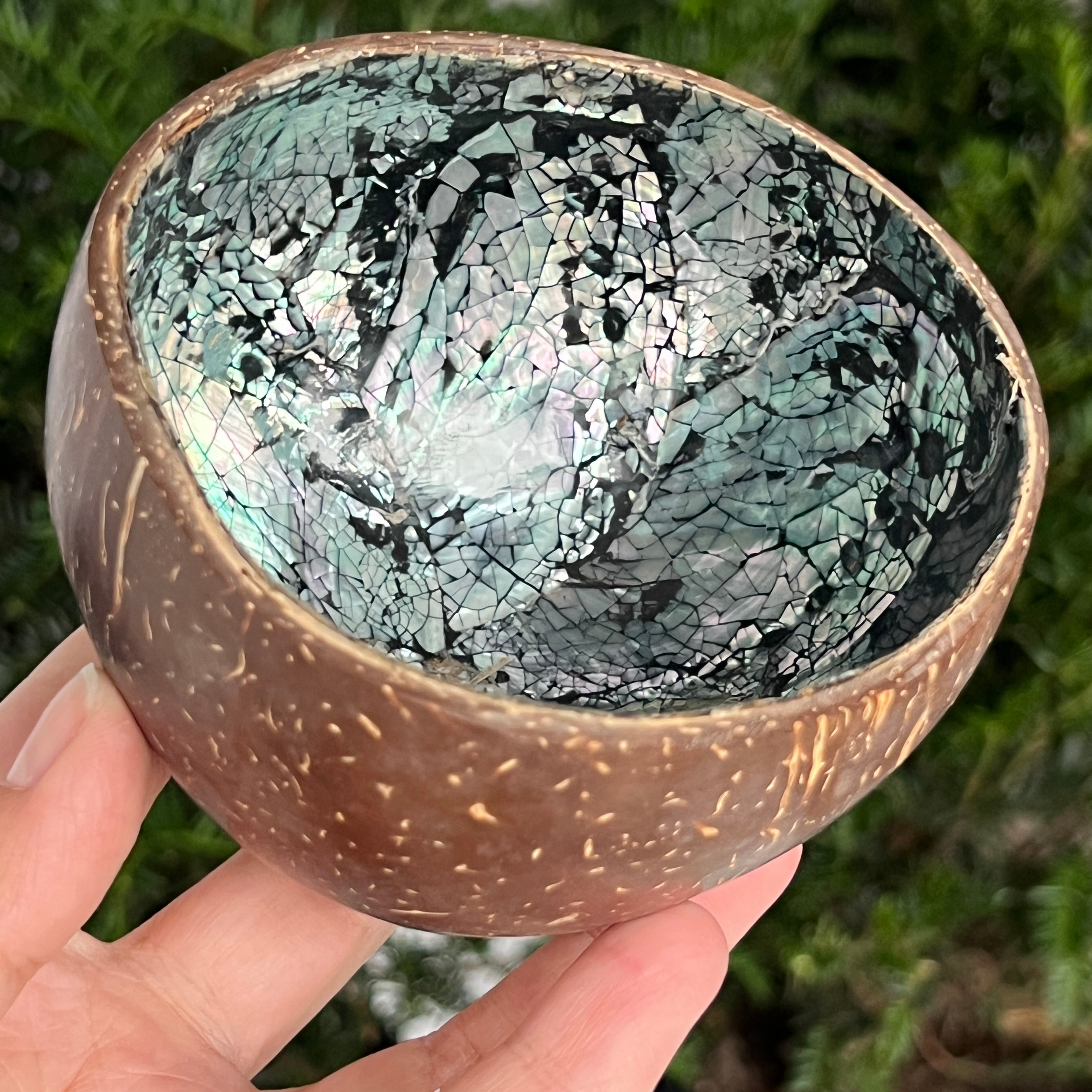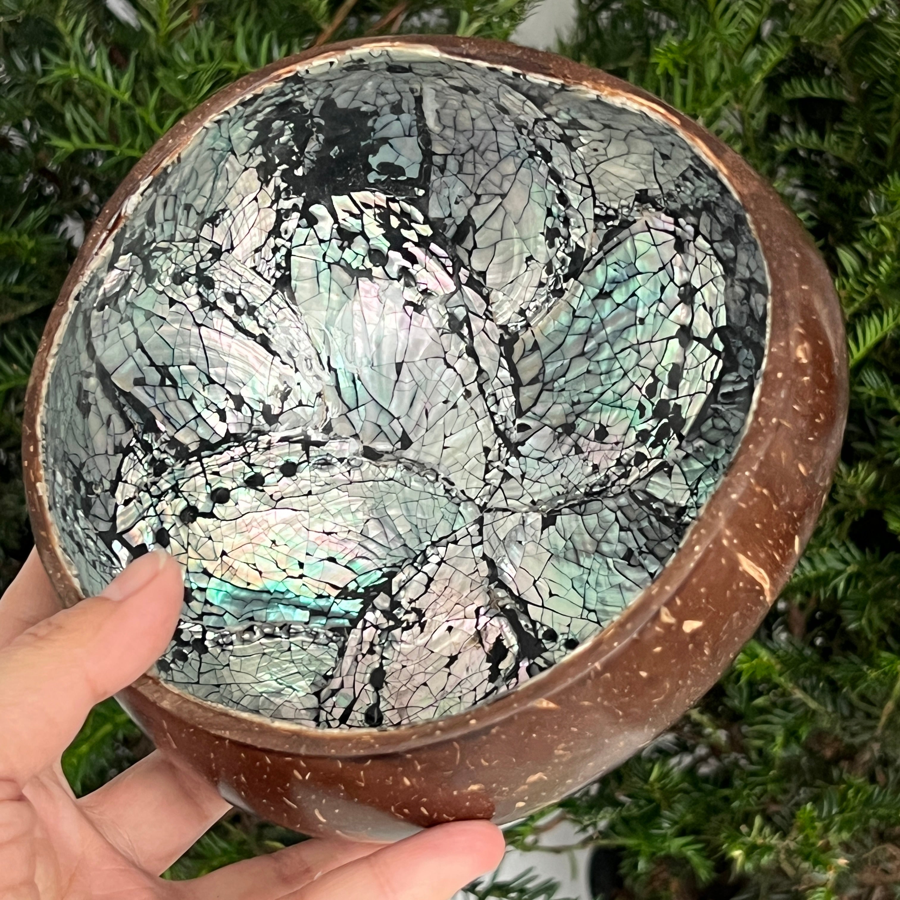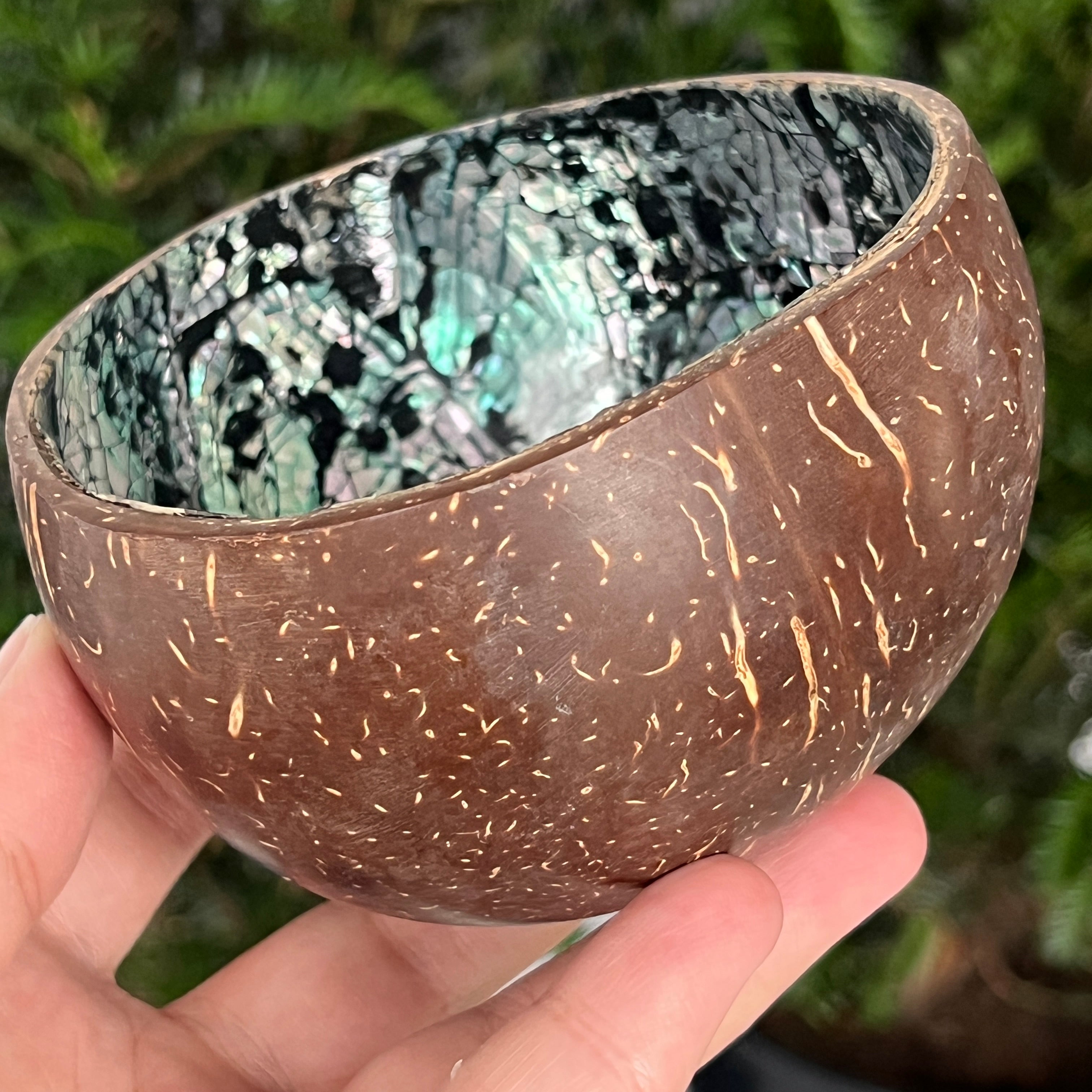 A tál abalone és kókuszkagyló ez egy természetes dekorációs darab, amely egyesíti a föld melegét a tenger ragyogásával. A gyöngyszemek az óceán mélyére emlékeztetnek, és elegáns megjelenést kölcsönöznek minden térnek. Ideális gyűjtőknek, személyes oltárdísznek vagy kristály- és ékszertartónak.
