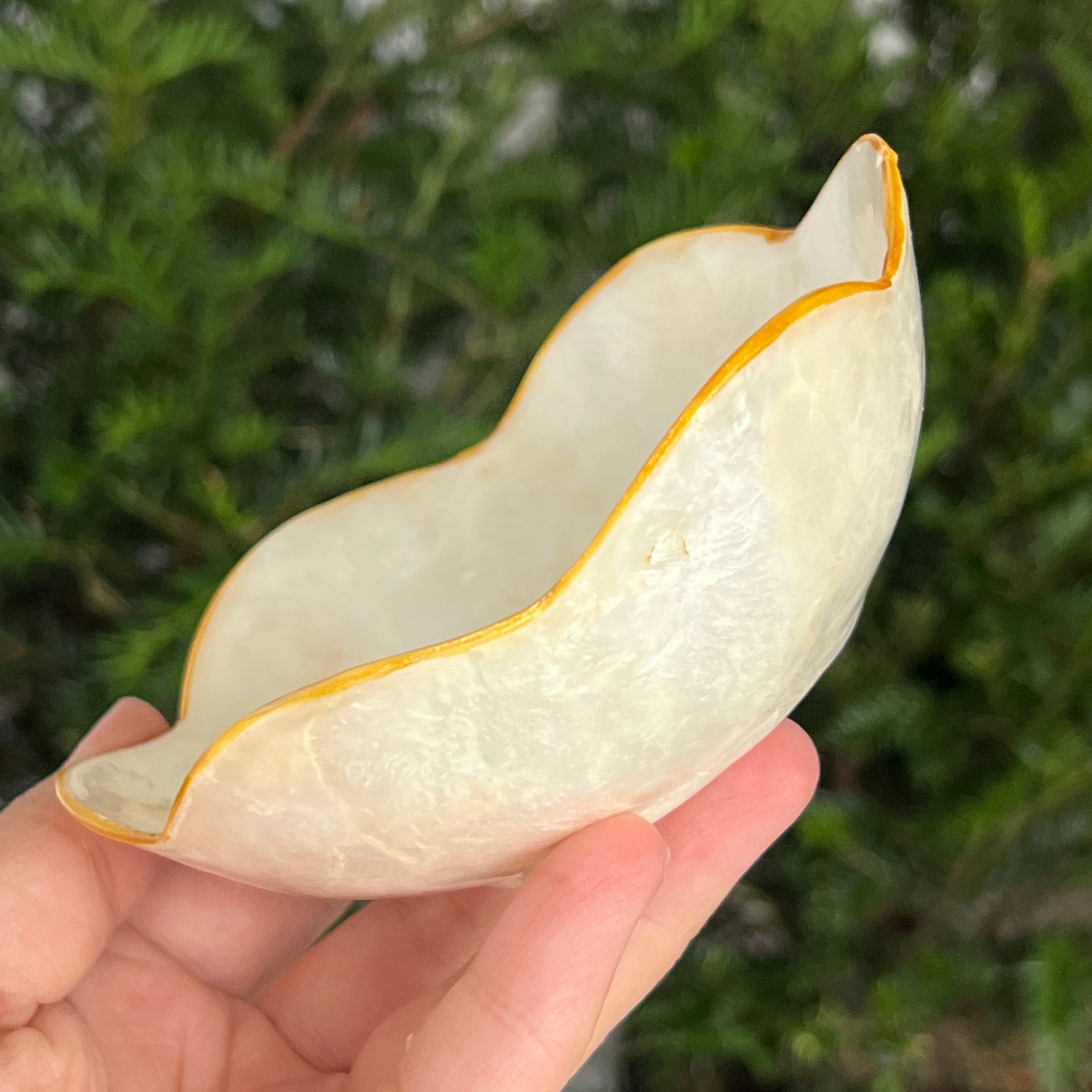Az abalone kagyló tál egy természetes dekoratív darab, amely ötvözi a föld melegségét a tenger ragyogásával. A gyöngyházfényű reflexek az óceán mélységére emlékeztetnek, és elegáns hangulatot kölcsönöznek bármely térnek. Ideális gyűjtőknek, személyes oltár díszítésére, vagy kristályok és ékszerek tárolására.