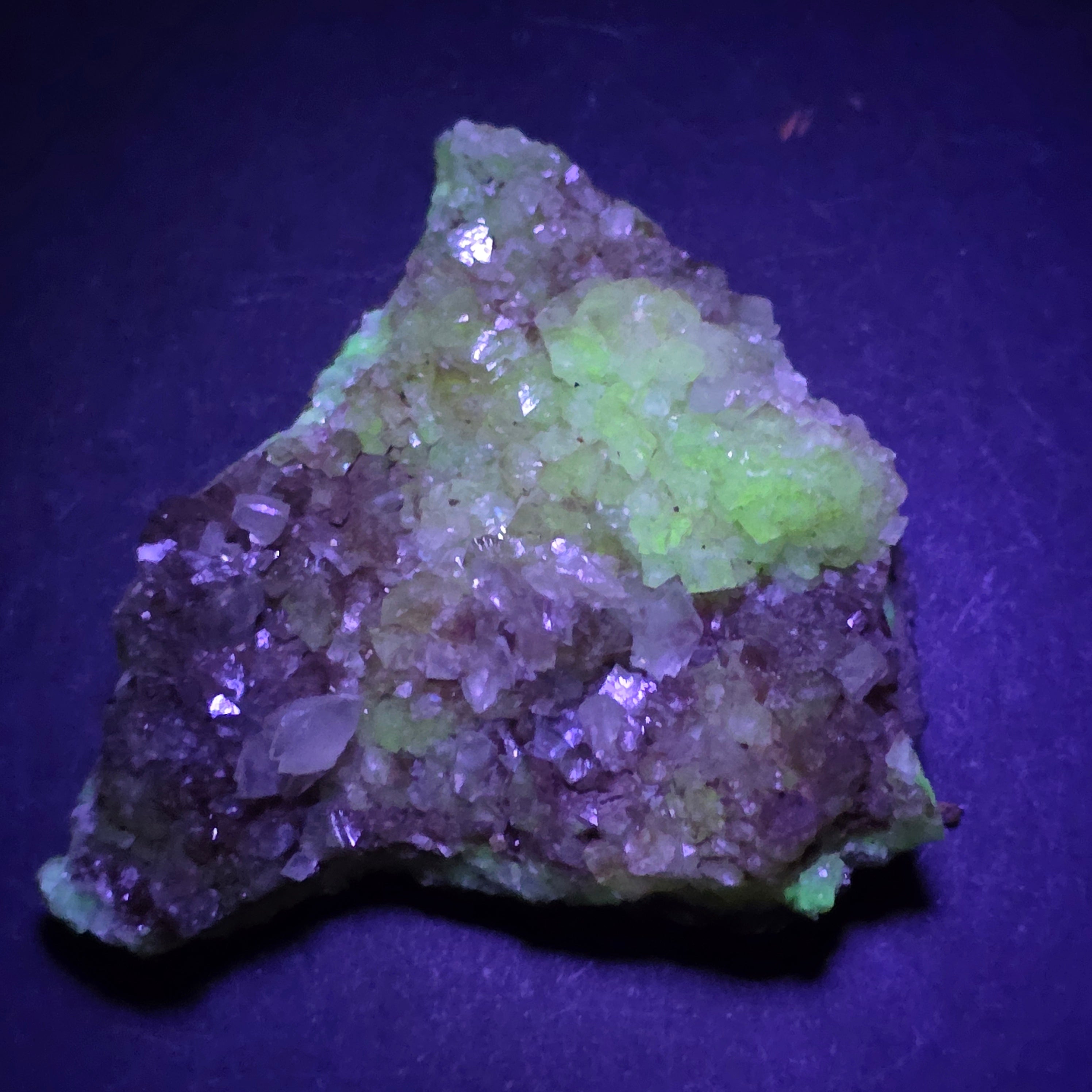 formájában jelenik meg az Adamite finom kristályok vagy tömör aggregátumok, mátrixokra rendezve, élénk és kifejező megjelenéssel. Természetes fényben a kristályok zöld, zöldessárga vagy intenzív sárga árnyalatokat mutatnak, ultraibolya fényben pedig erős fluoreszcencia, ami teljesen átalakítja a példány megjelenését és rendkívül vonzóvá teszi a gyűjtők számára.