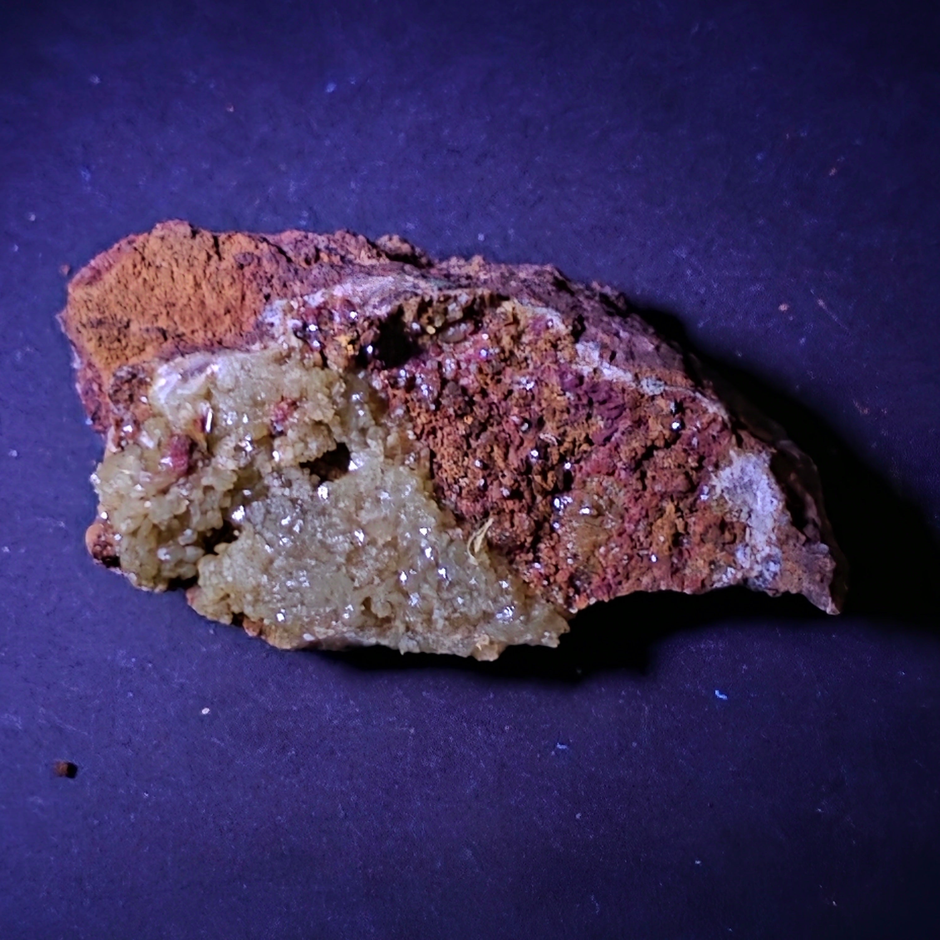 Ezt adamit példány Mexikóból, származik a híres Ojuela bánya, Mapimí – Durango, ásványtani gyűjtemény, nagyra becsülik intenzív, sárgászöld színe, és számára látványos fluoreszcencia UV fényben. Az ojuela-bányát a világ egyik legfontosabb klasszikus adamithelyeként tartják számon, az itt található darabok ennek az ásványnak a referenciái.