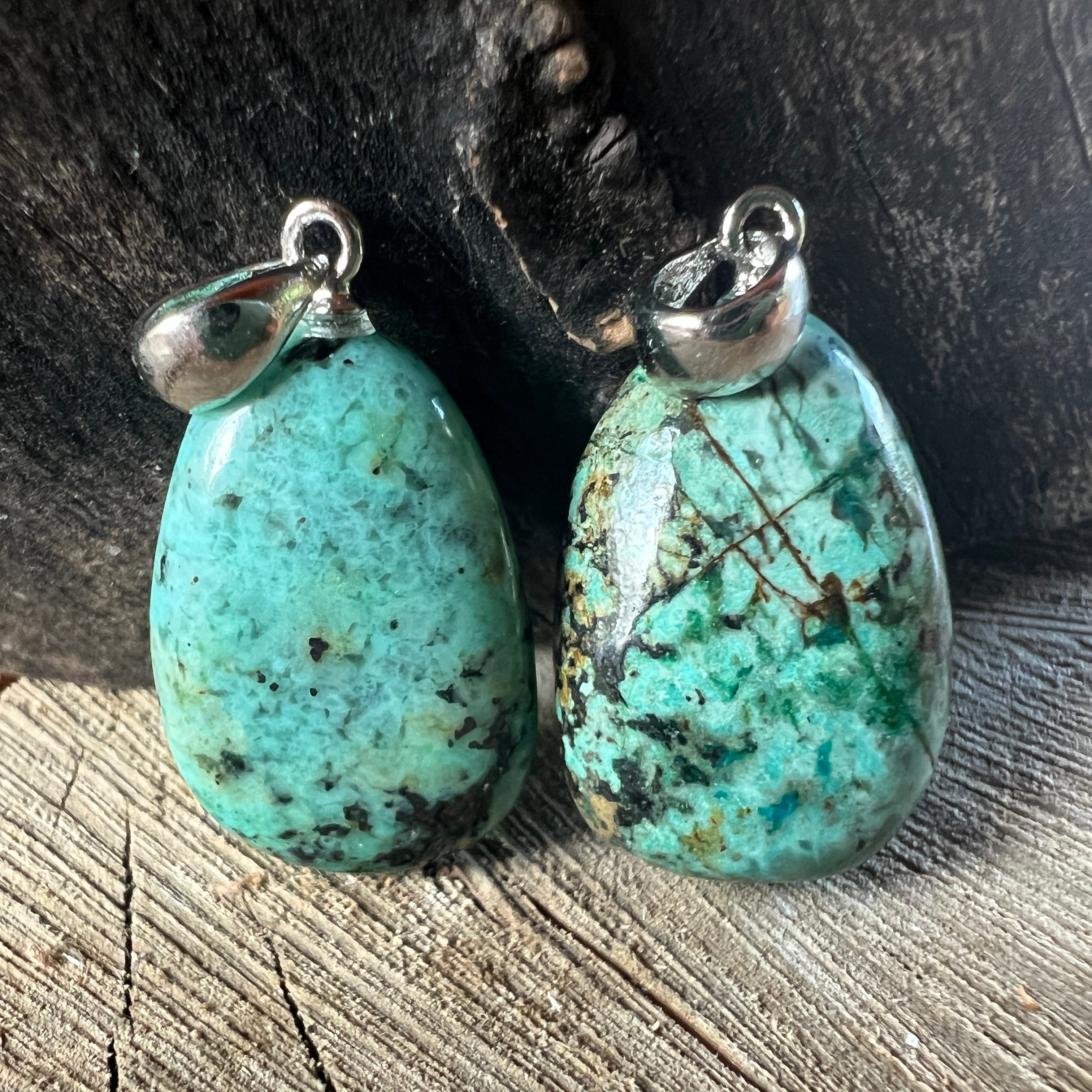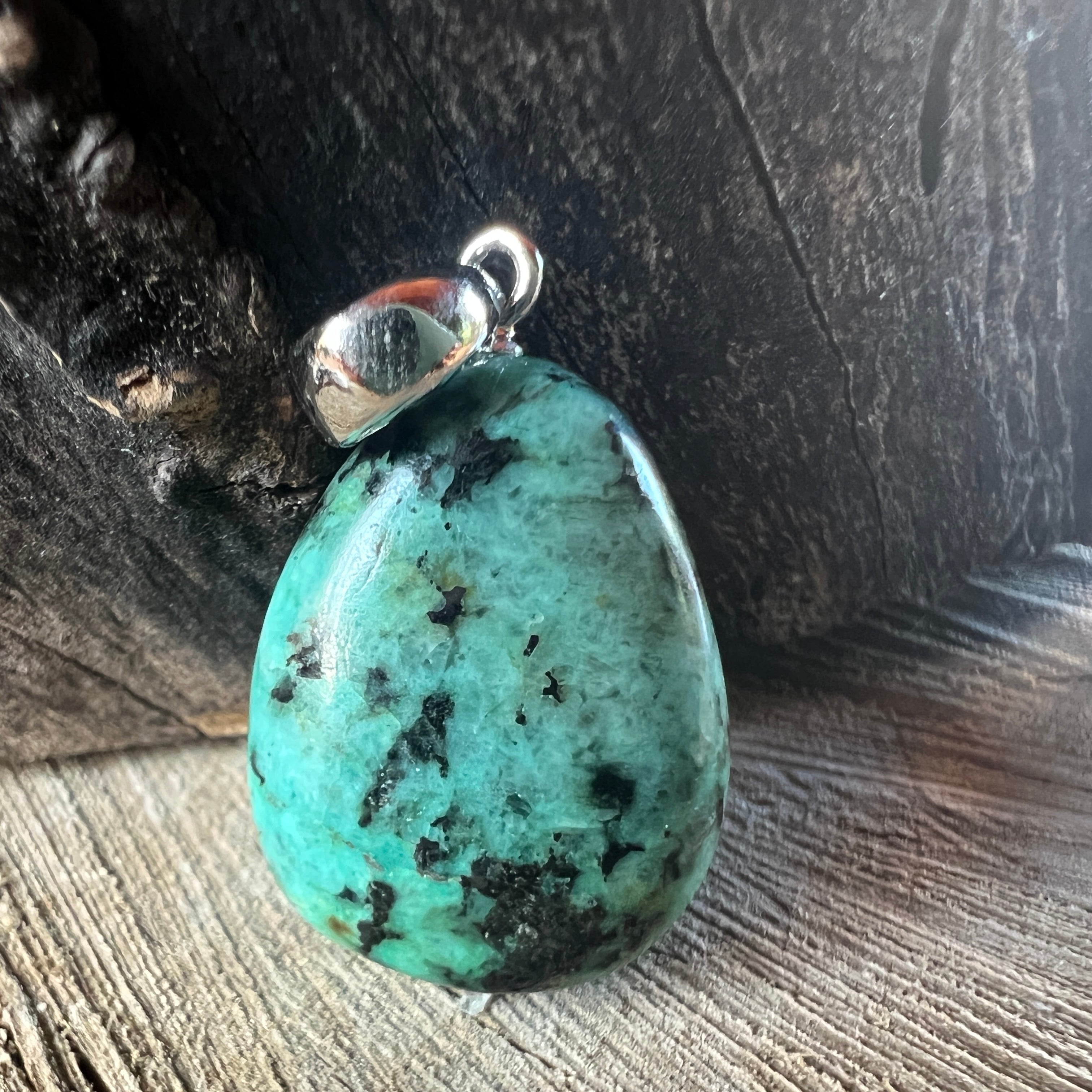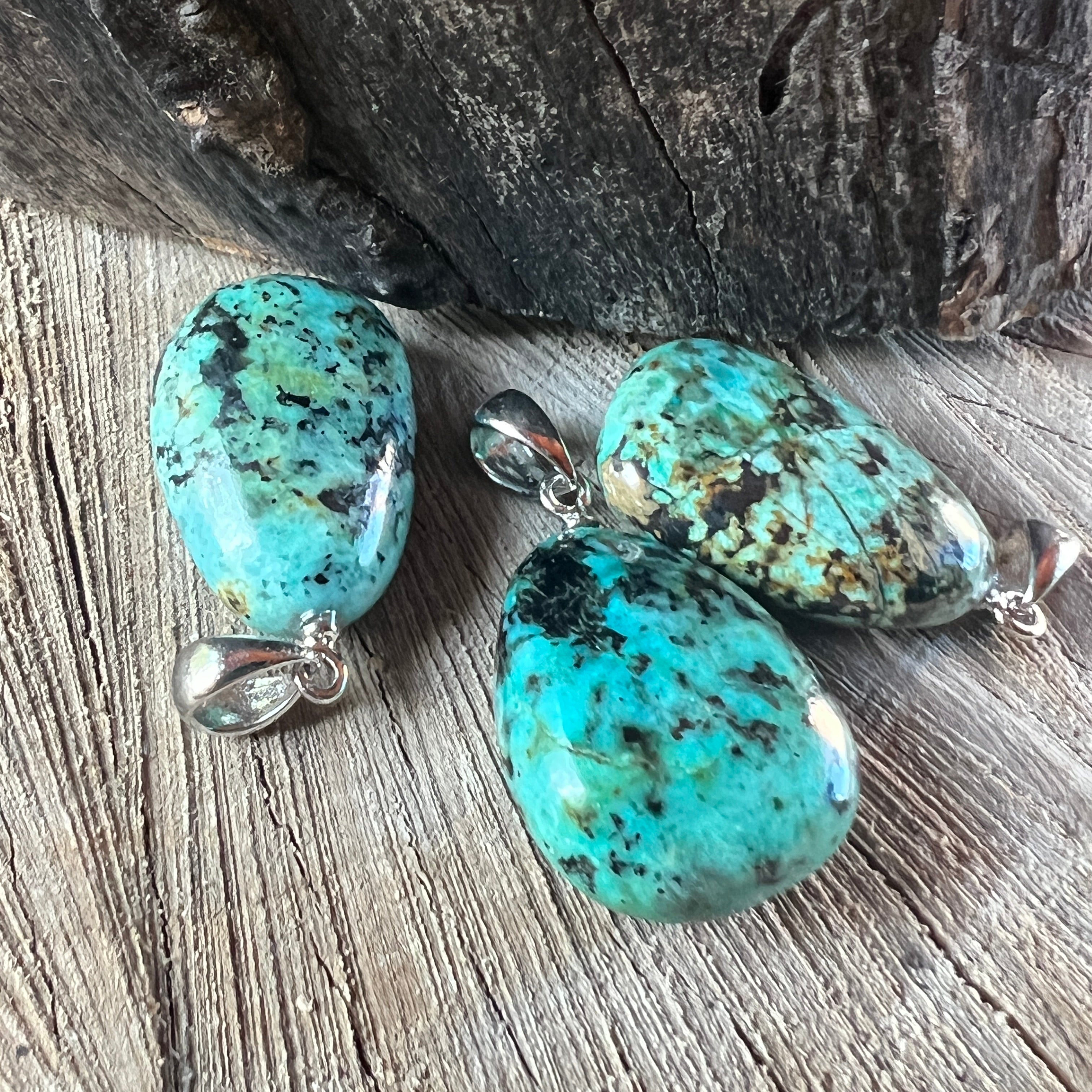 Az afrikai türkiz medál a föld és az ég színeit hordozza, egy ősi táncba fonódva.