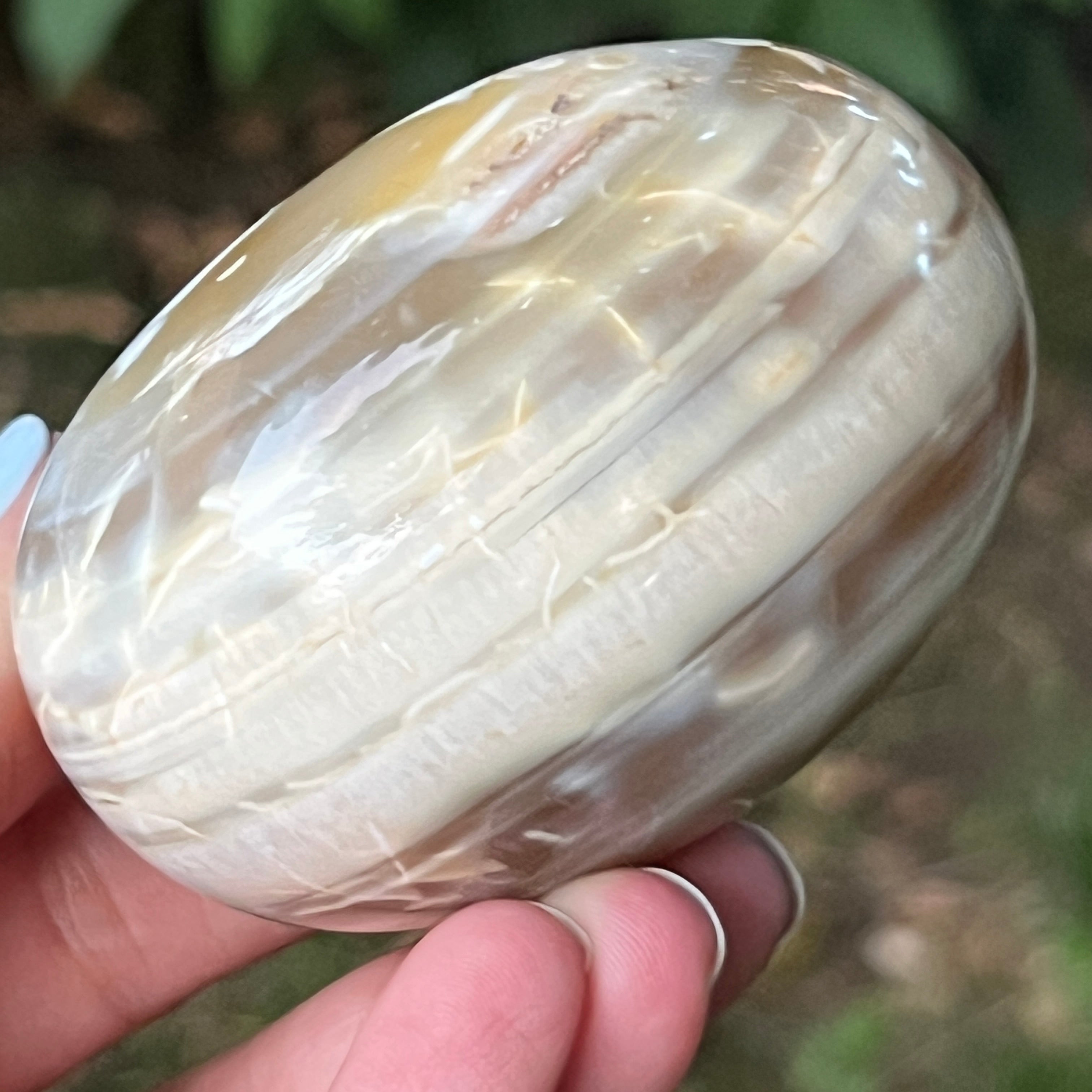 Az Orca agát ritka és látványos változata az ágátnak, a kalcedon családjába tartozó kriptokristályos kvarcforma. Vulkanikus üregekben történő szilícium lerakódások révén alakul ki, ami finom, koncentrikus sávokat eredményez, sima felülettel és tömör textúrával. Jellemző színe – kékes-szürke, fekete és fehér kombinációja – az Orca bálna eleganciáját és kontrasztját idézi, innen ered a kő neve. Azonban az ásványi zárványoktól függően az Orca agát tartalmazhat vöröses, sárga, rozsdás vagy barna árnyalatokat, gyakran finom kiemelésekként, amelyek egyedivé teszik minden példányt.