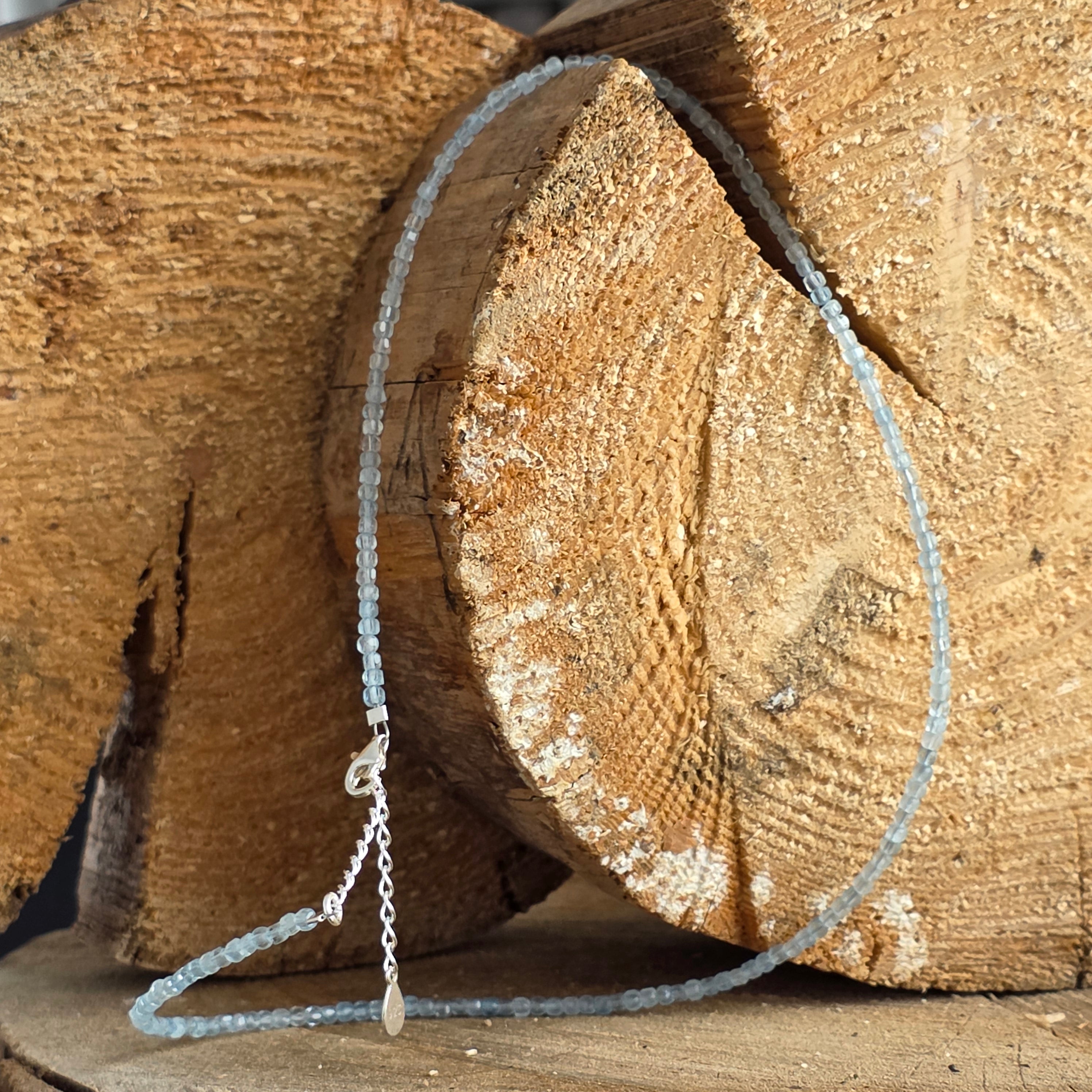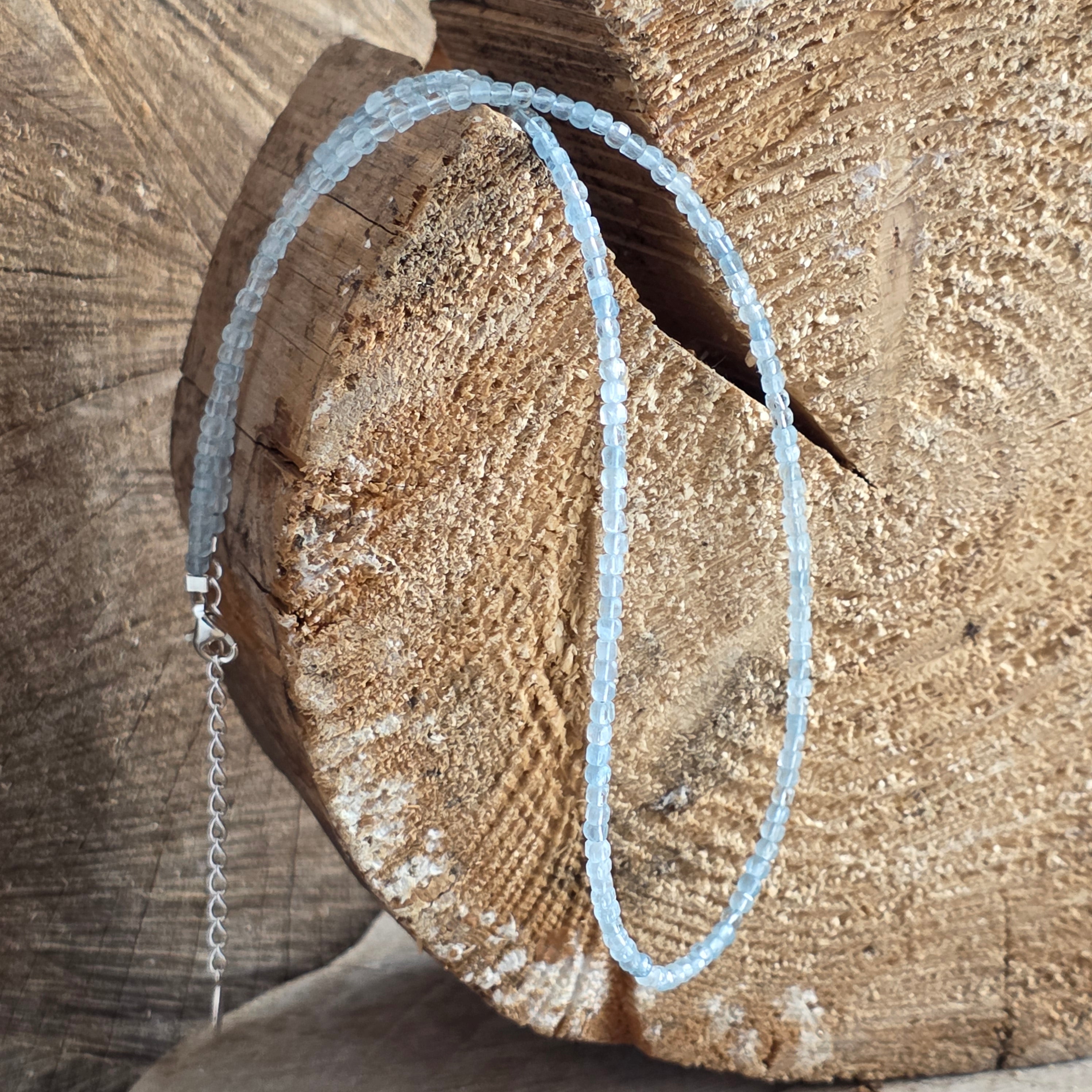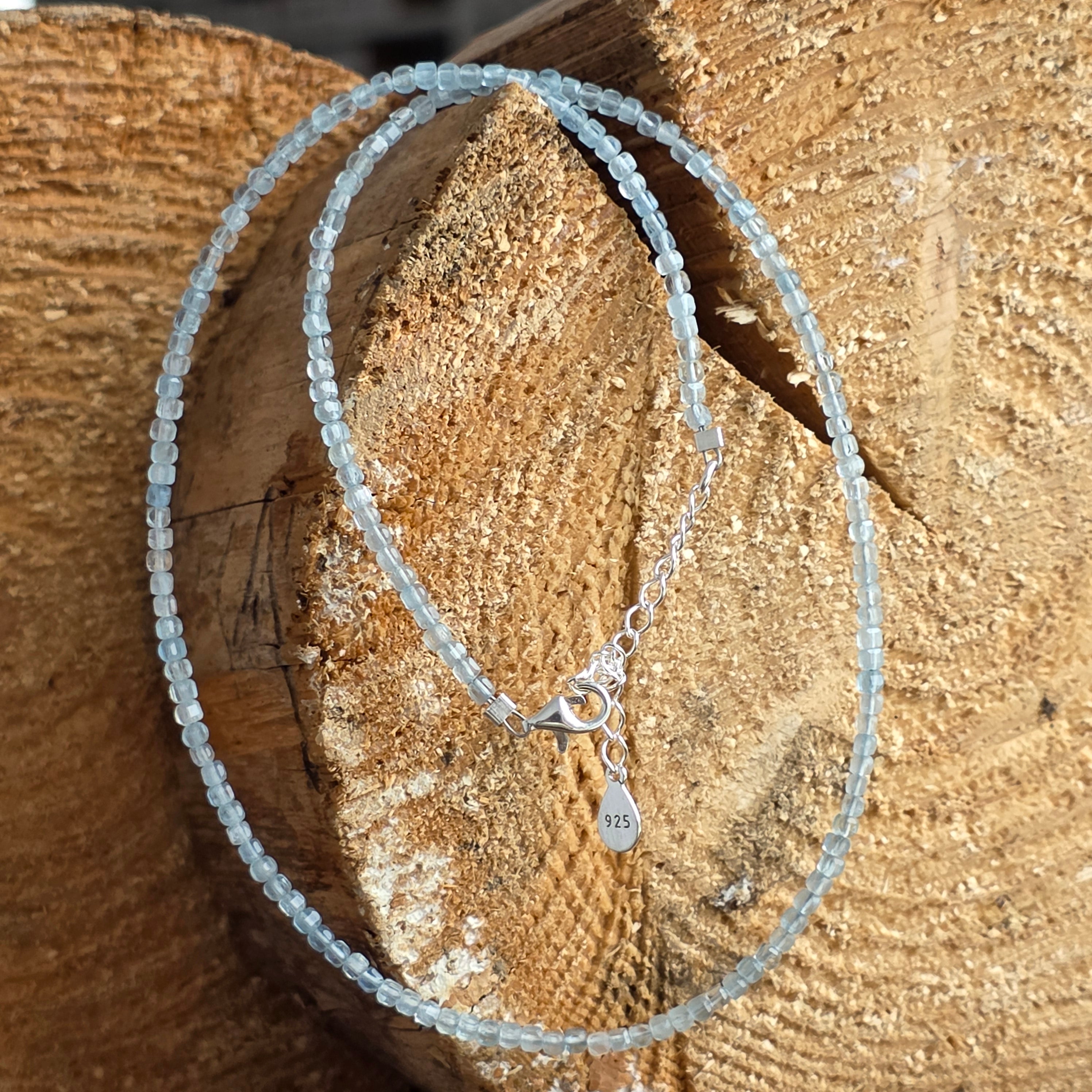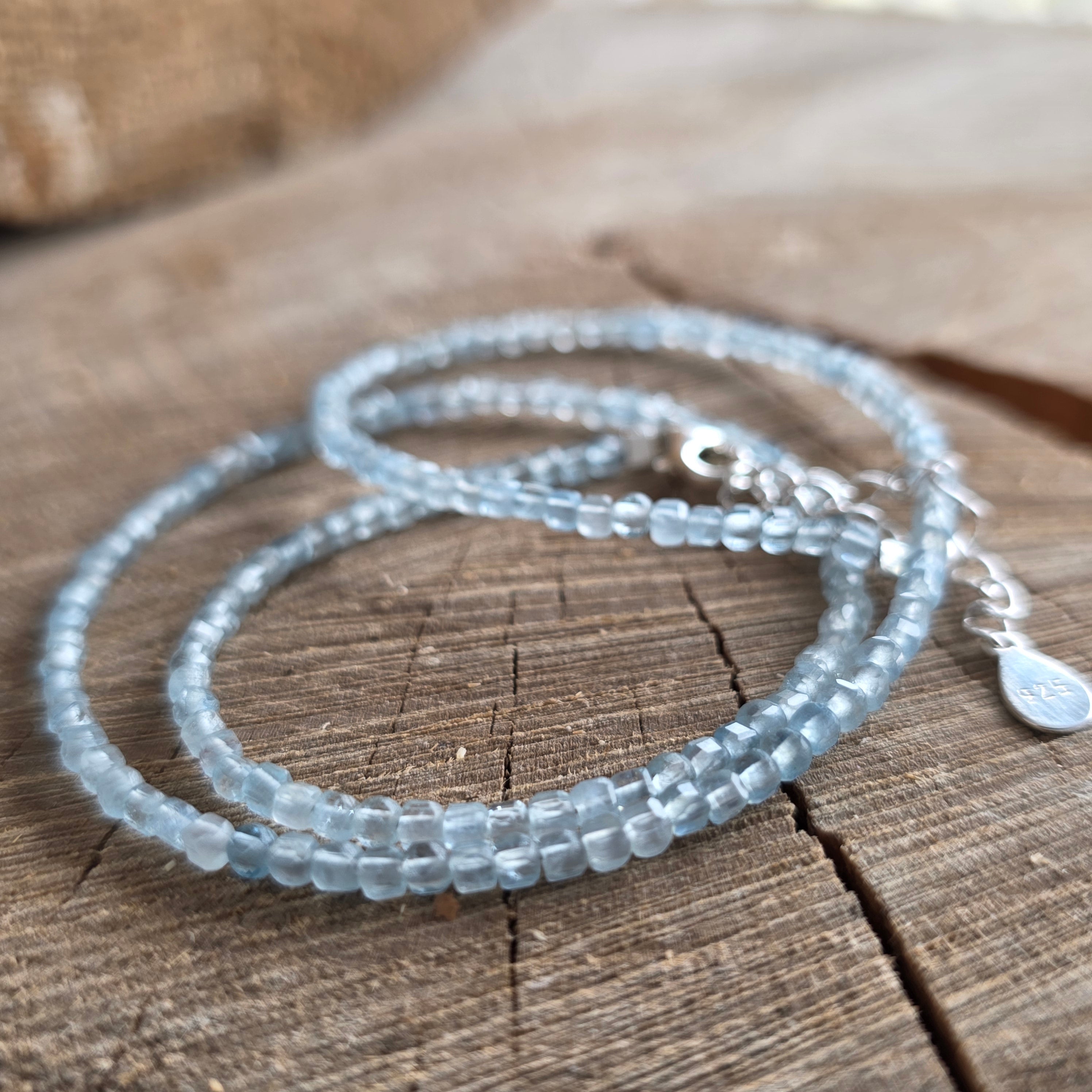 Anyagok: természetes akvamarin kockák 3 mm, 925 ezüst