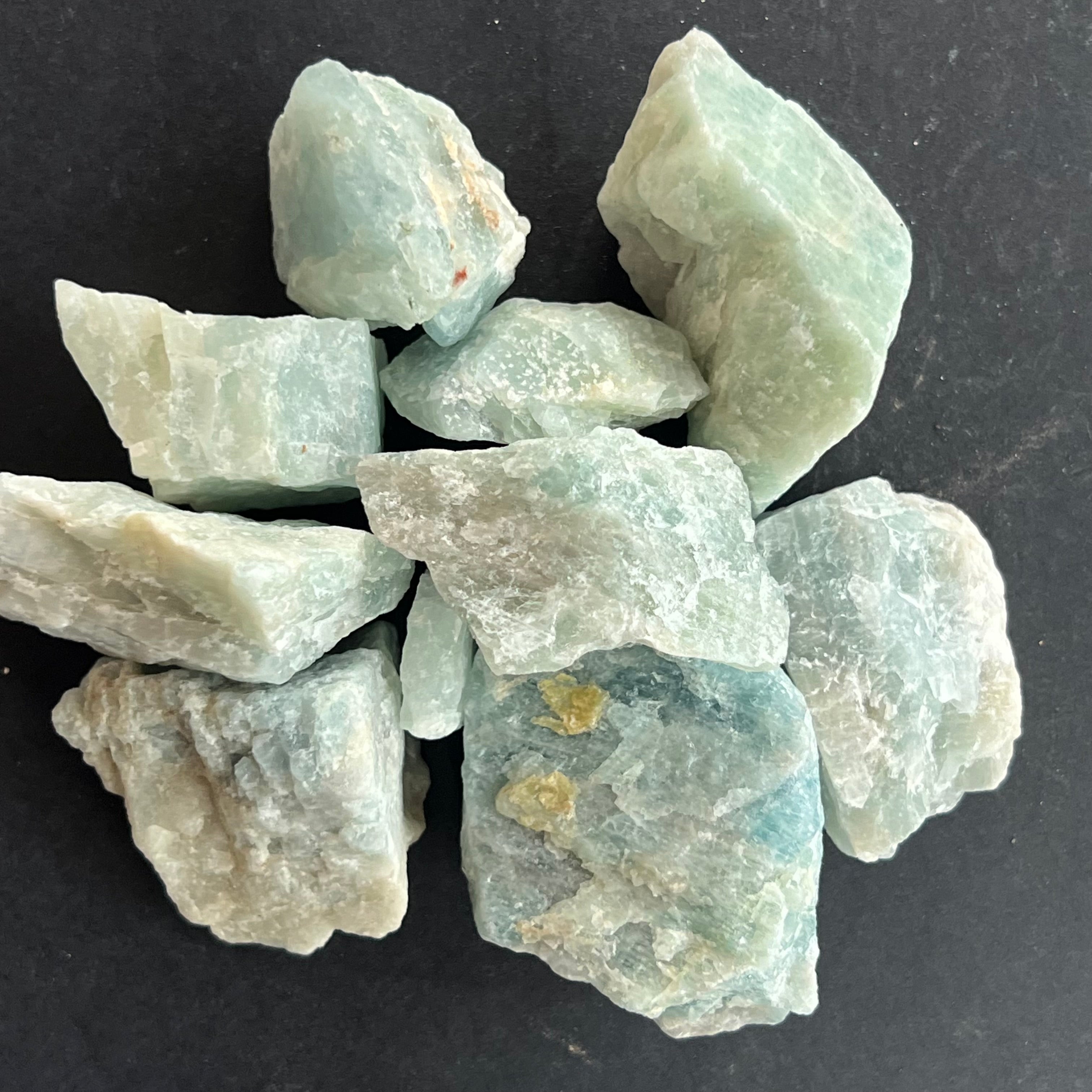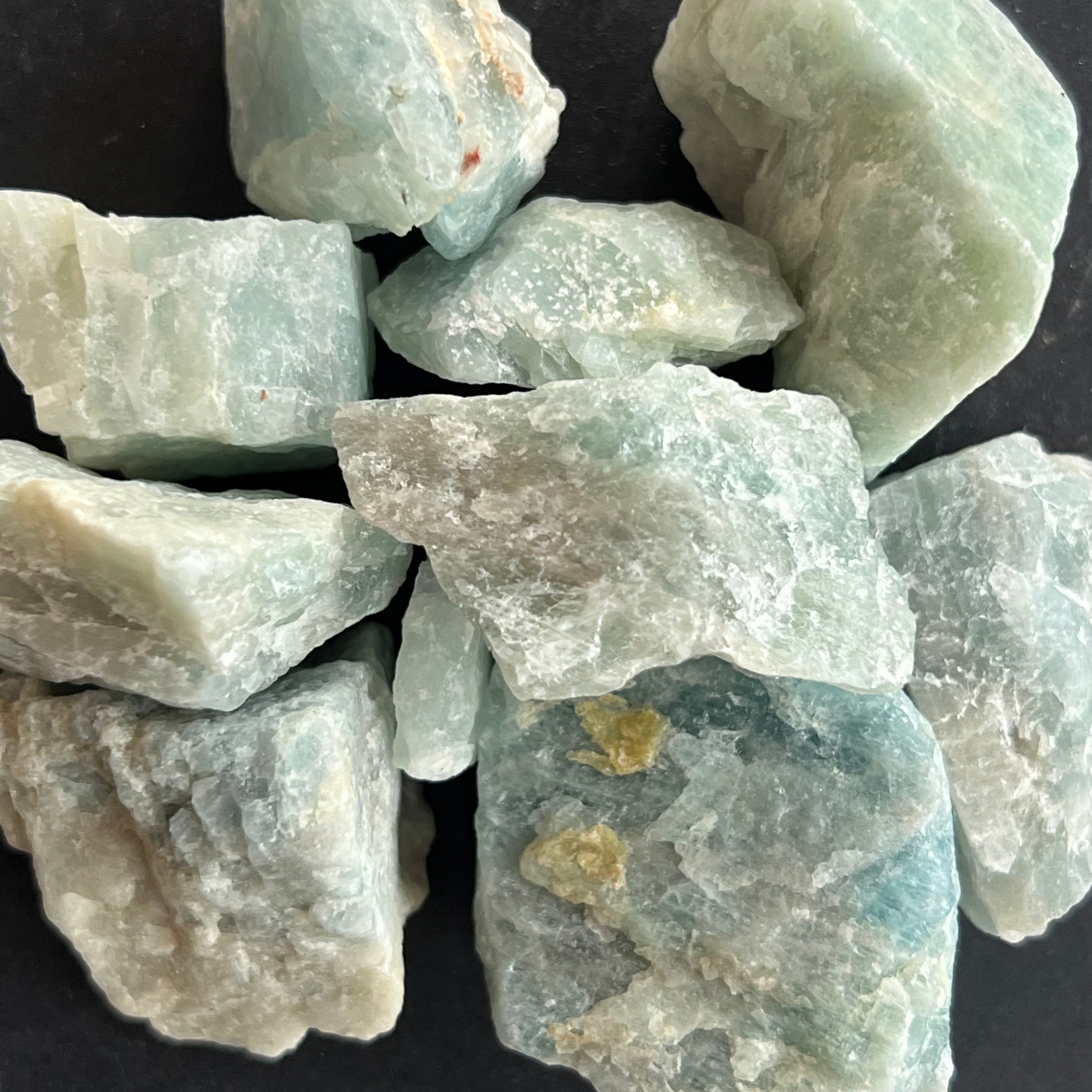 Akvamarin nyers kő, mérete 3-5 cm között.