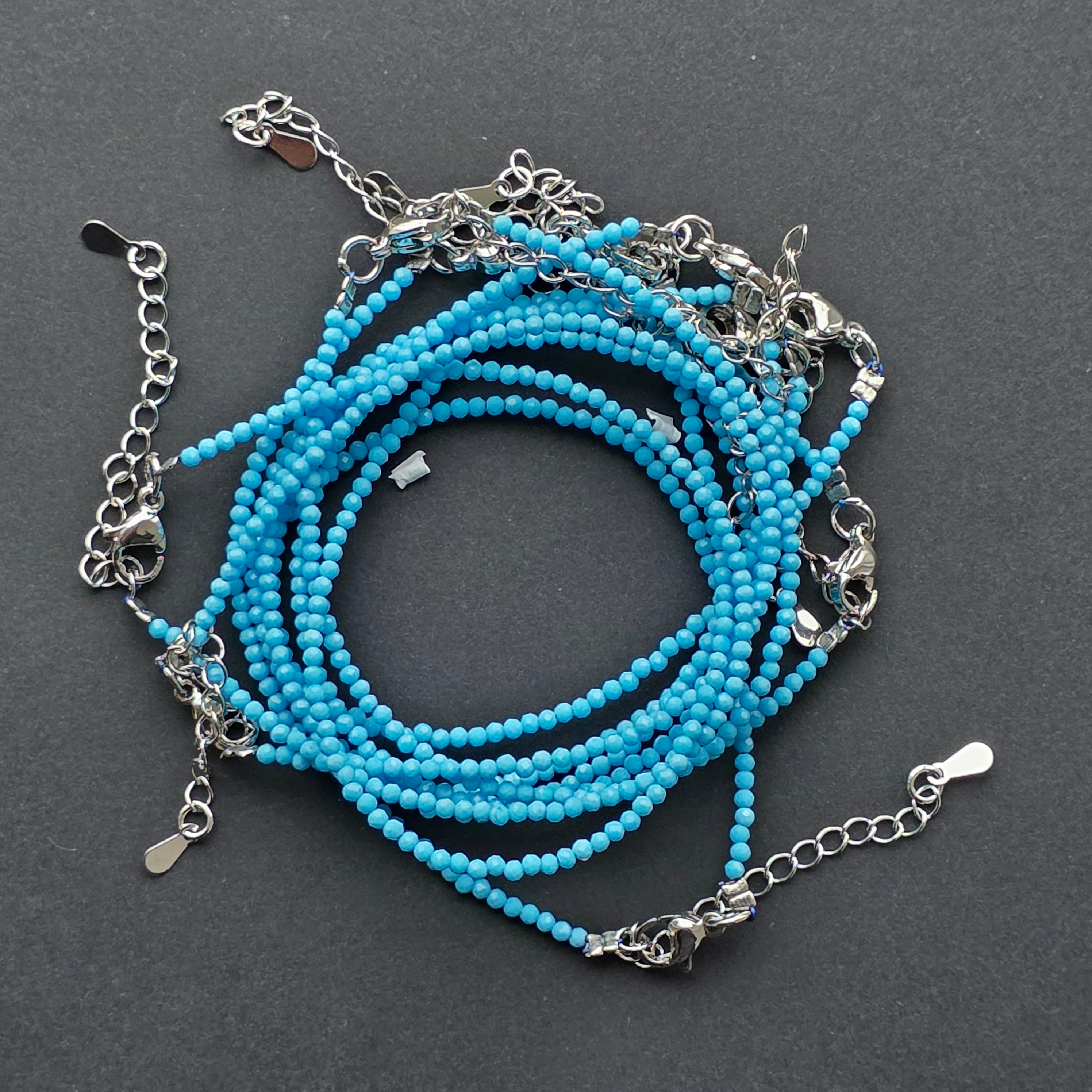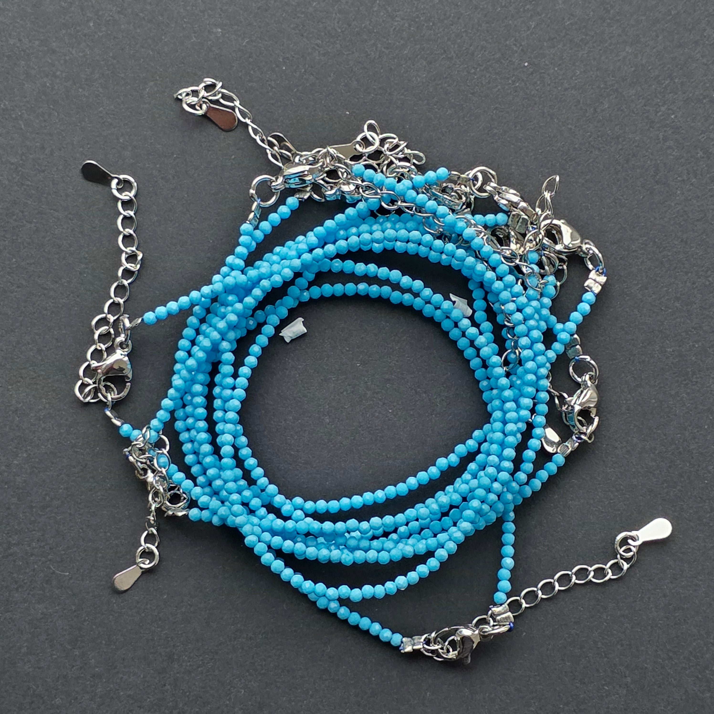 Vannak olyan darabok, amelyek már pusztán színükkel nyugalmat árasztanak, és ez a kék howlit karkötő éppen egyike azoknak az apró ékszereknek, amelyek a nyugalmat és tisztaságot sugározzák. A tökéletesen csiszolt, 2 mm-es parányi gyöngyök finom, diszkrét fényvisszaverődéssel ragyognak, minden csuklómozdulatot egy finom csillogásjátékává varázsolva.