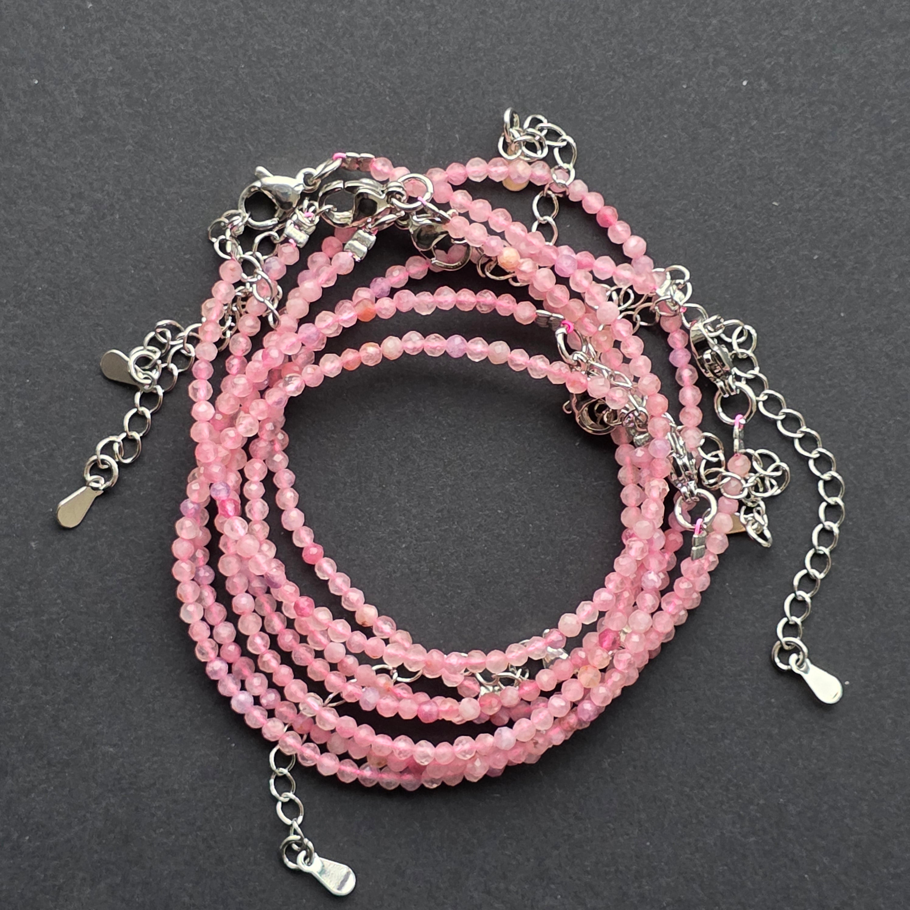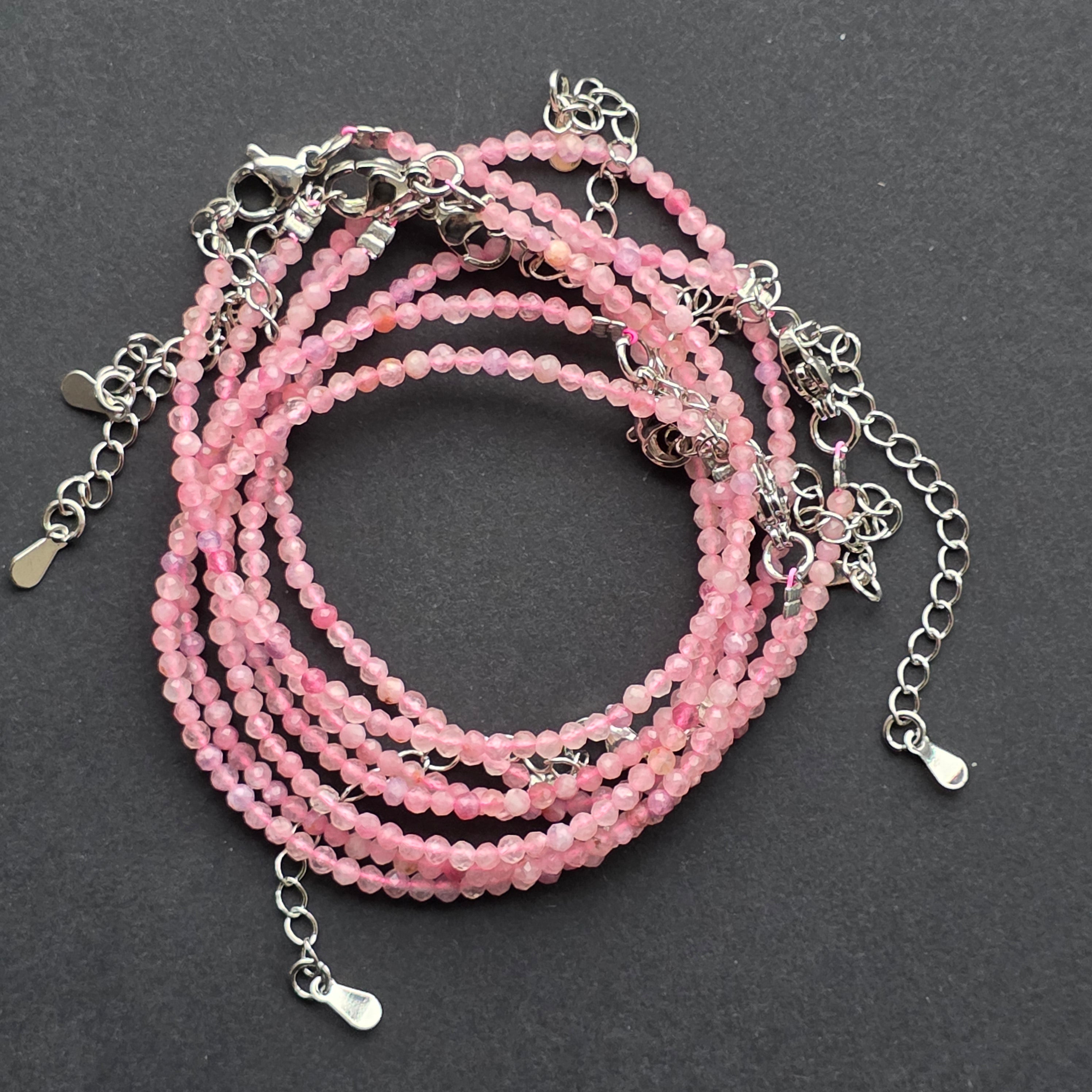 Állítható, csiszolt rózsakvarc karkötő 2,5 mm-es gyöngyökkel