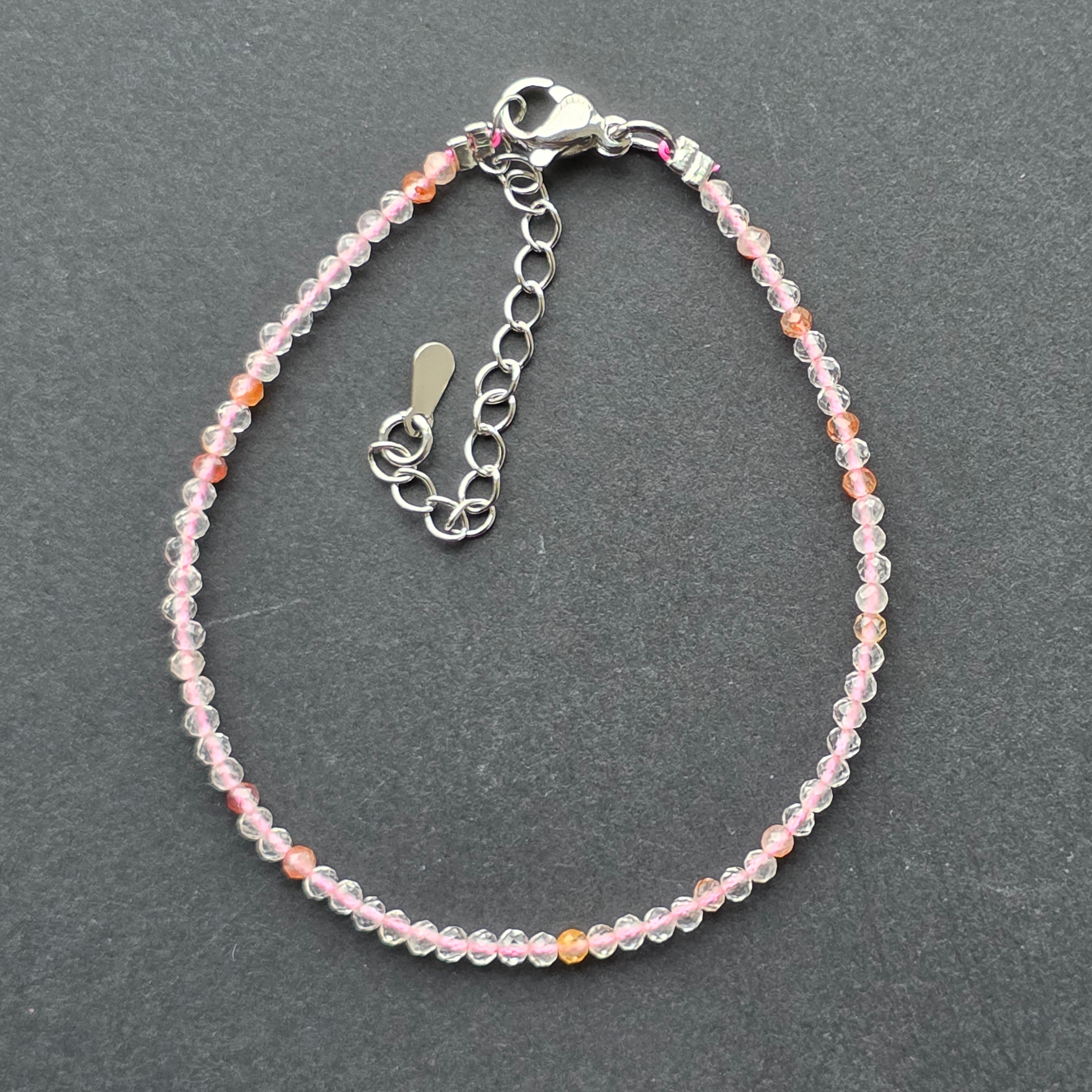 Descriere - Állítható, csiszolt rózsakvarc karkötő, vegyes 2 mm-es