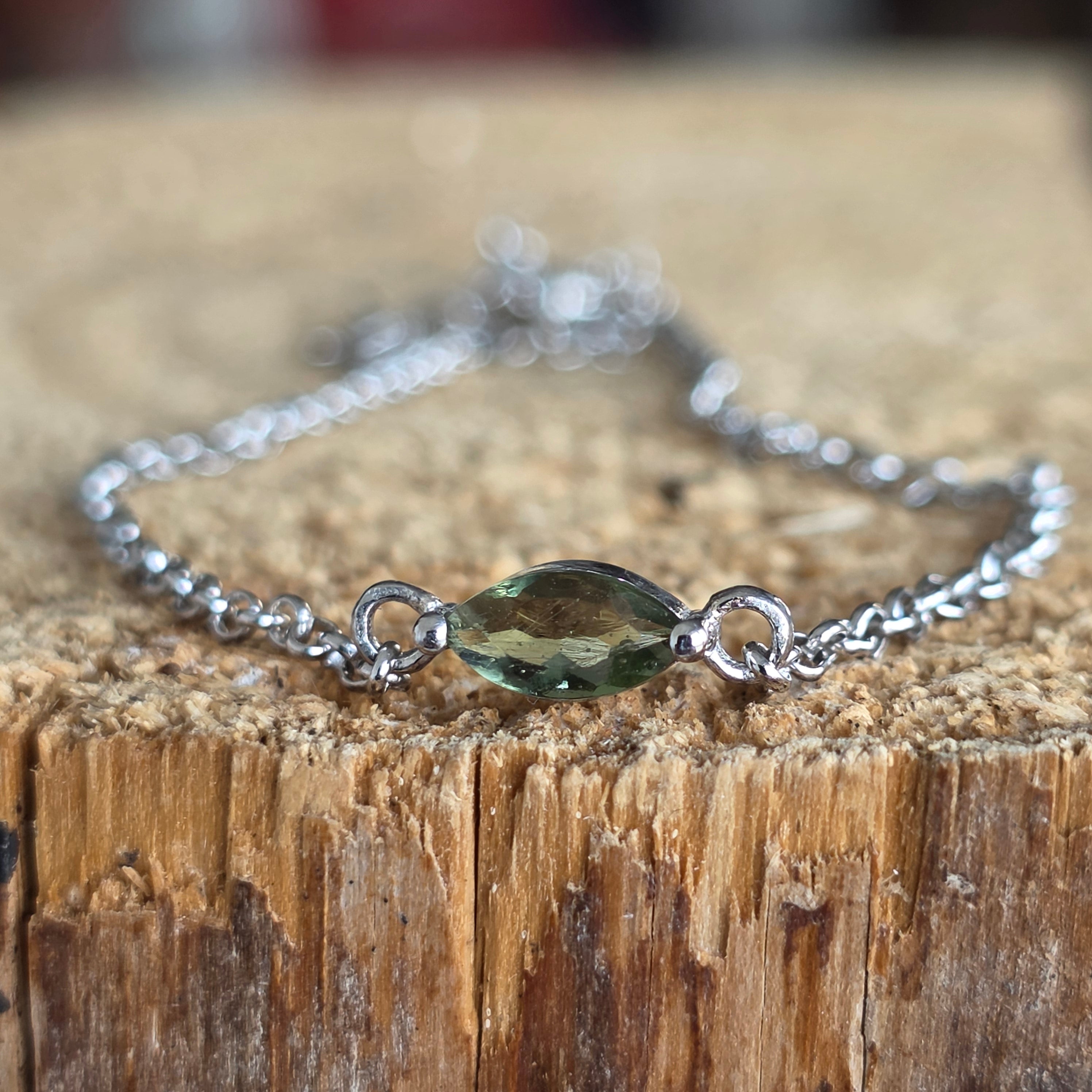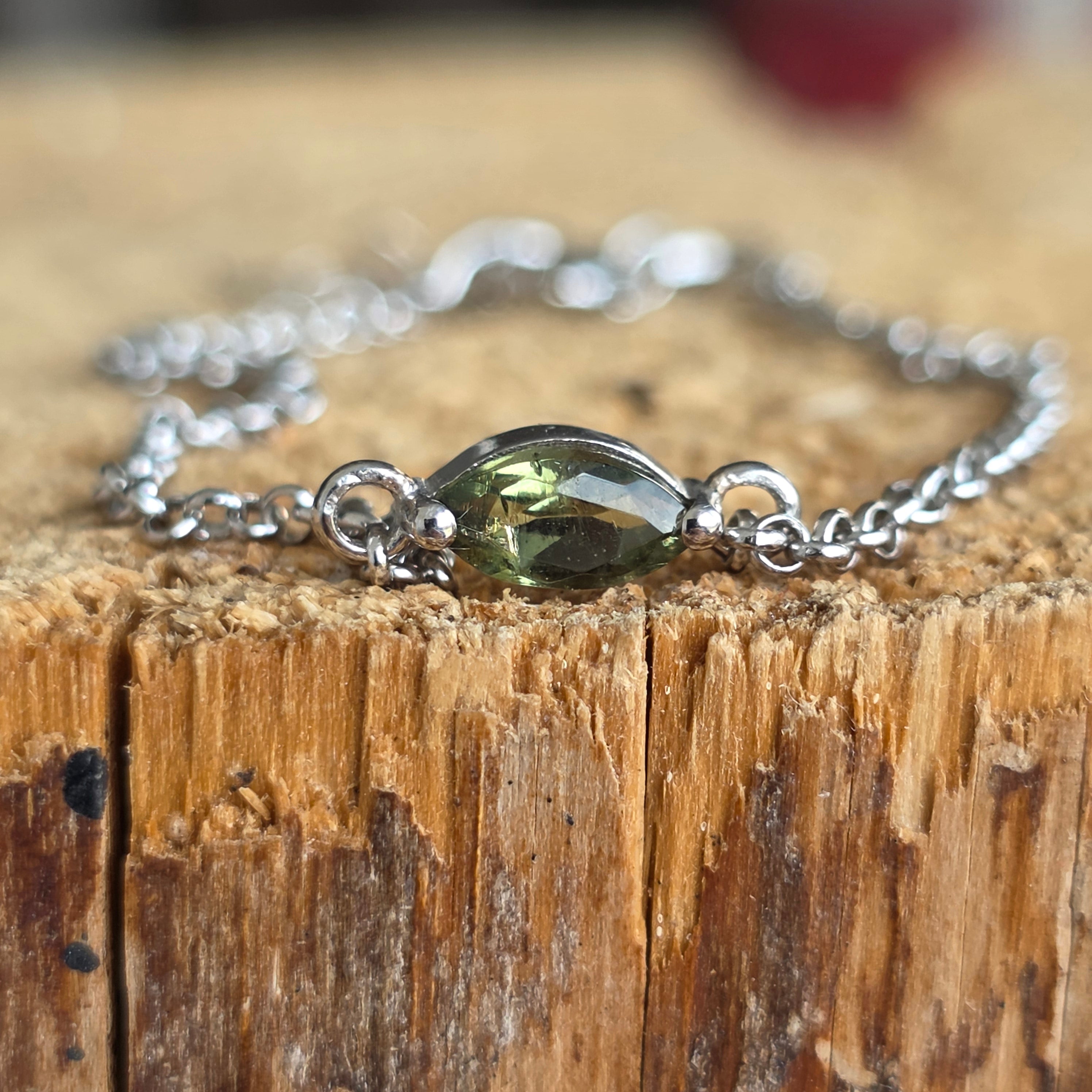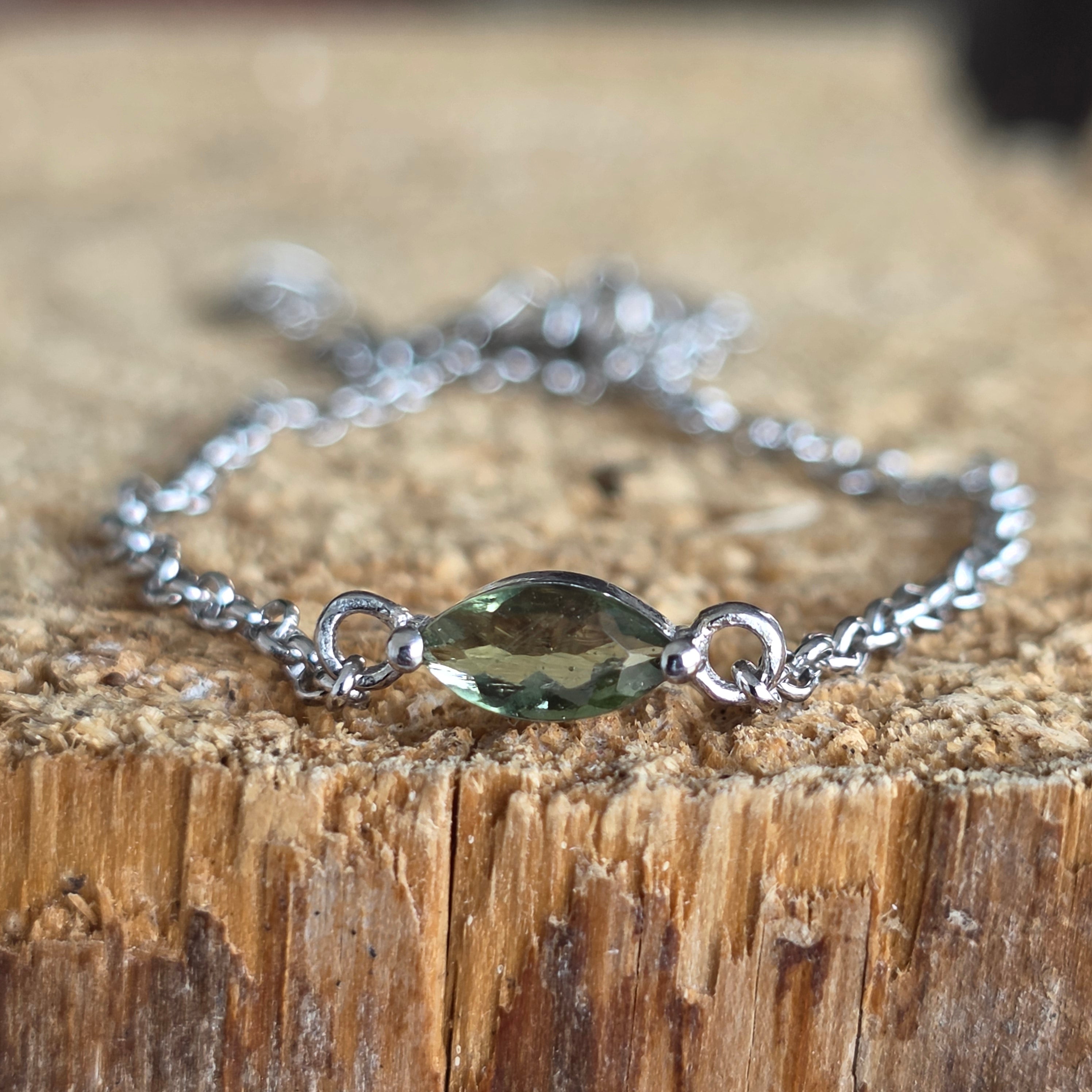 Vannak ékszerek, amelyek nem csupán kiegészítők, hanem élmények is. Ez a finom ezüst karkötő, amelyet a moldavit mély misztériuma egészít ki, azon ritka darabok közé tartozik, amelyek eleganciát ötvöznek több millió éves történettel.
