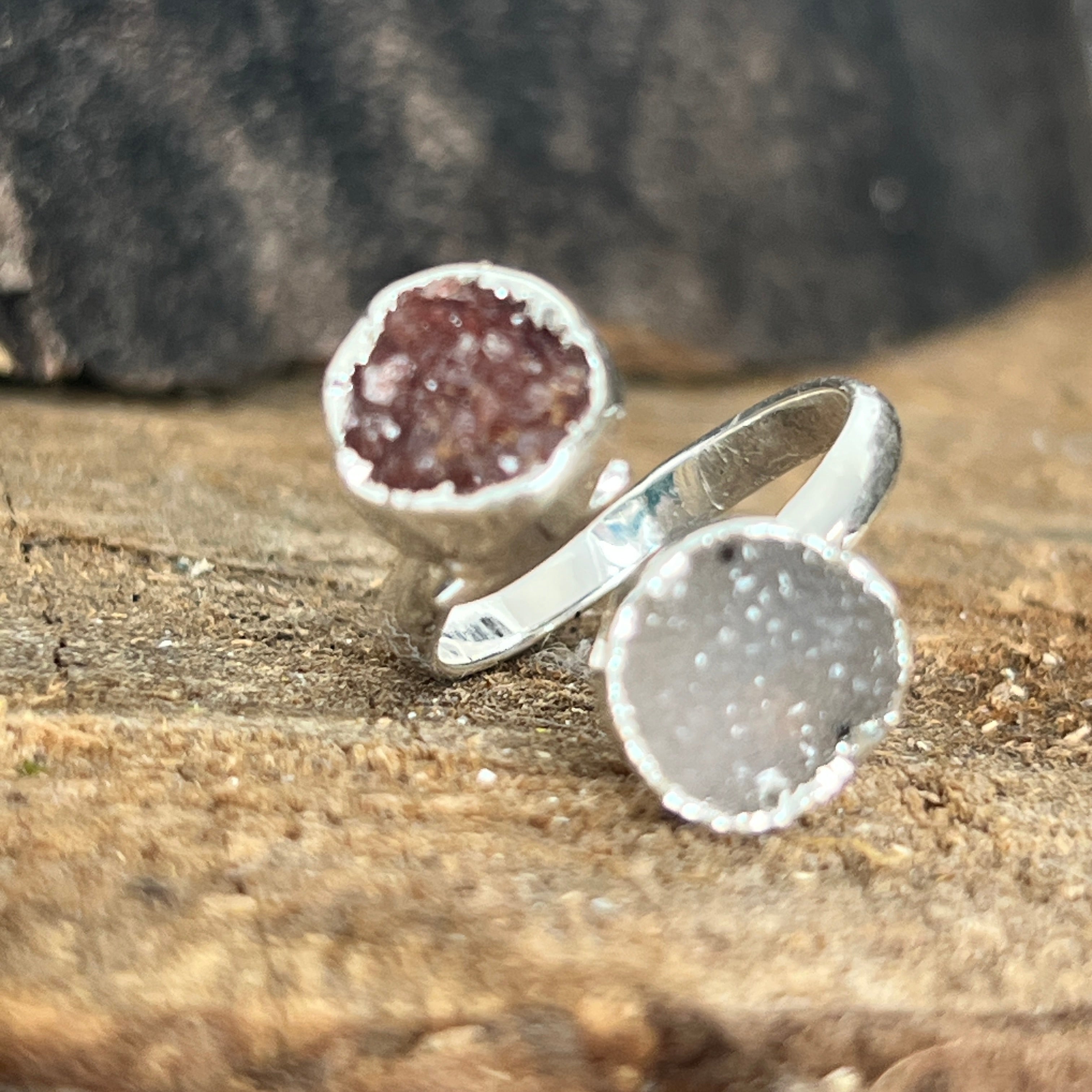 Állítható gyűrű druzy acháttal, ezüstözött Brazíliából | 10-es modell