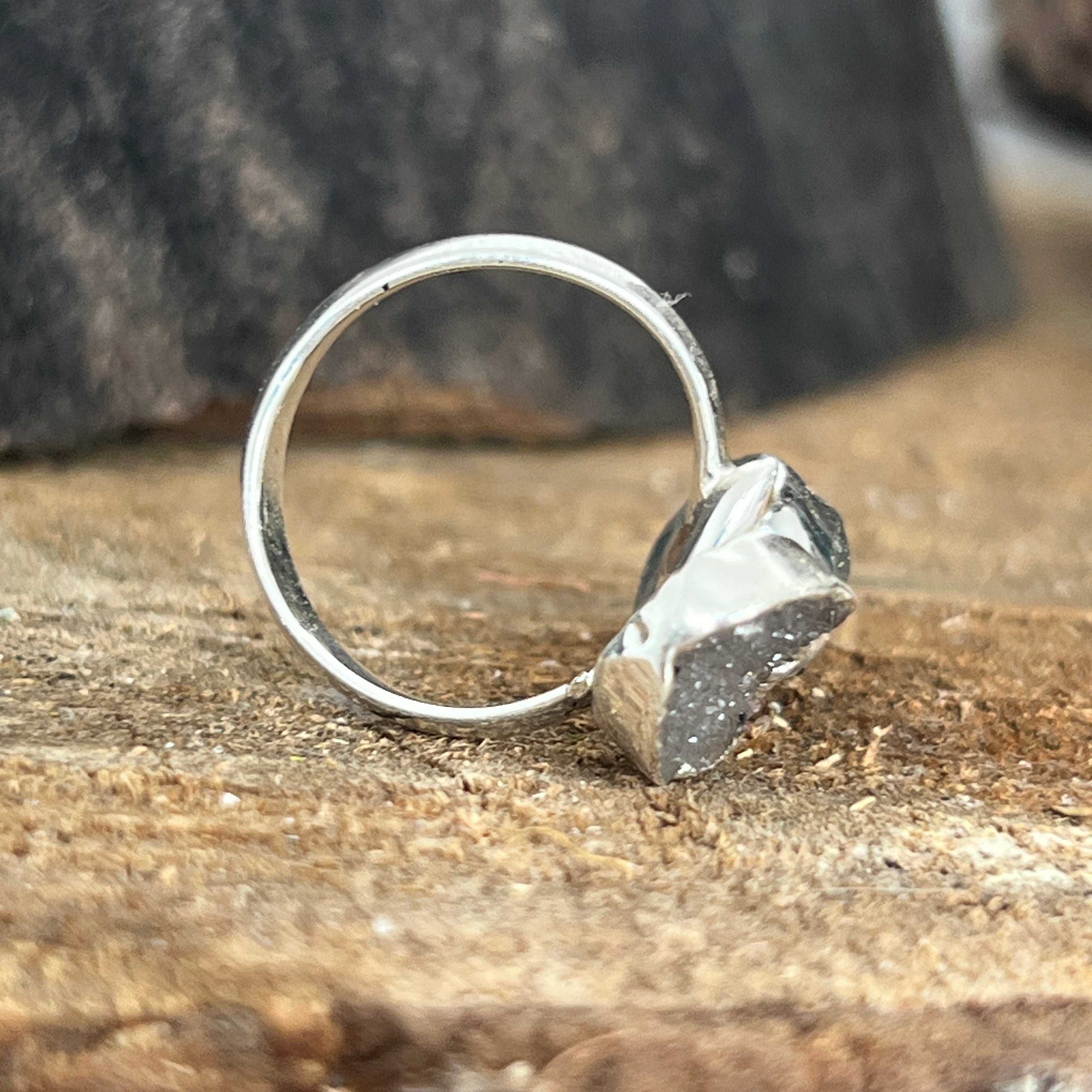 Descriere - Állítható gyűrű druzy acháttal, ezüstözött Brazíliából | 10-es modell