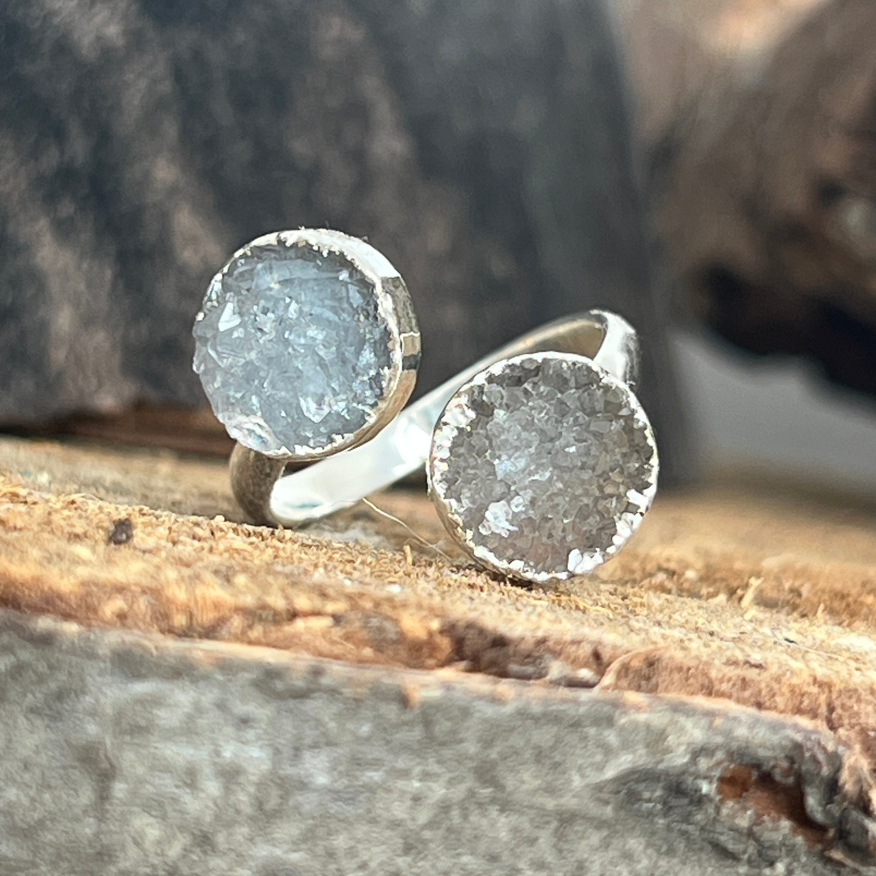 Állítható gyűrű druzy acháttal, ezüstözött Brazíliából | 8. modell