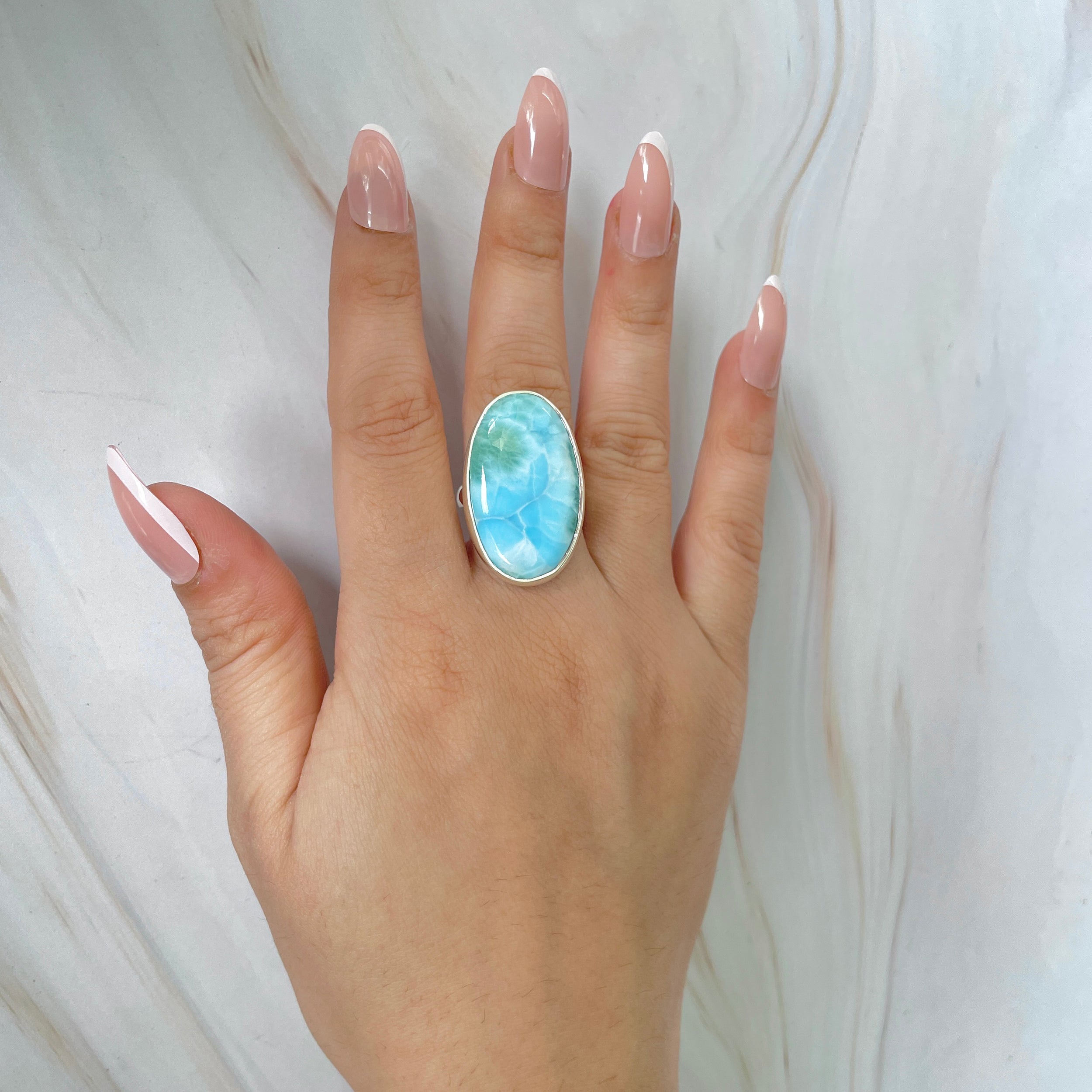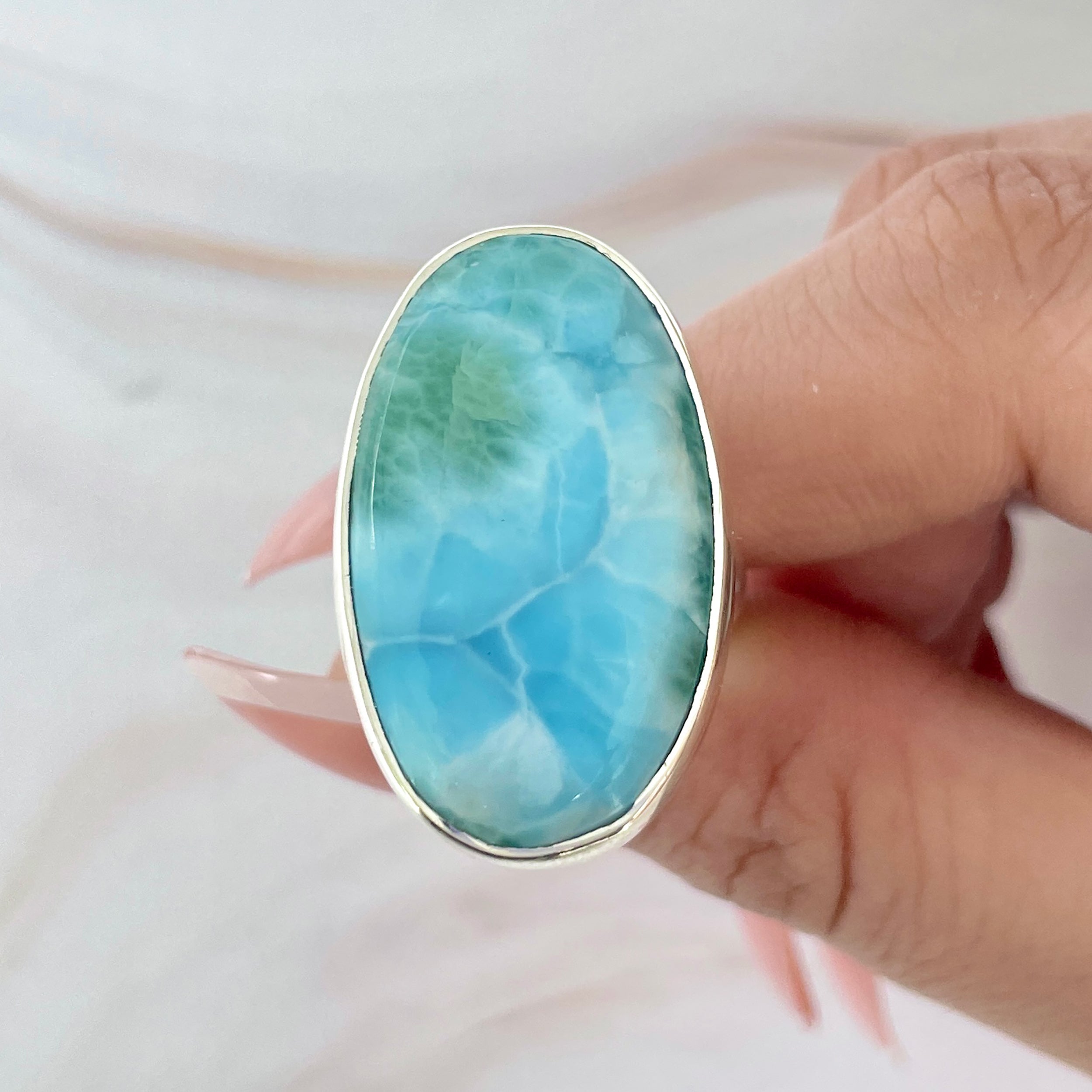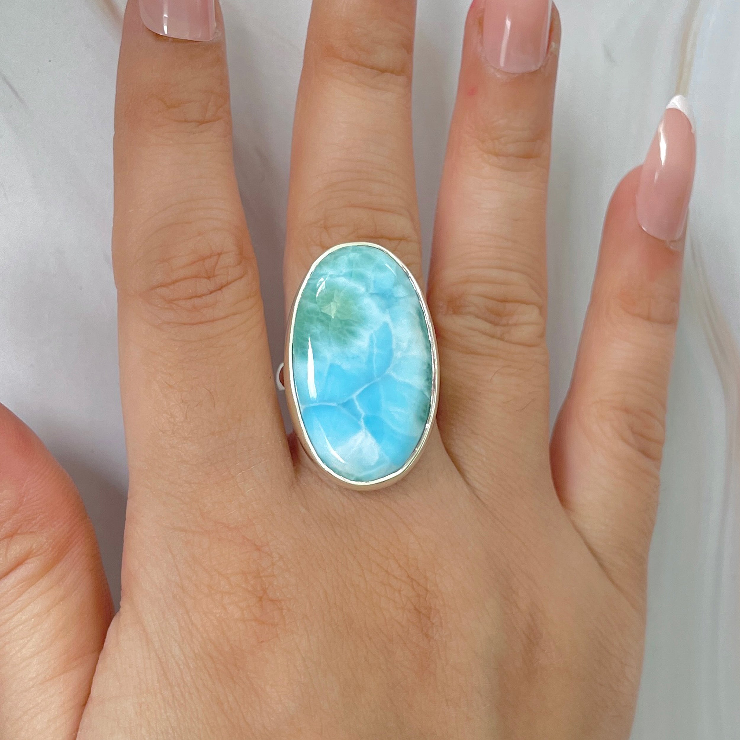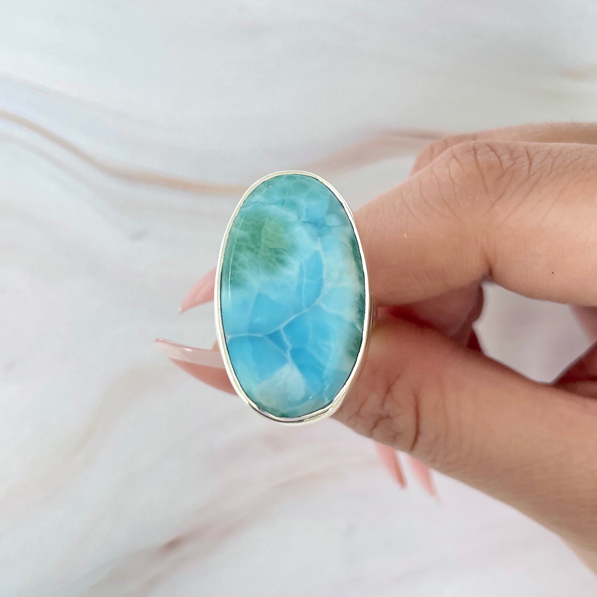 Állítható gyűrű larimar kővel, ezüst, 6-os modell
