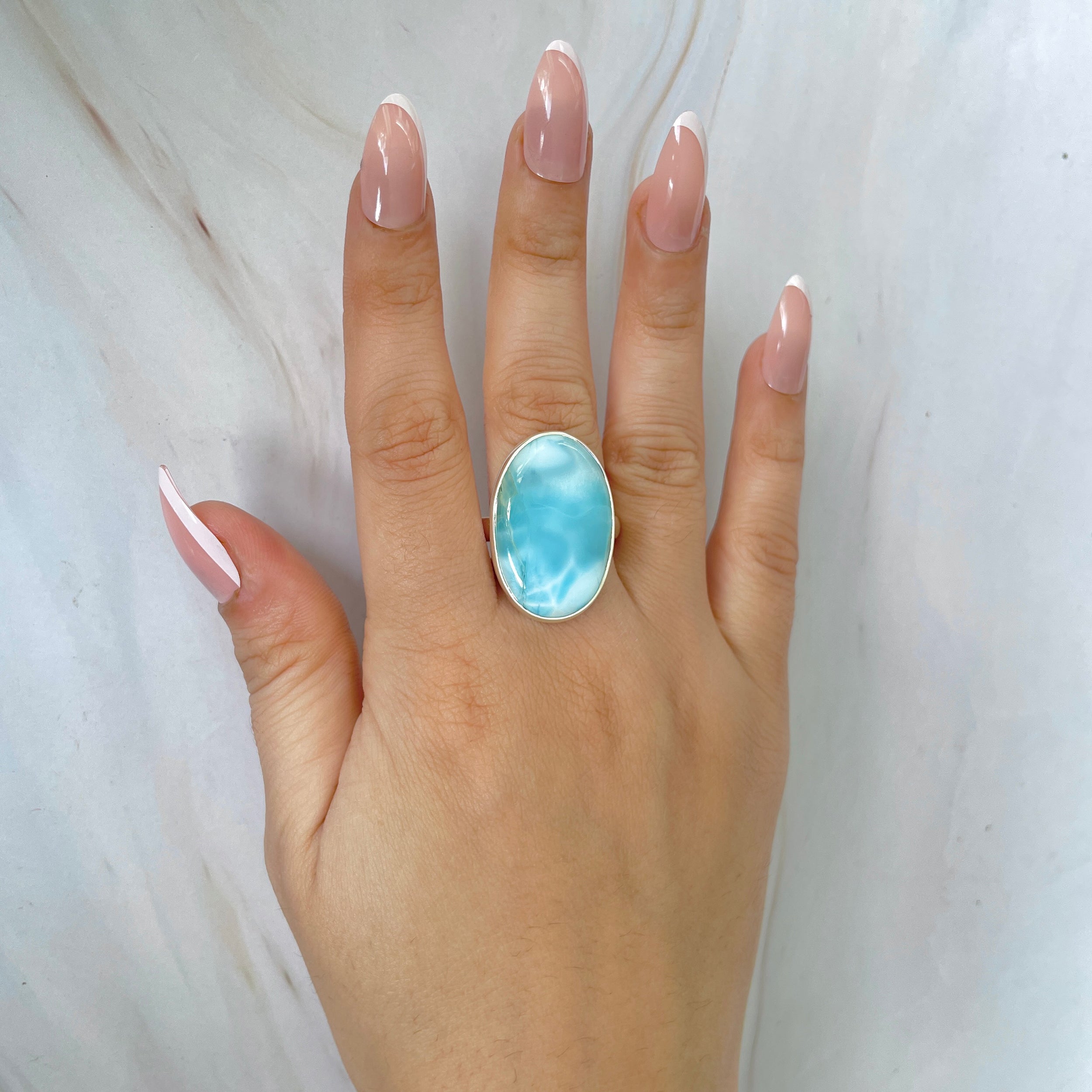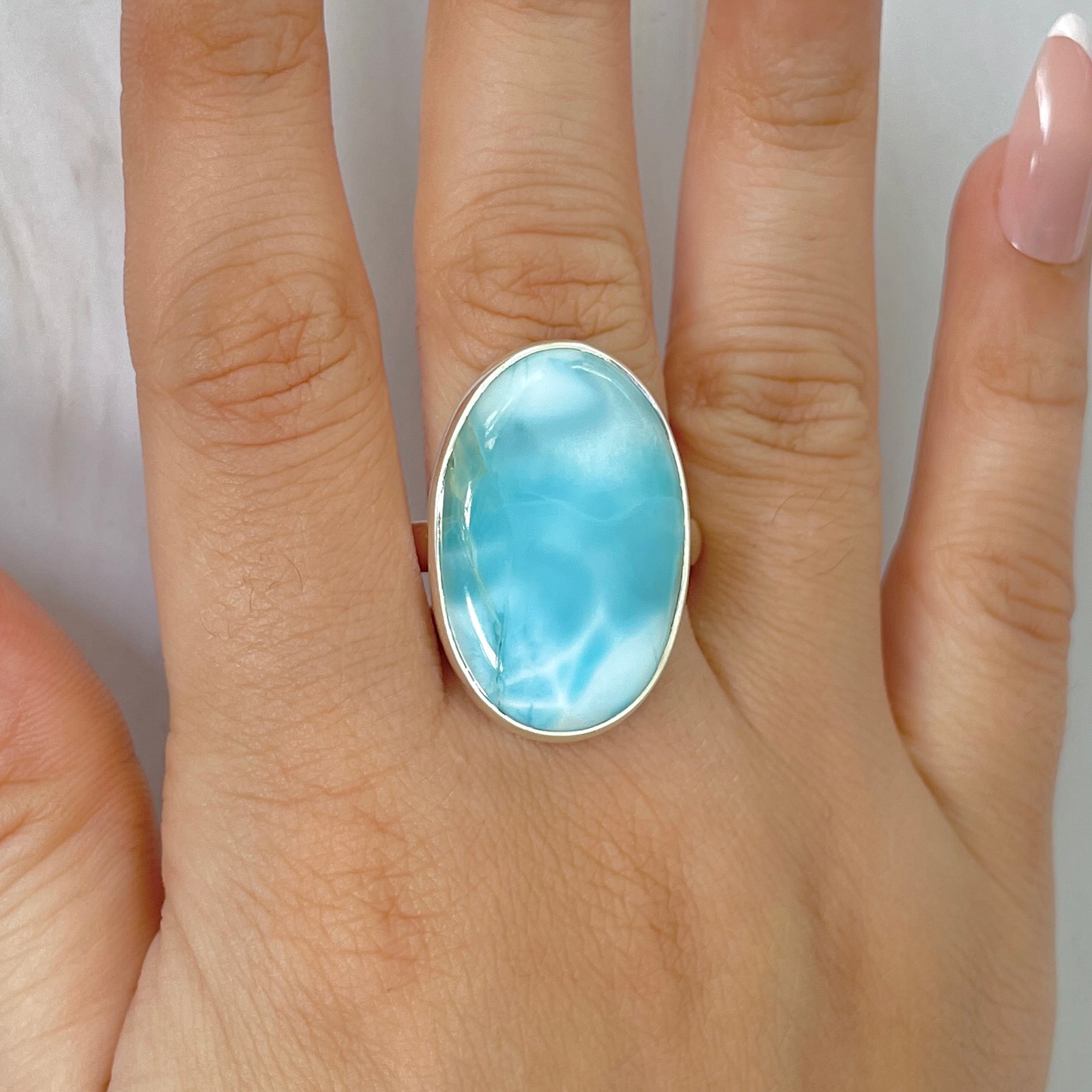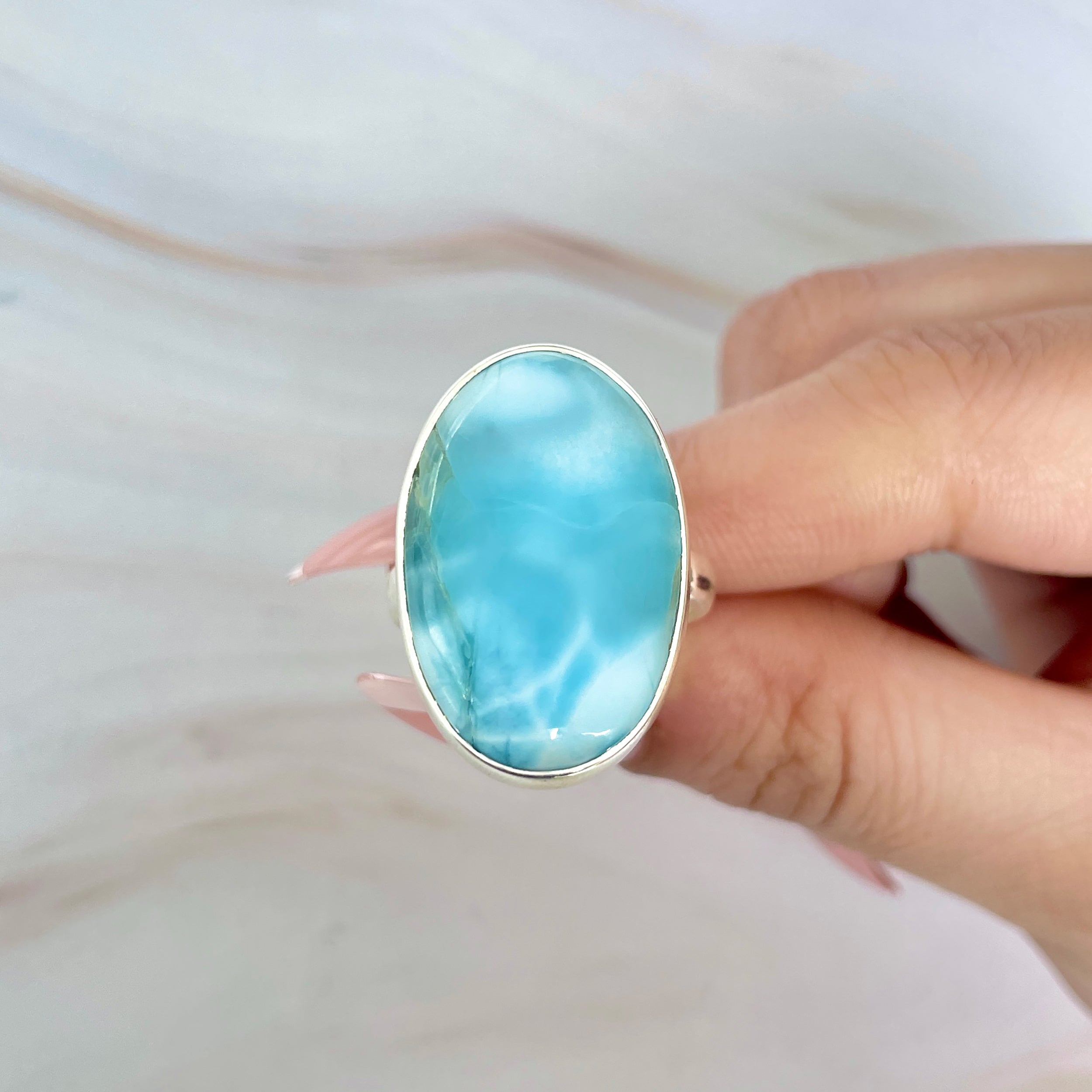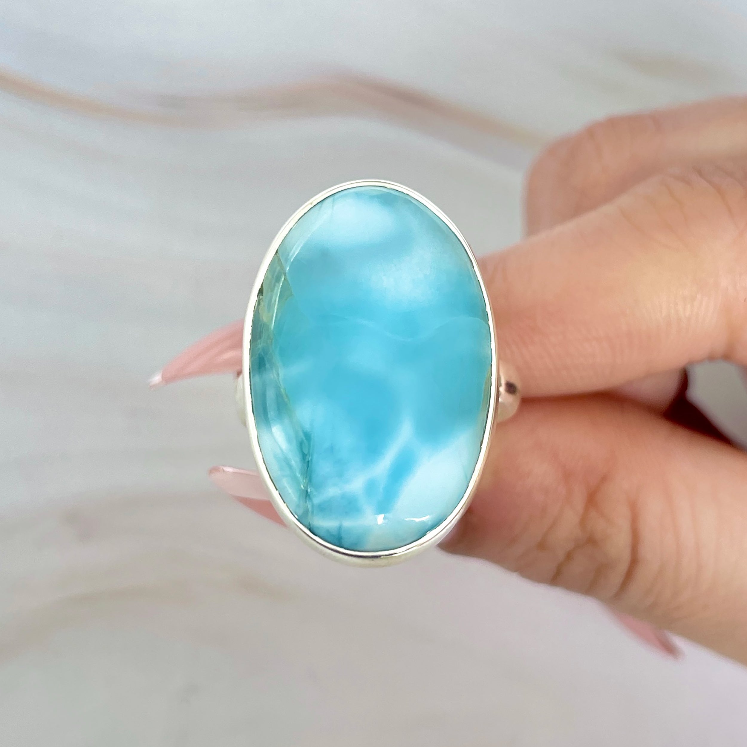 Válaszd ezt az ezüstből készült larimár természetes köves gyűrűt, hogy magaddal vihesd az óceán szépségét és egy ritka kő energiáját – egy egyedi ékszer, amelyet a természet alkotott, és az ezüst tökéletesít.
