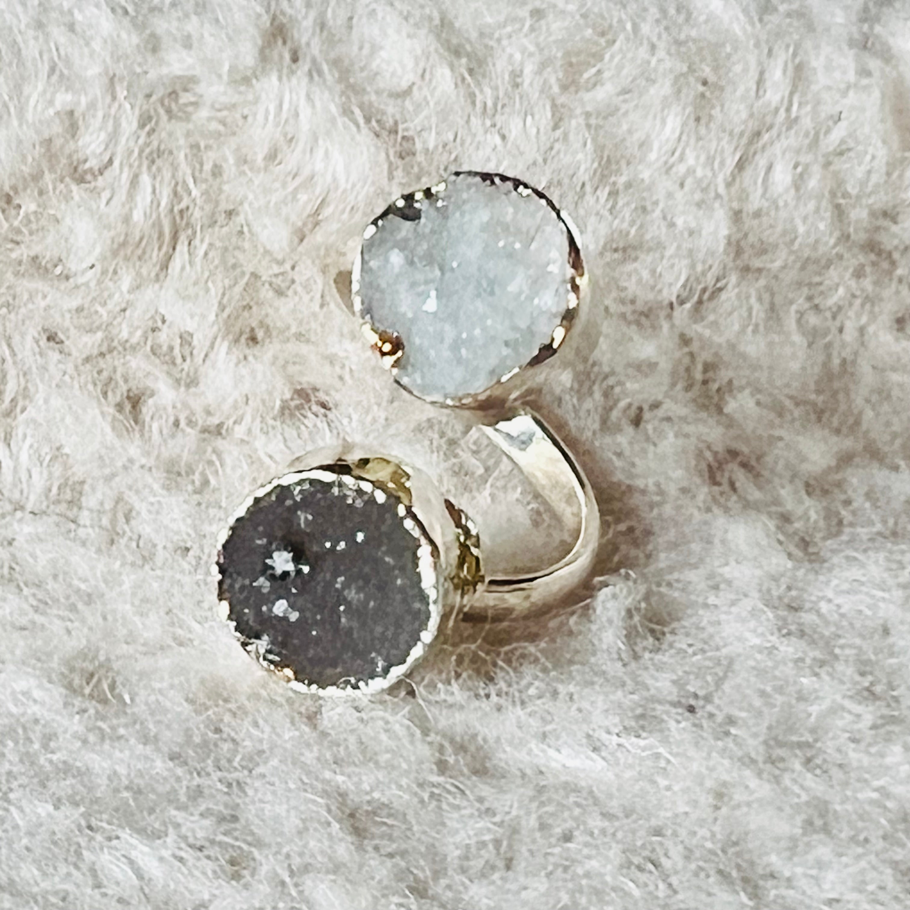 Állítható méretű druzy achát gyűrű Circles, ezüstözött, Brazíliából, 5-ös modell