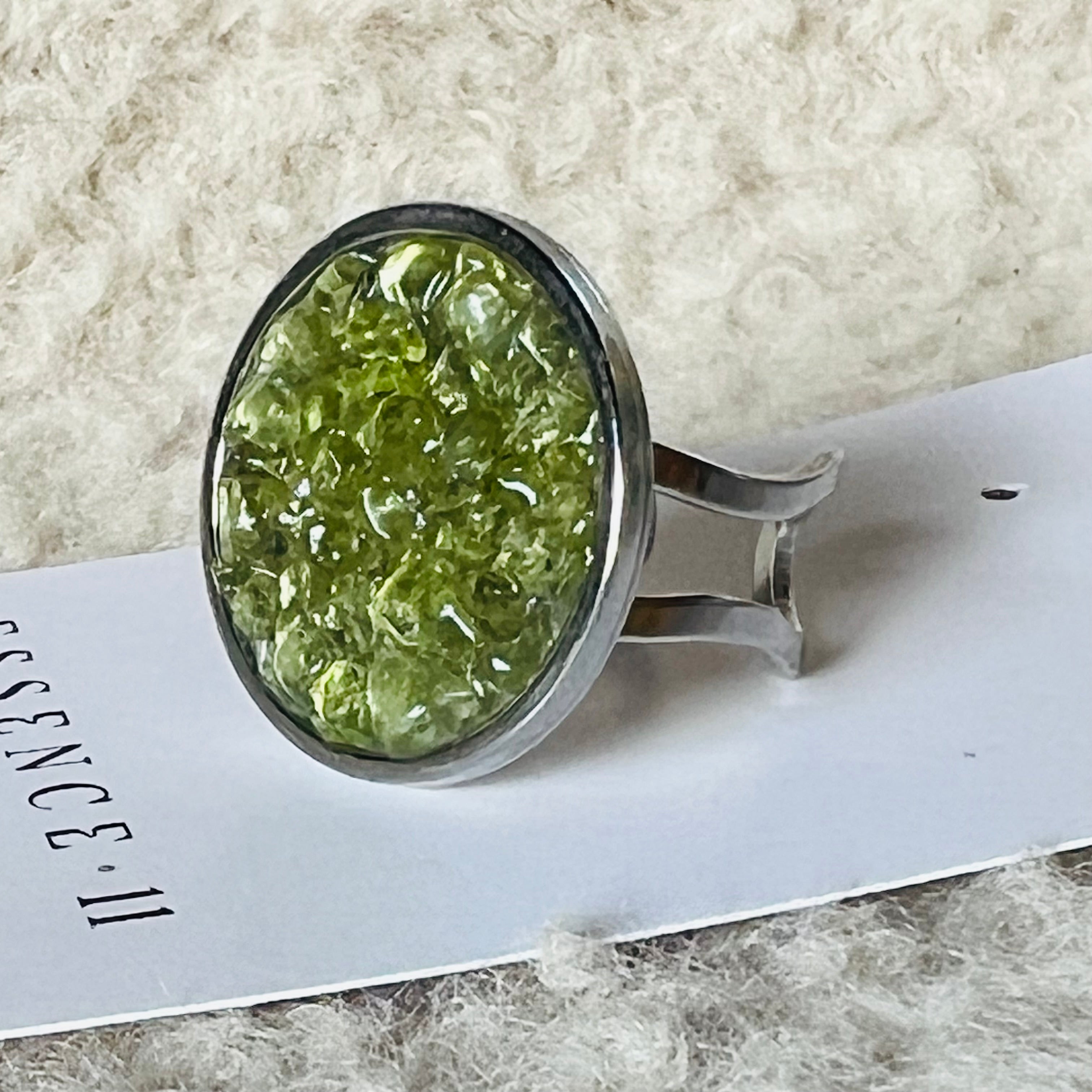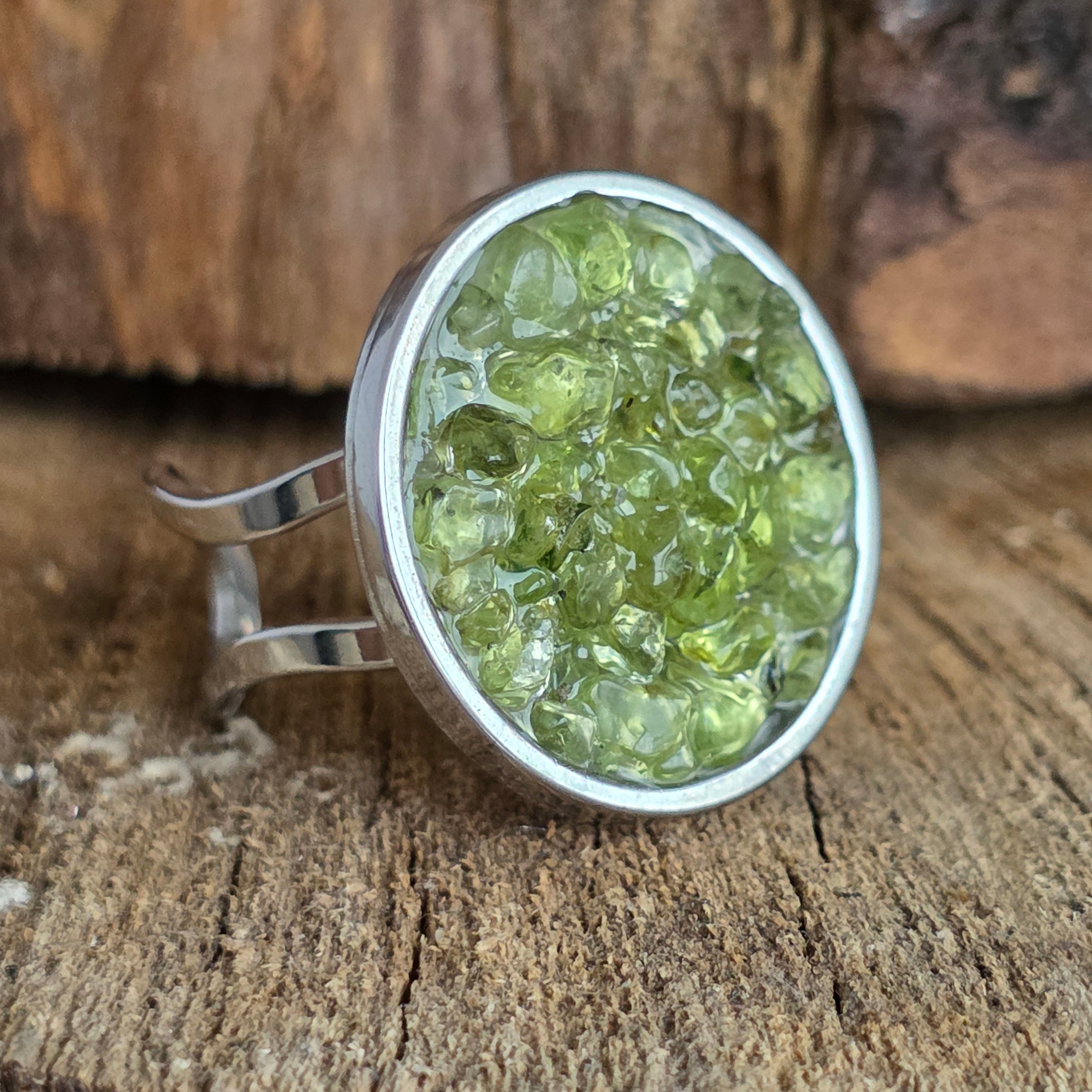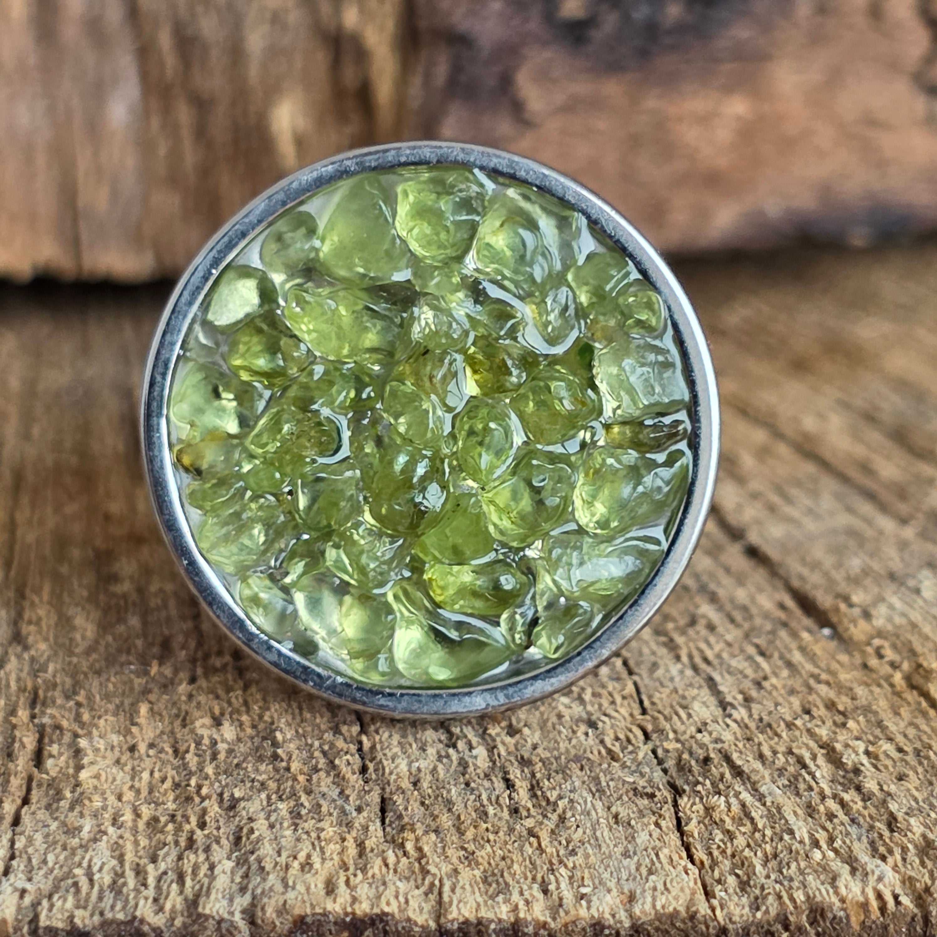 Anyagok: peridot, rozsdamentes acél, gyanta