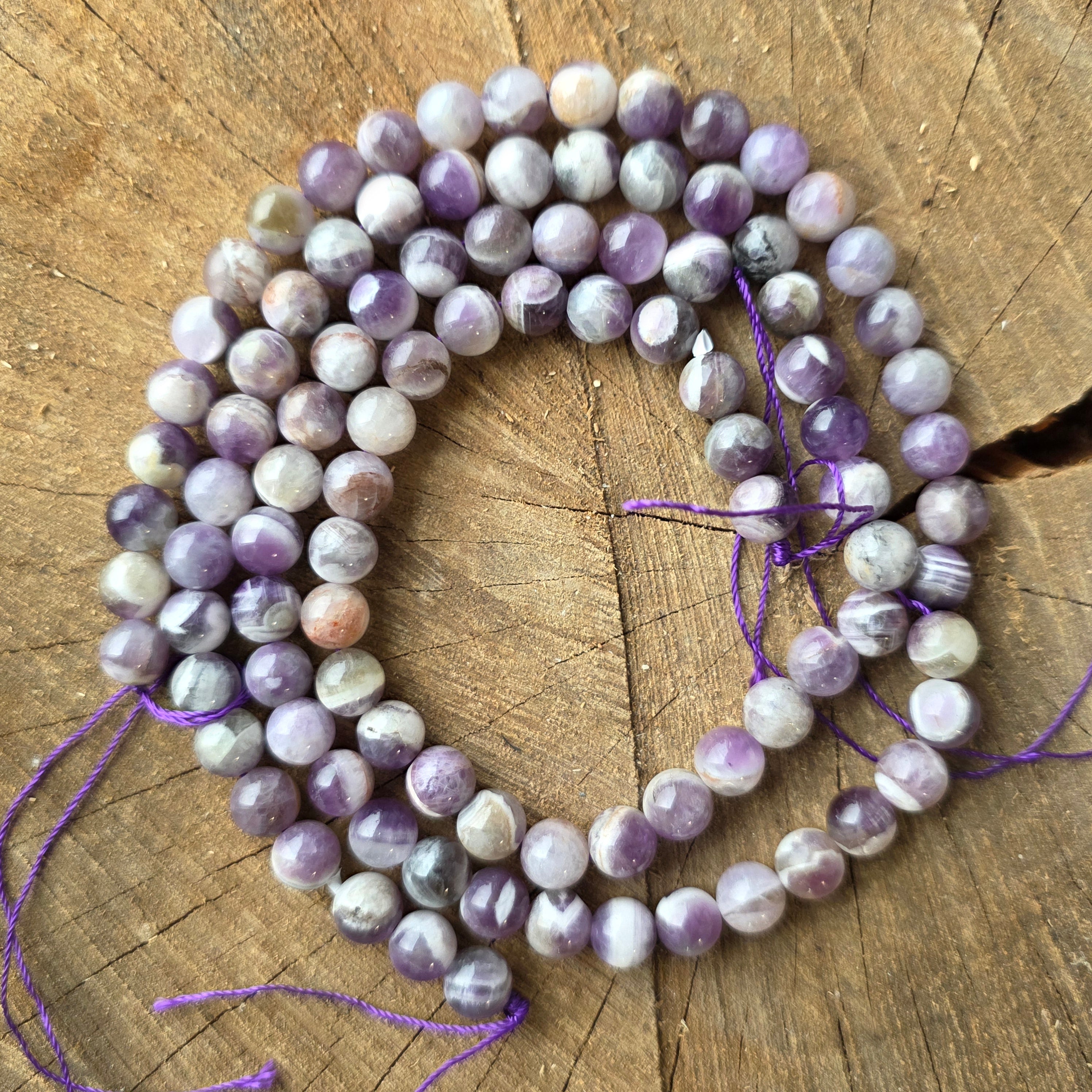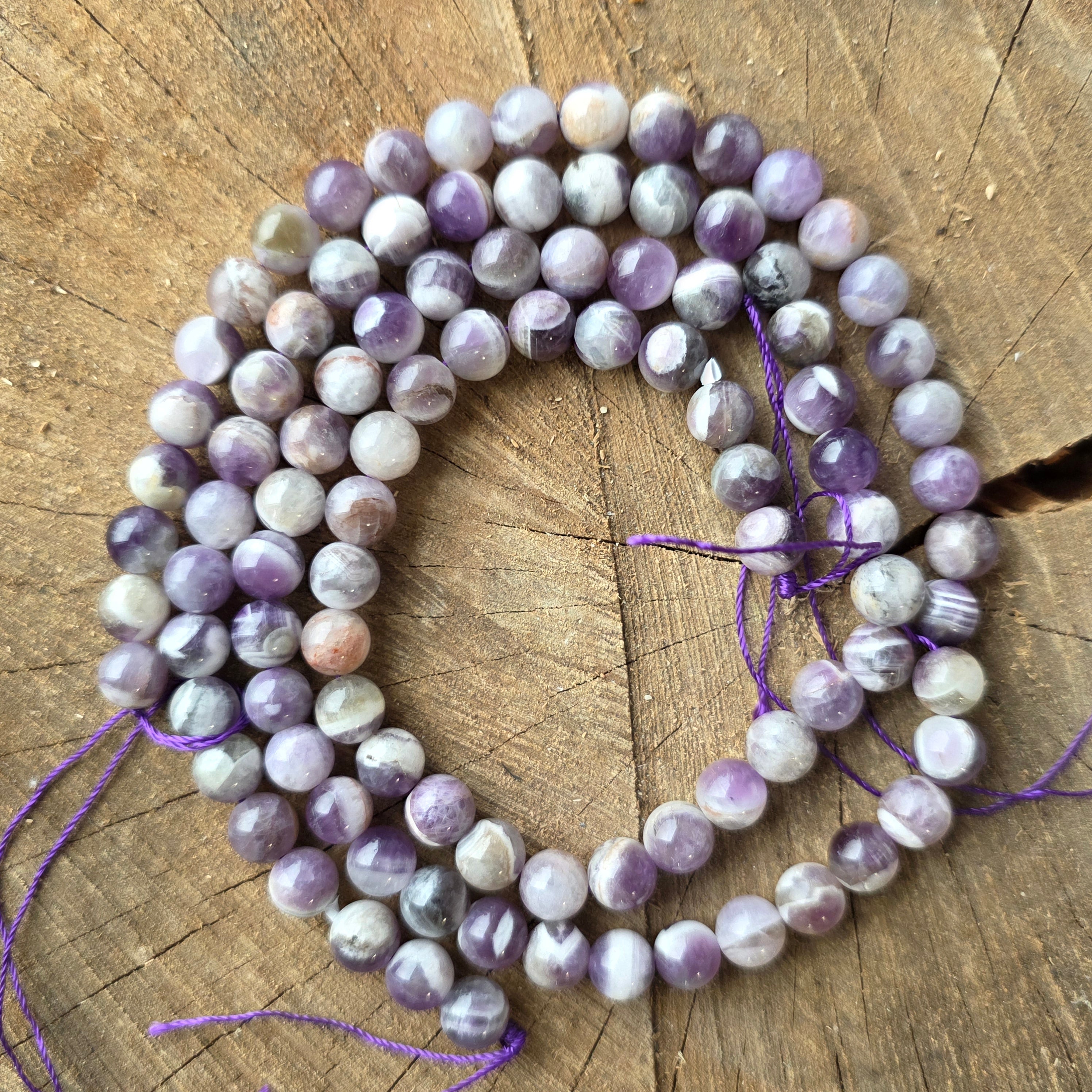 AMETISZT CHEVRON gyöngysor, mely természetes gömb alakú gyöngyökből áll, tökéletes nyakláncokhoz, karkötőkhöz vagy más kézzel készített ékszerekhez.