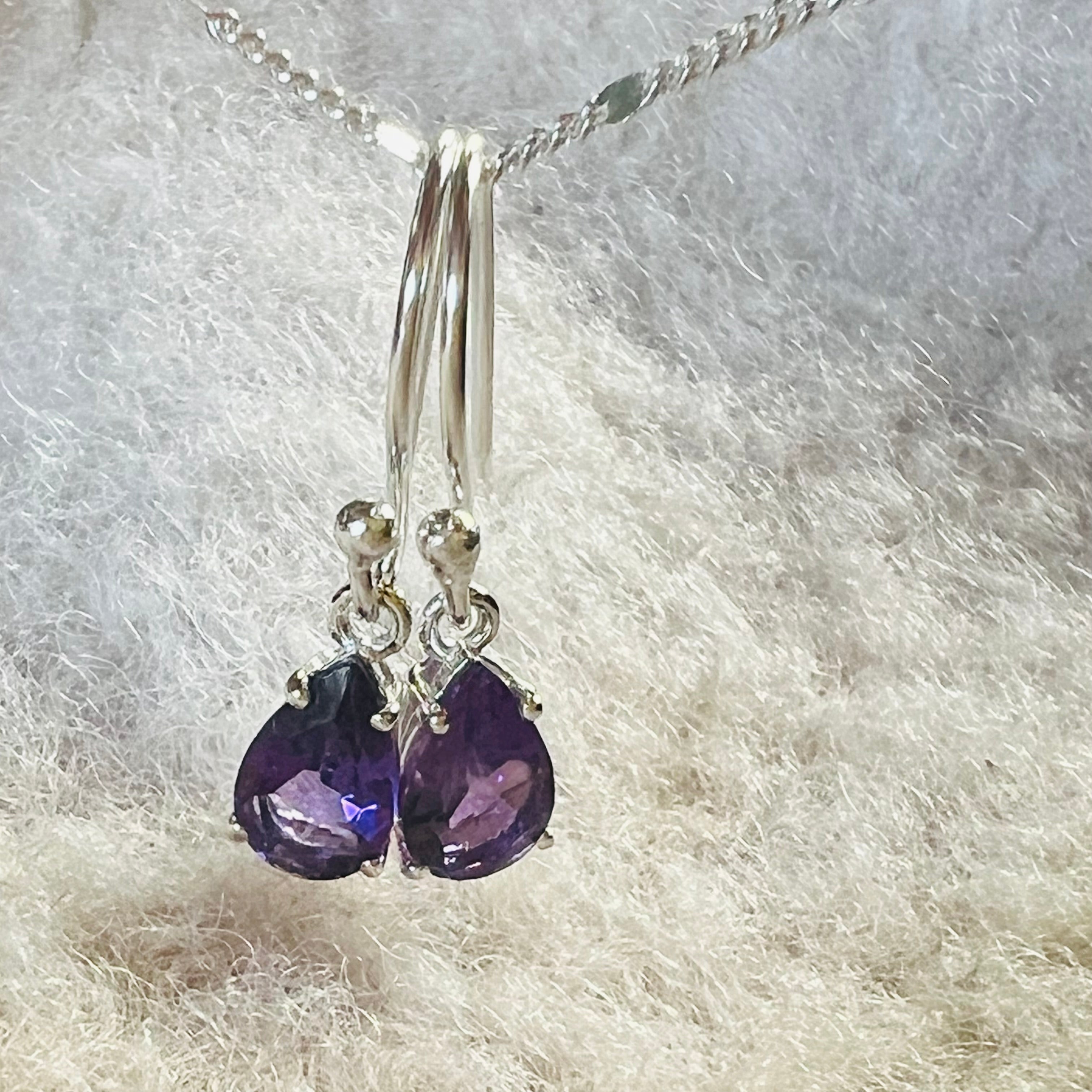 Ametiszt ezüst fülbevaló 8 mm Pear