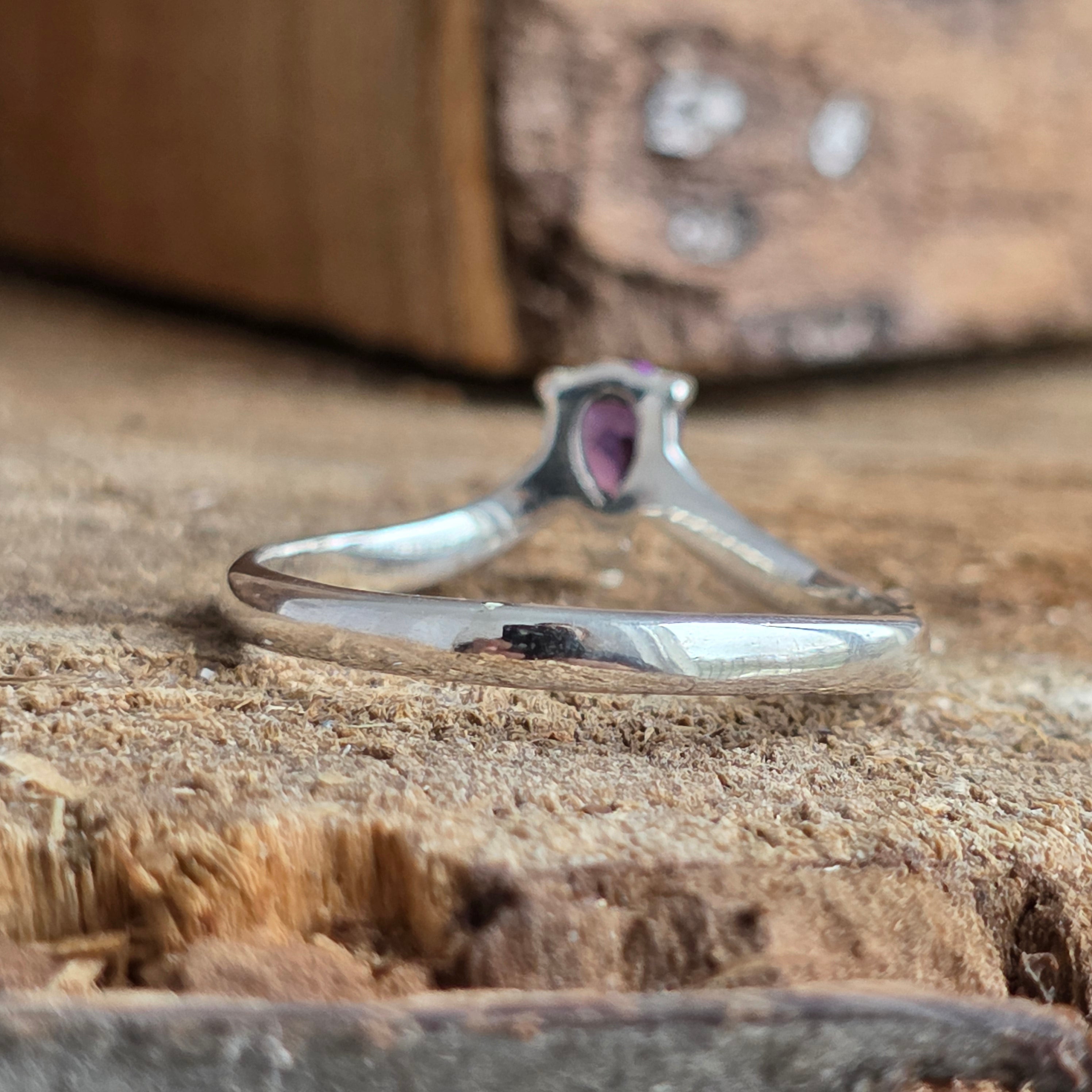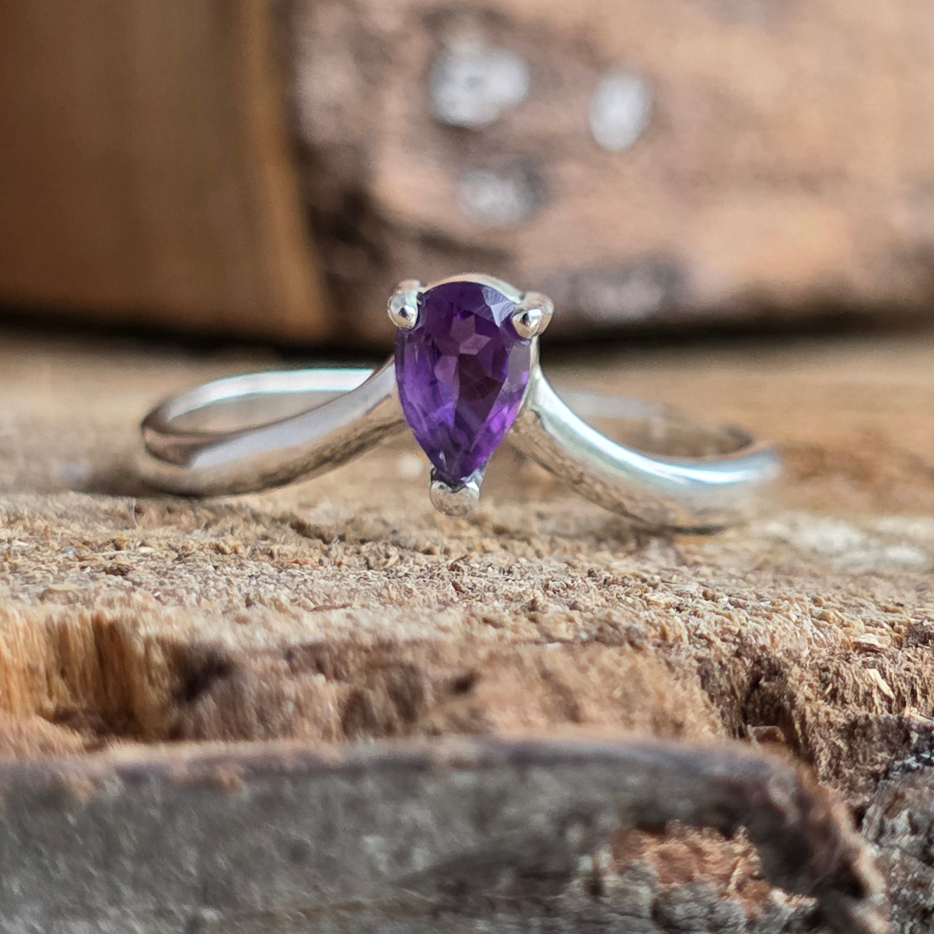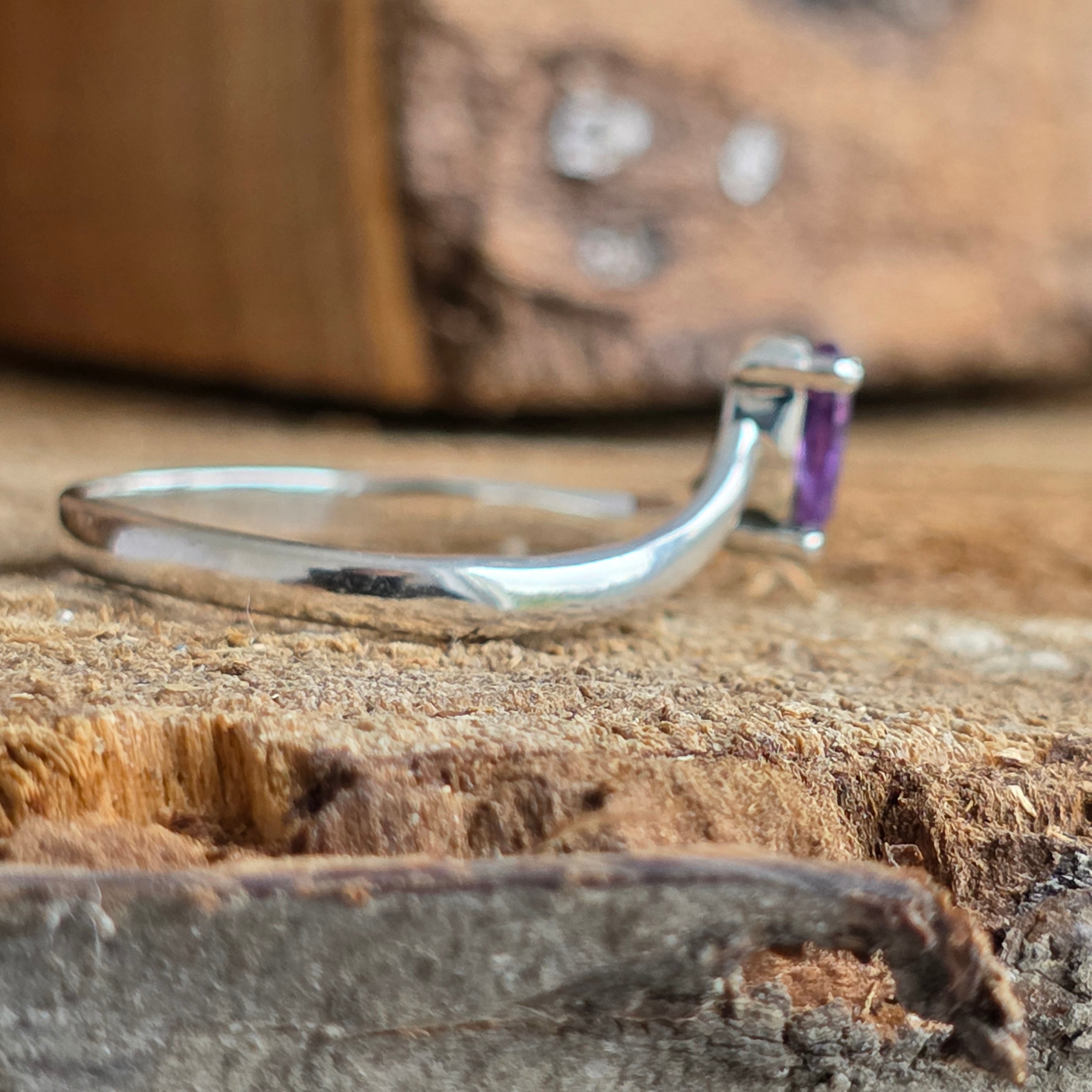 Egyszerű, mégis kecses, ez 925 ezüst gyűrű a tisztaságot és a fényt hangsúlyozza természetes ametiszt, az egyensúly és a belső béke köve.