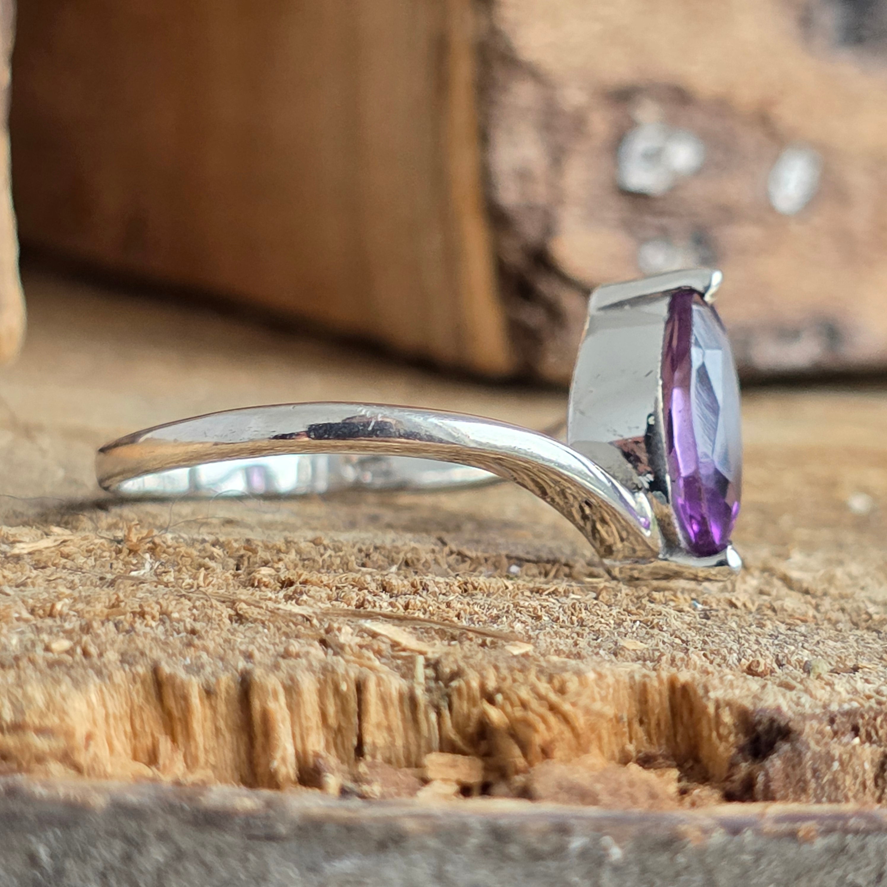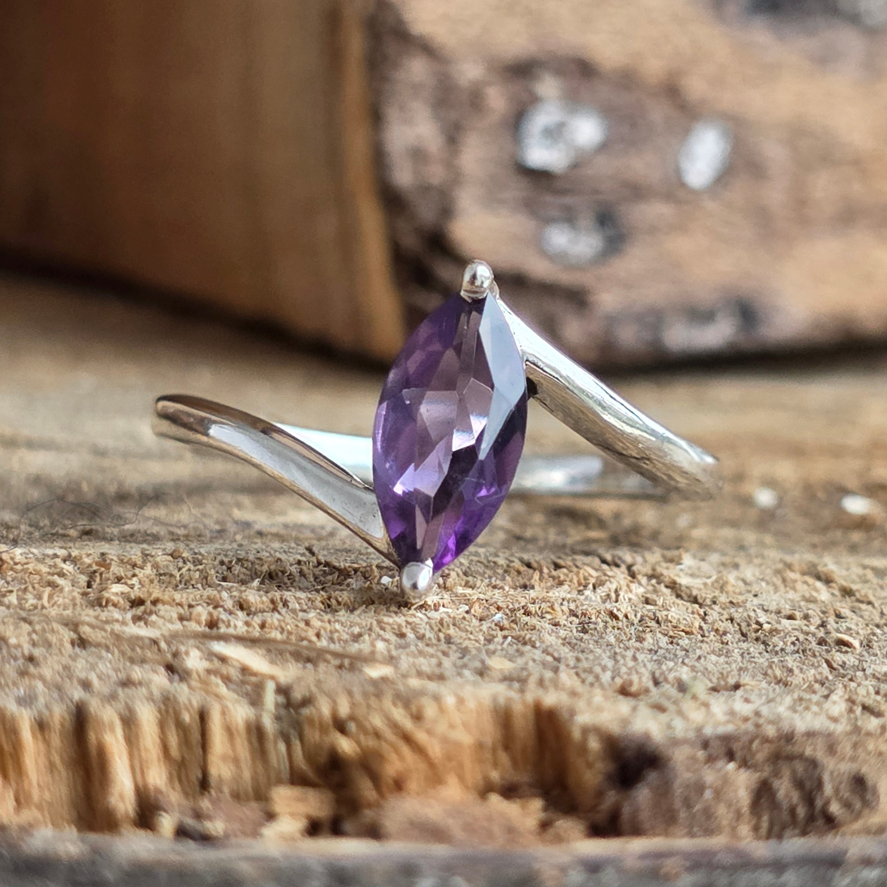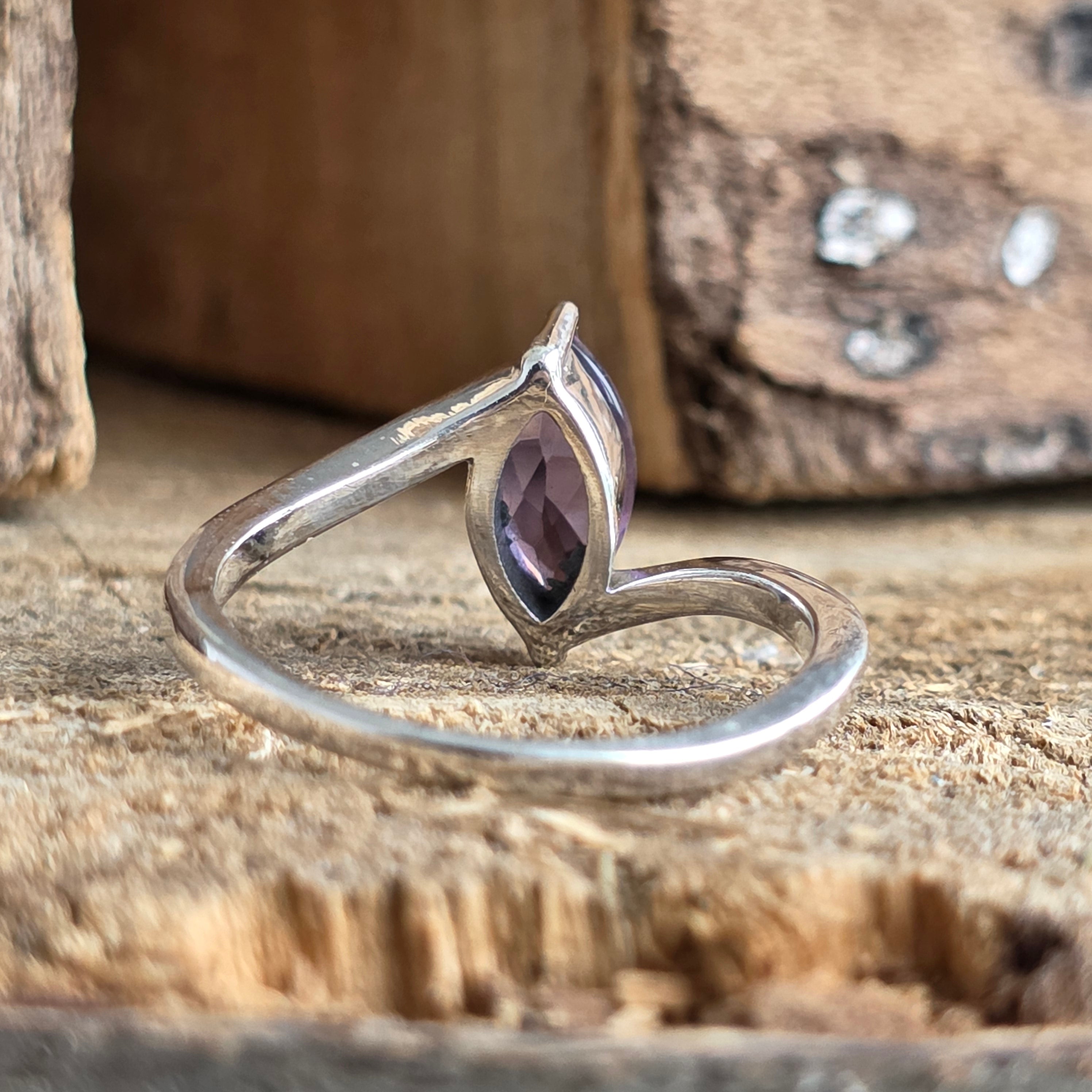 A finom és folyékony dizájn kiemeli a kő áttetsző lila árnyalatát, finom egyensúlyt teremtve az elegancia és a természetesség között.