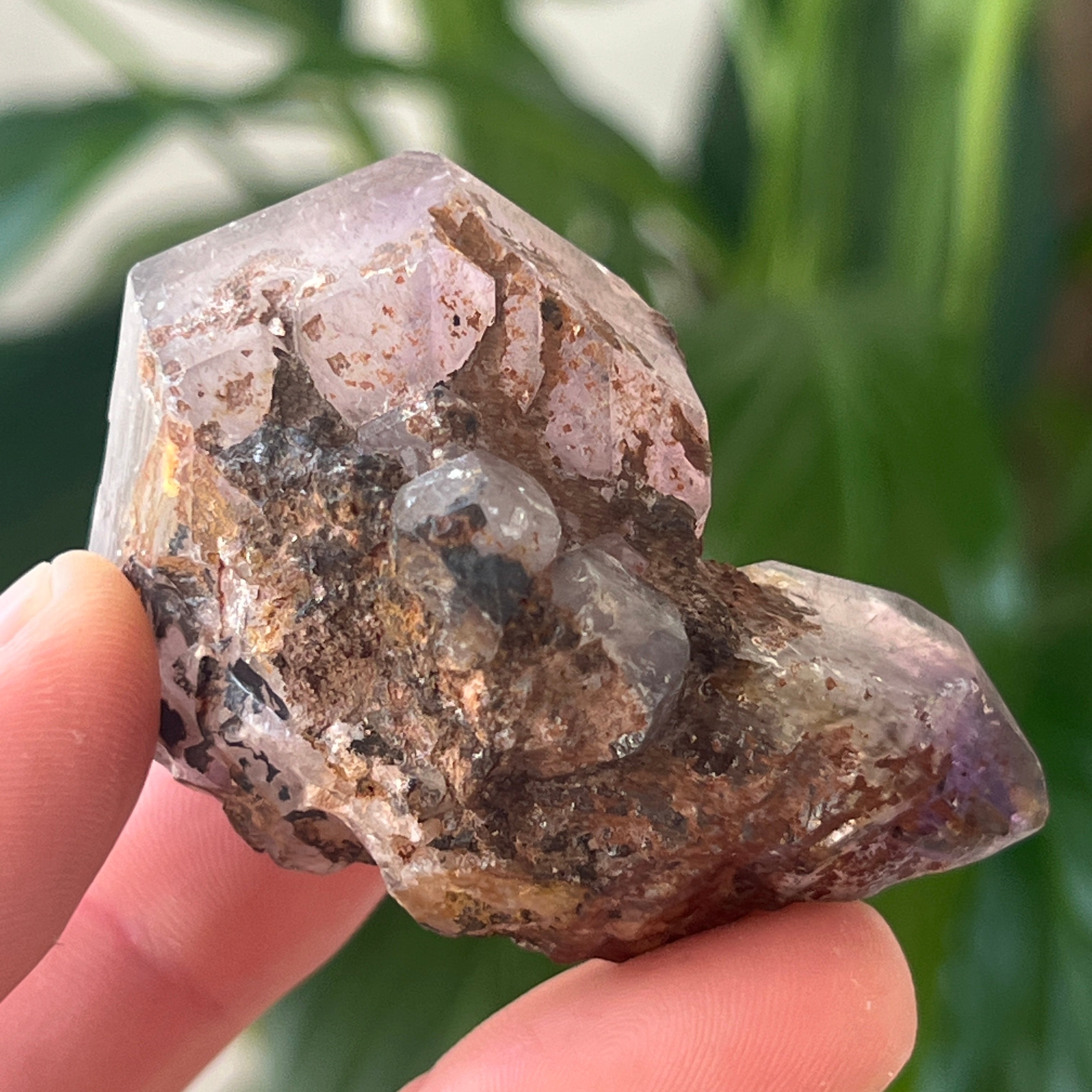 Trigonz rendszerben kristályosodva, ez a SiO₂ (szilícium-dioxid) példány kitűnik kiváló átlátszóságával és természetes, hatszögletű formáival. Néhány darab tartalmaz „szellemeket” – belső kontúrokat, amelyek a korábbi növekedési fázisokat tükrözik – vagy mobil hidrotermális folyadékbuborékokat, hematitot vagy goethitet, mindezeket a kristály belsejében, több millió évvel ezelőtt foglalták magukba.