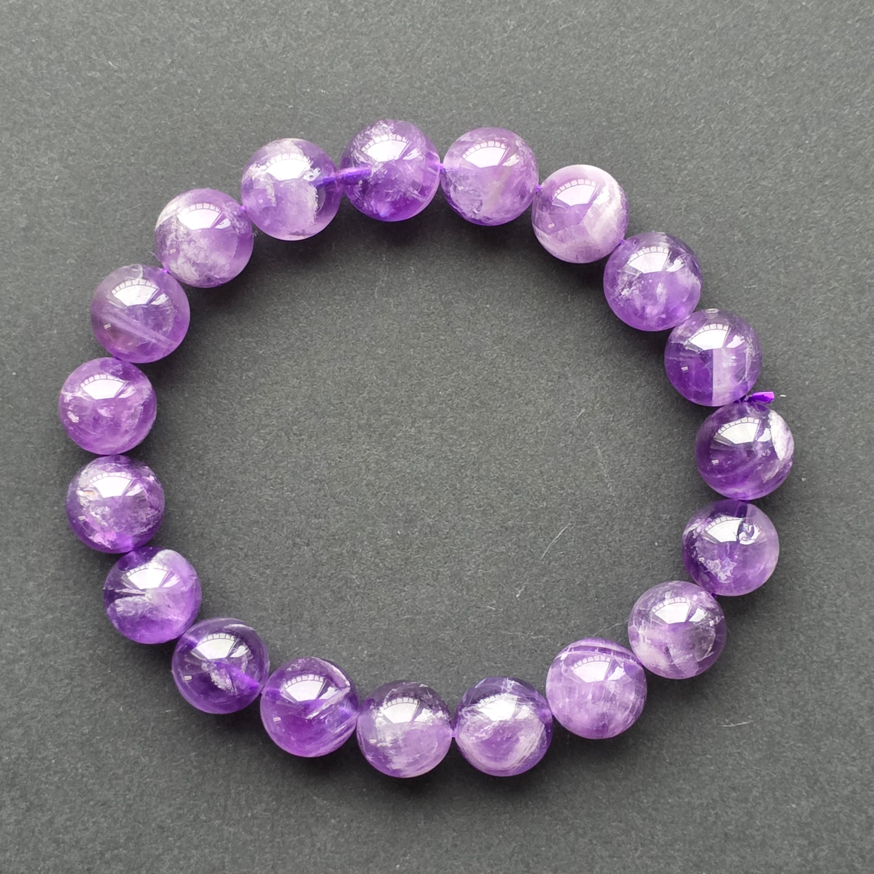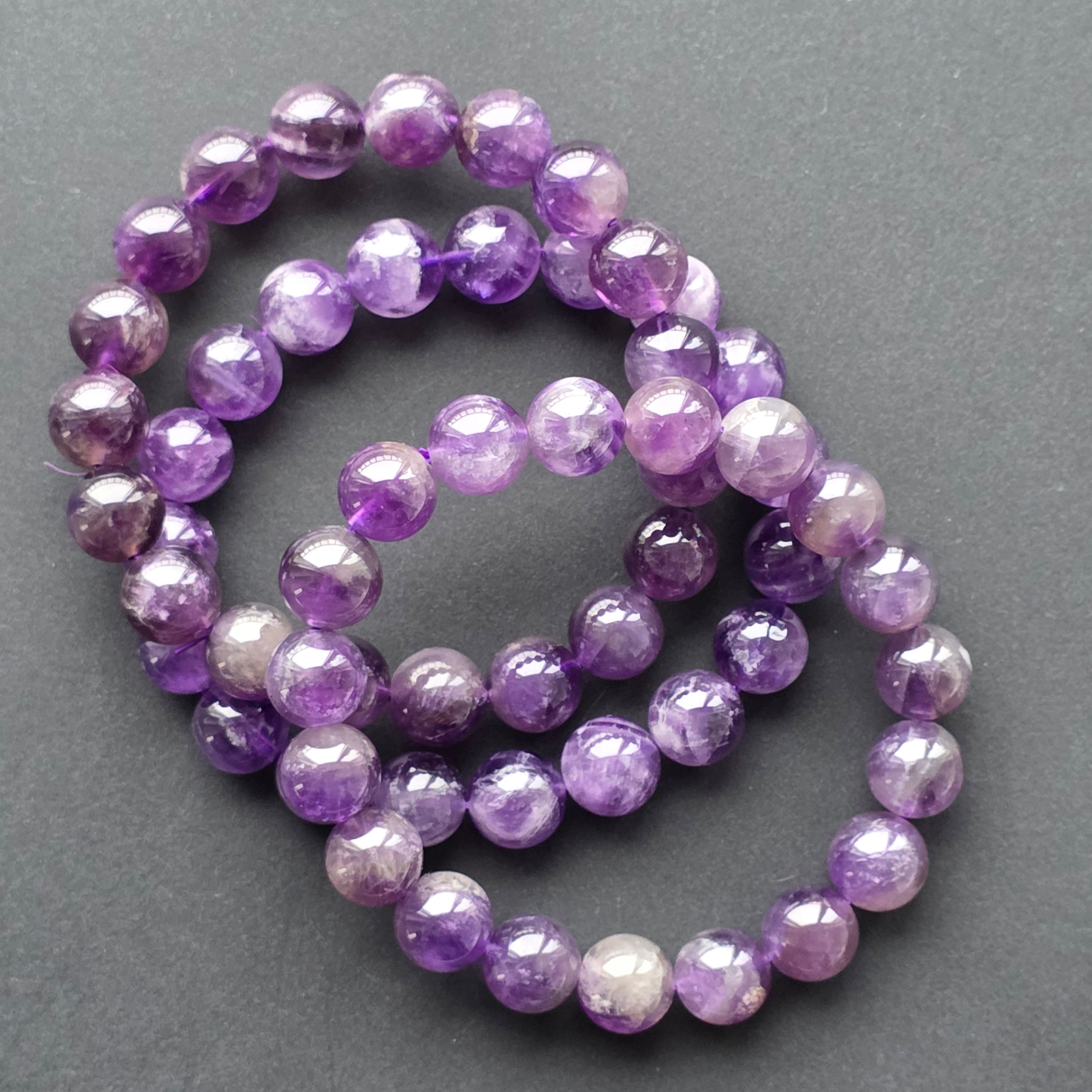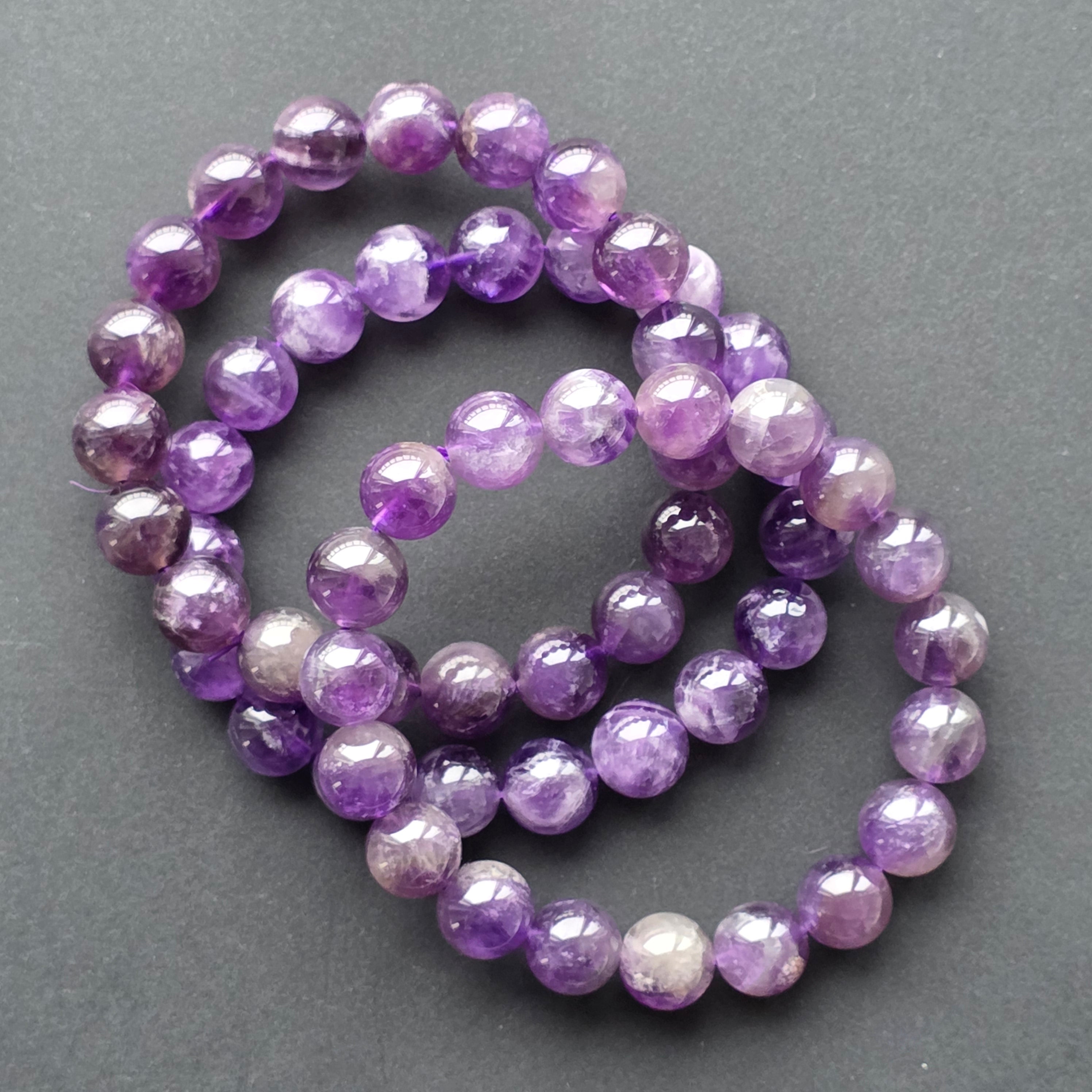 Minden gyöngy finom fényvisszaverődésben ragyog, és a lila különböző árnyalatai — a mély tónusoktól a áttetsző kiemelésekig — elegáns, nyugodt és harmonikus darabbá varázsolják a karkötőt. Könnyen viselhető, finom a csuklón, és alkalmas mind a hétköznapi, mind az elegánsabb öltözködési stílushoz.