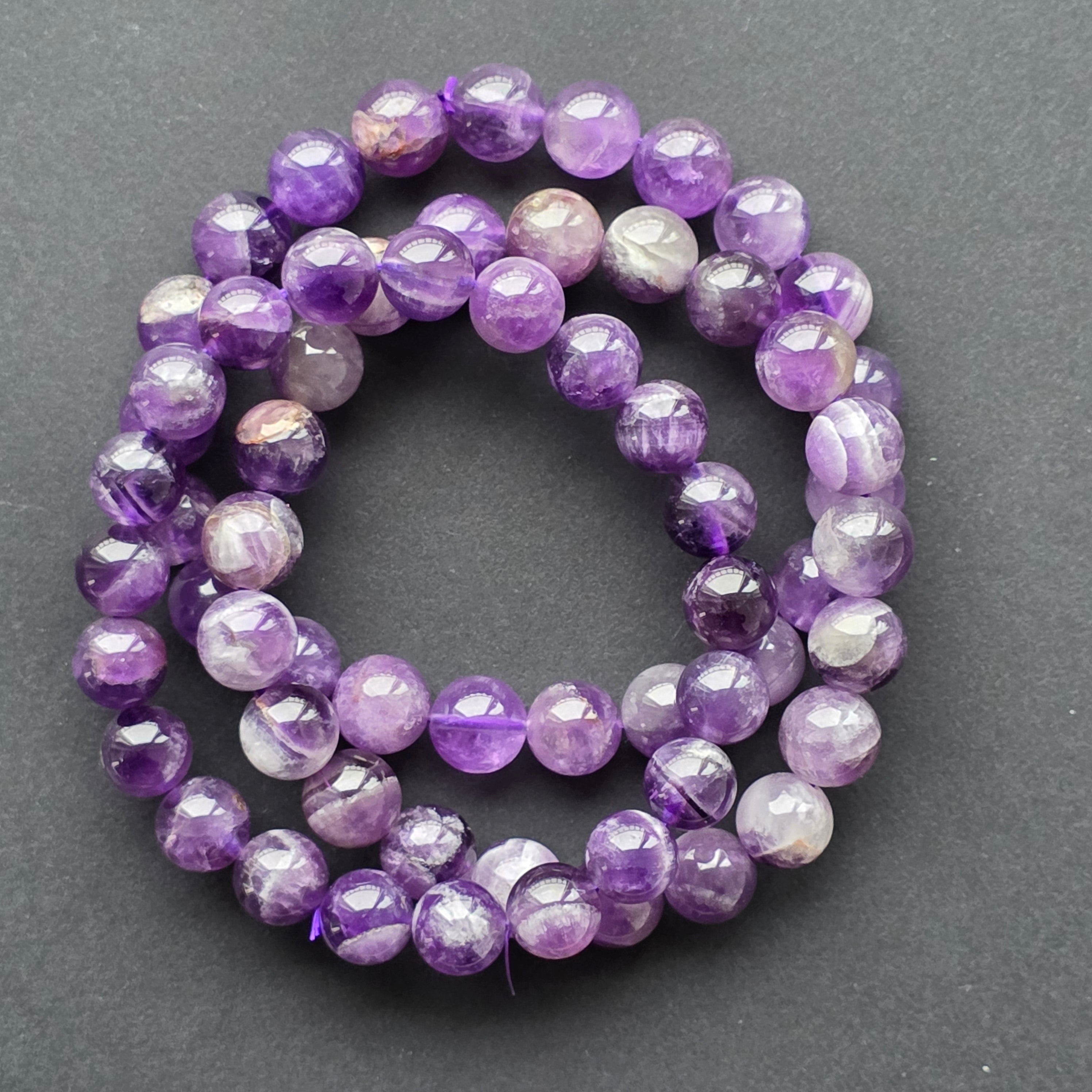 Az ametiszt karkötő a csuklóra hozza az egyik legkedveltebb féldrágakő klasszikus kifinomultságát. A kis, tökéletesen kerek gyöngyök finom sorozatban sorakoztatják a lila árnyalatokat, természetes átmenettel, amely az esti égboltra vagy egy fényben ragyogó levendulavirág intenzitására emlékeztet.