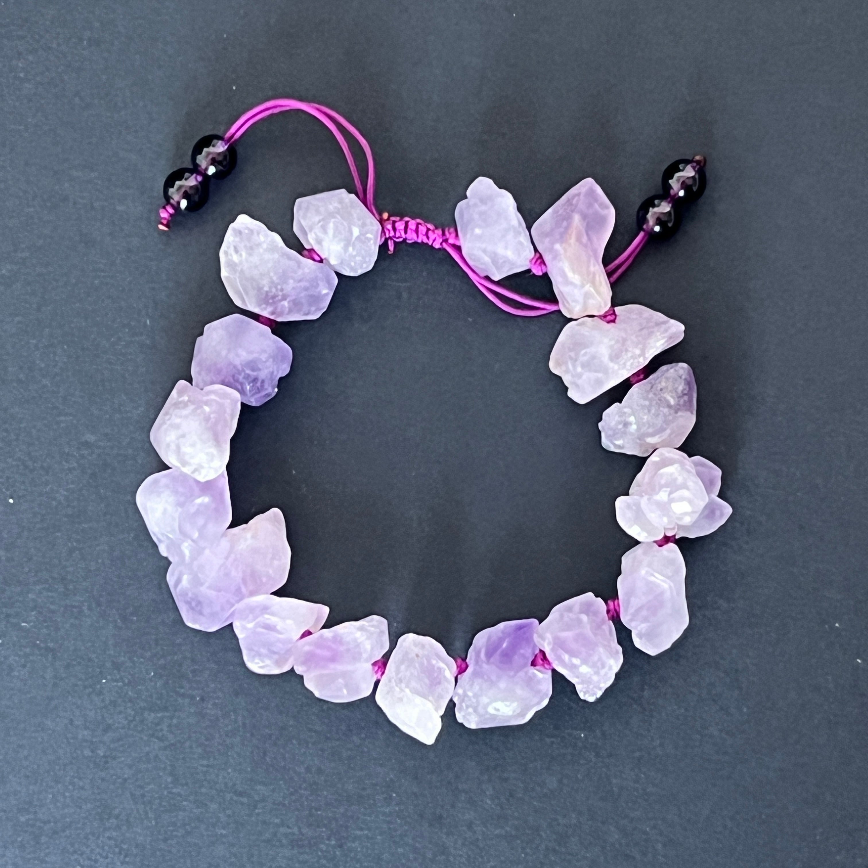 Vélemények - Ametiszt karkötő nyers kövekkel, állítható zsinórral