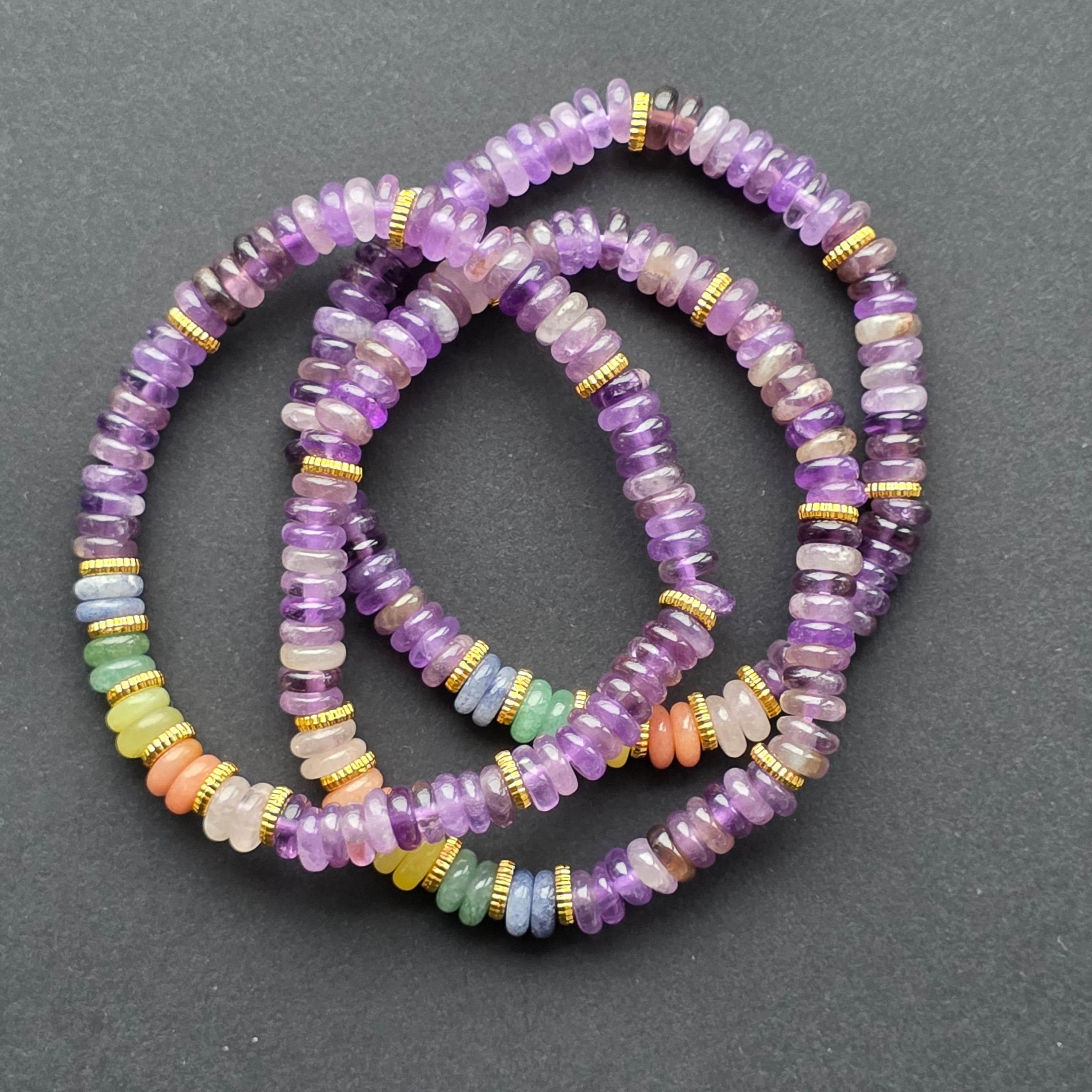 Descriere - Ametiszt korong karkötő | 7 csakra