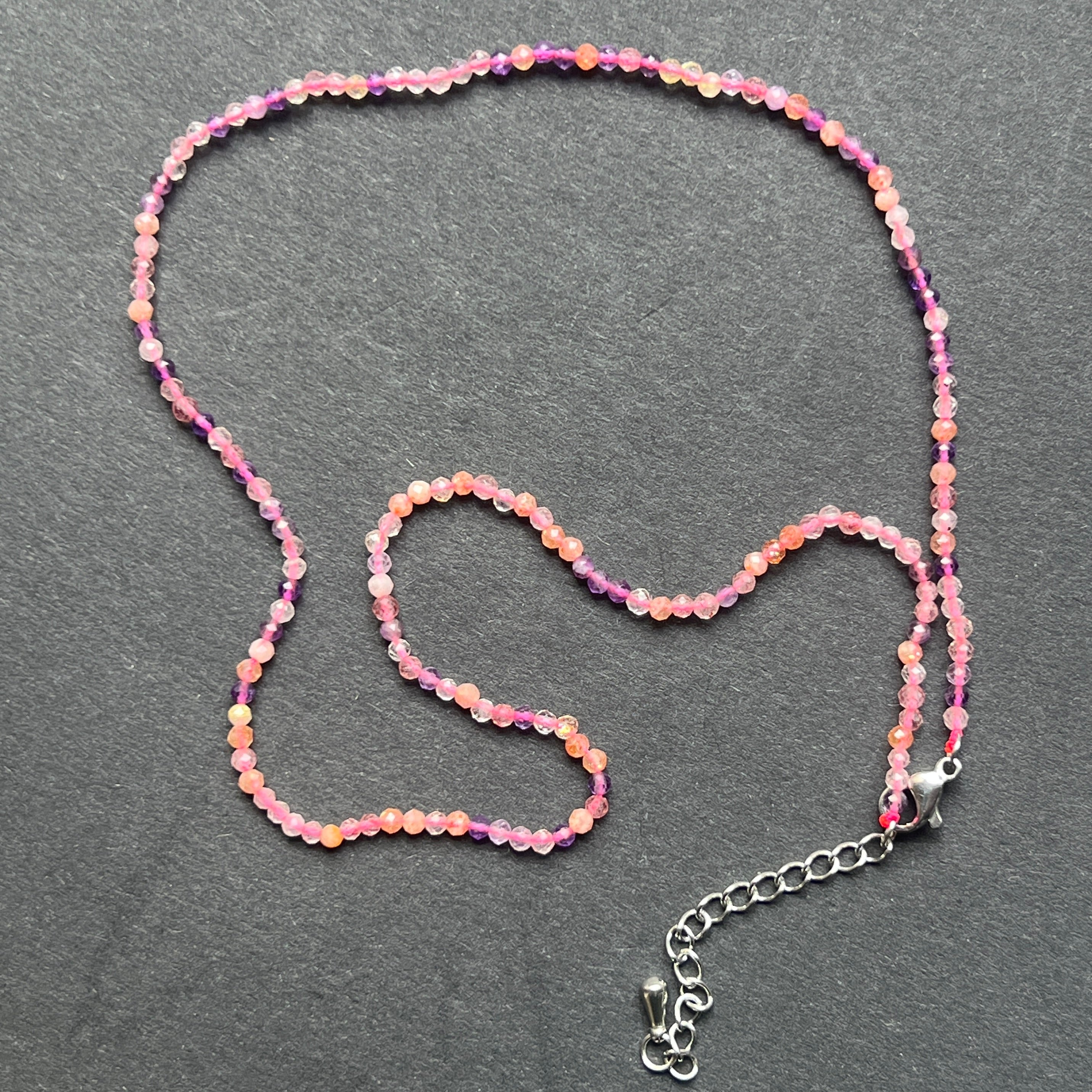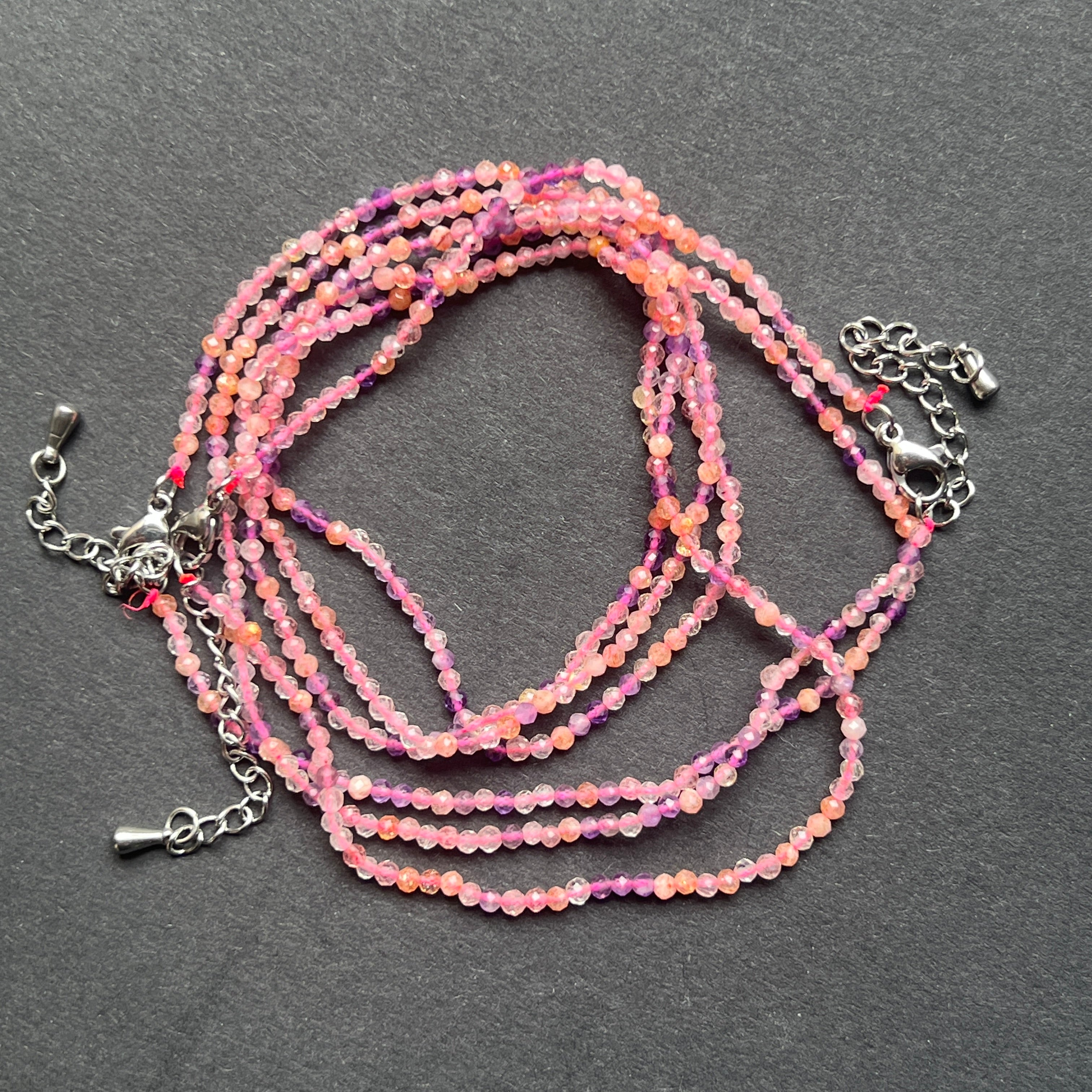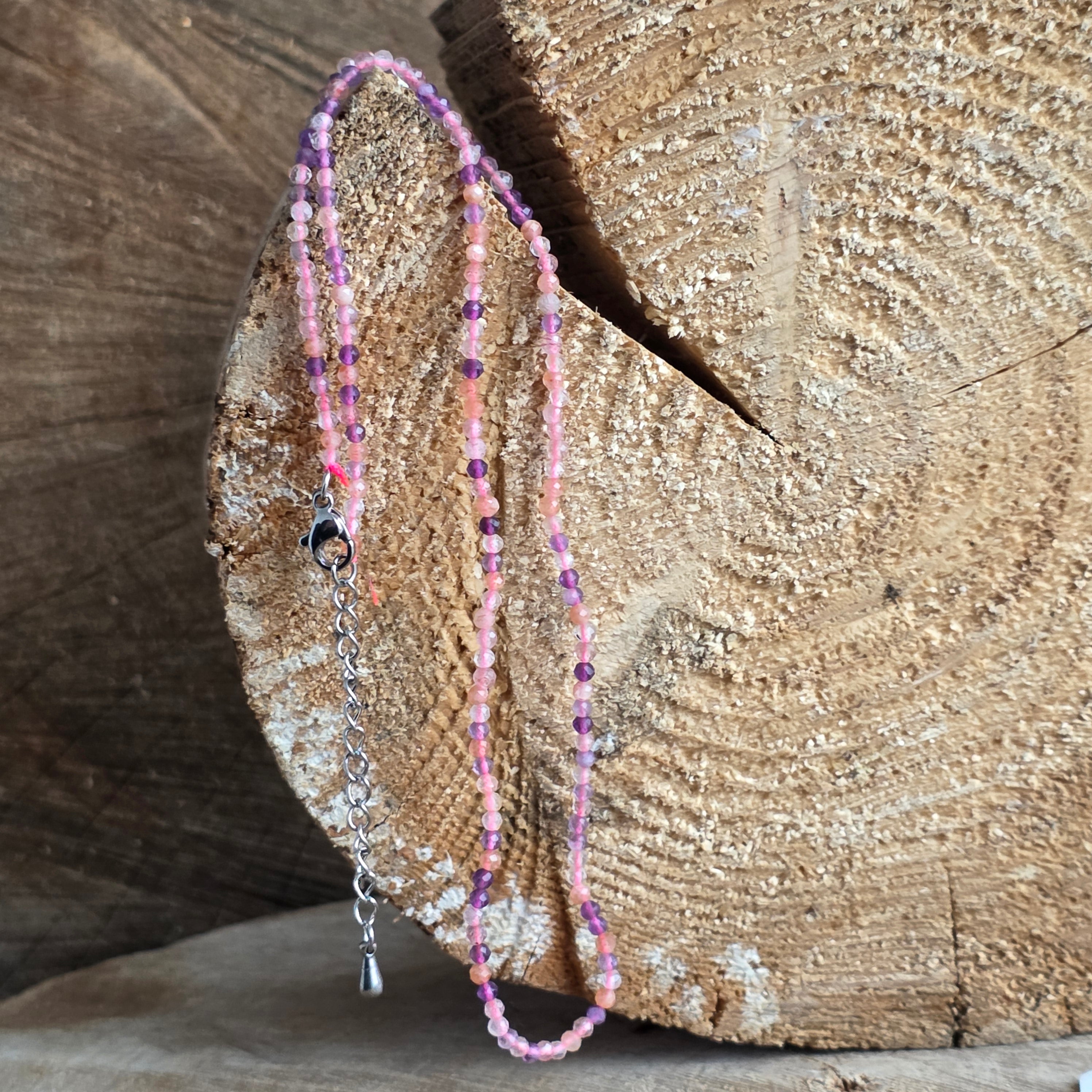 Vélemények - Ametiszt, Rózsakvarc és Citrin gyöngyös nyaklánc 2 mm-es gyöngyökkel
