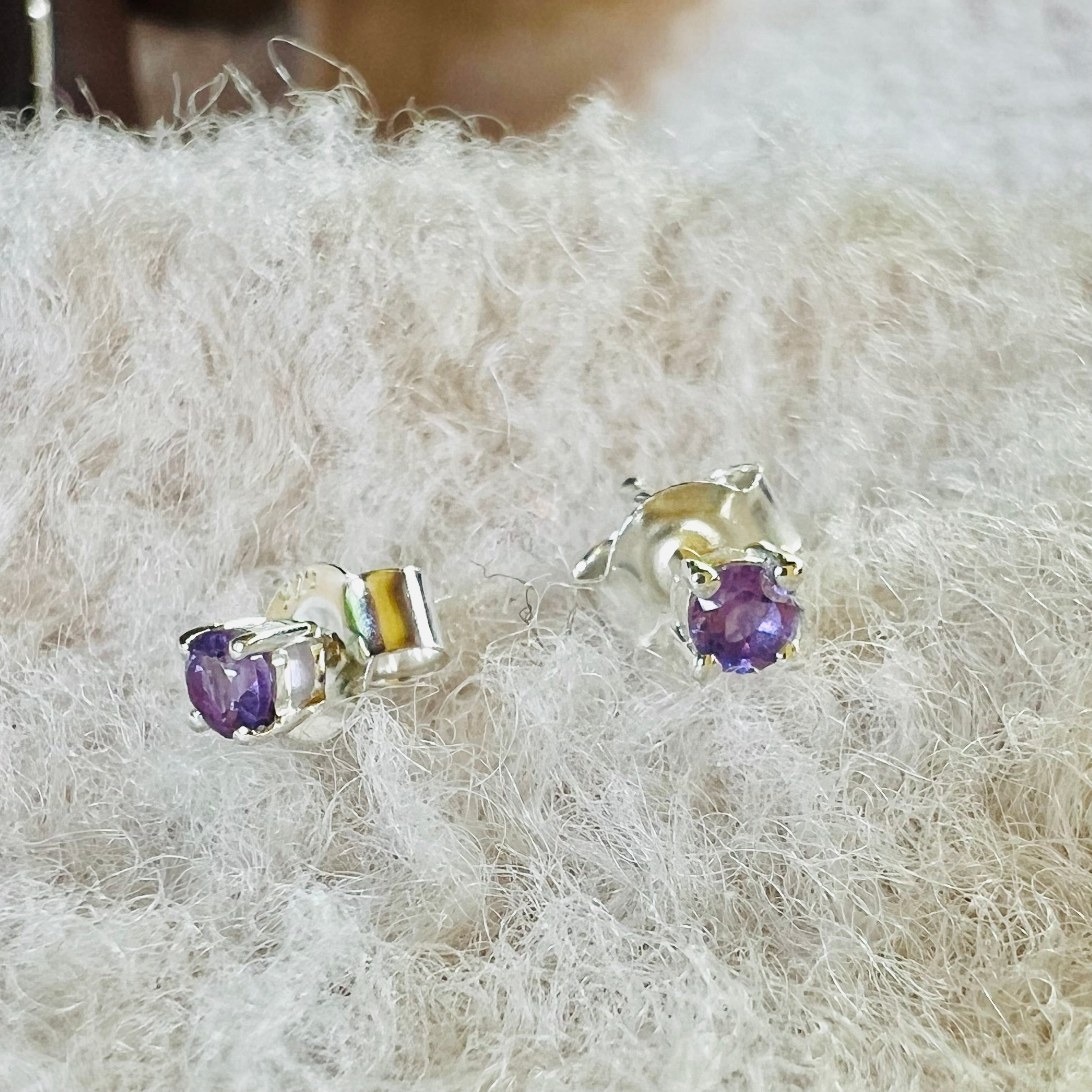 Ametiszt Stud fülbevalók ezüst 3 mm kerek
