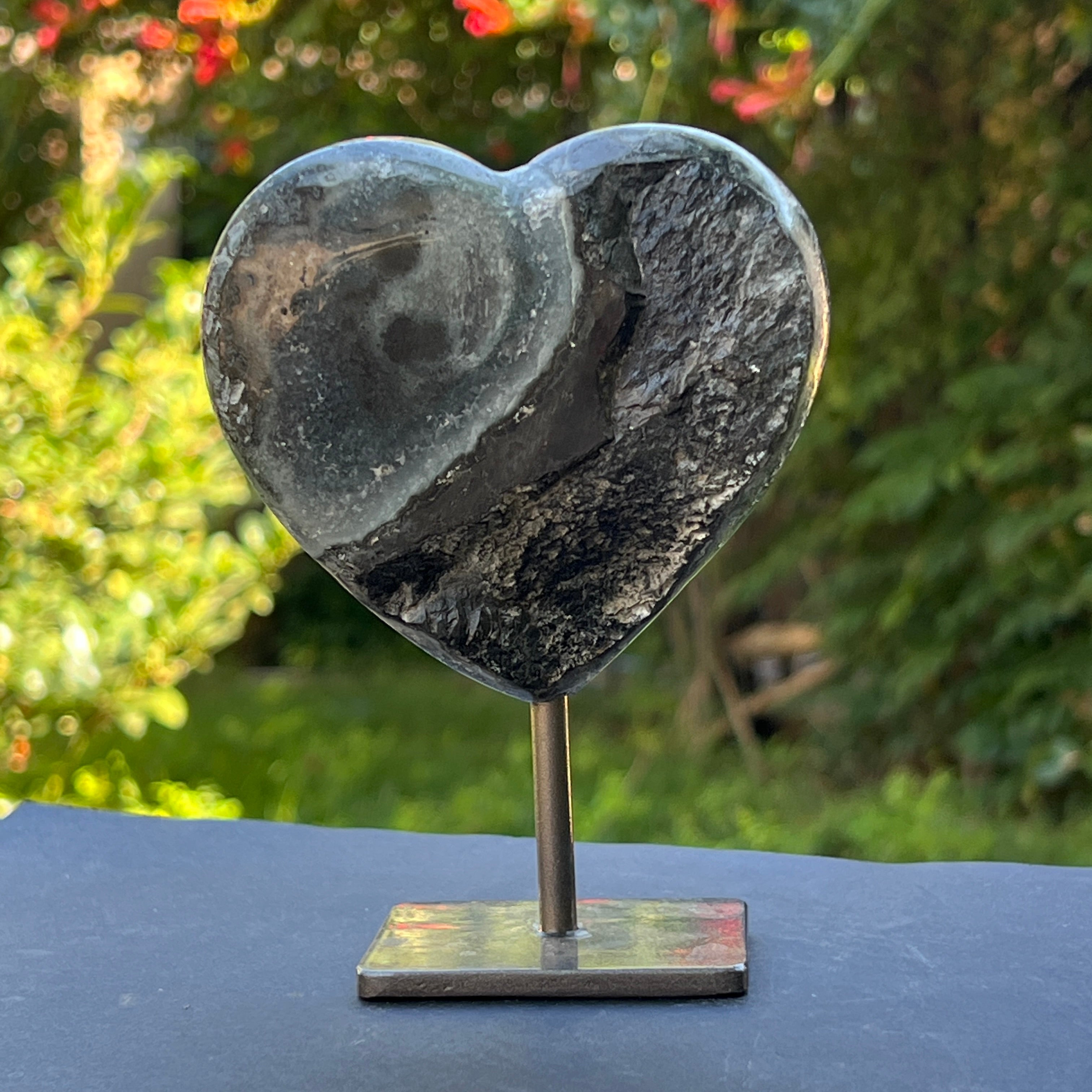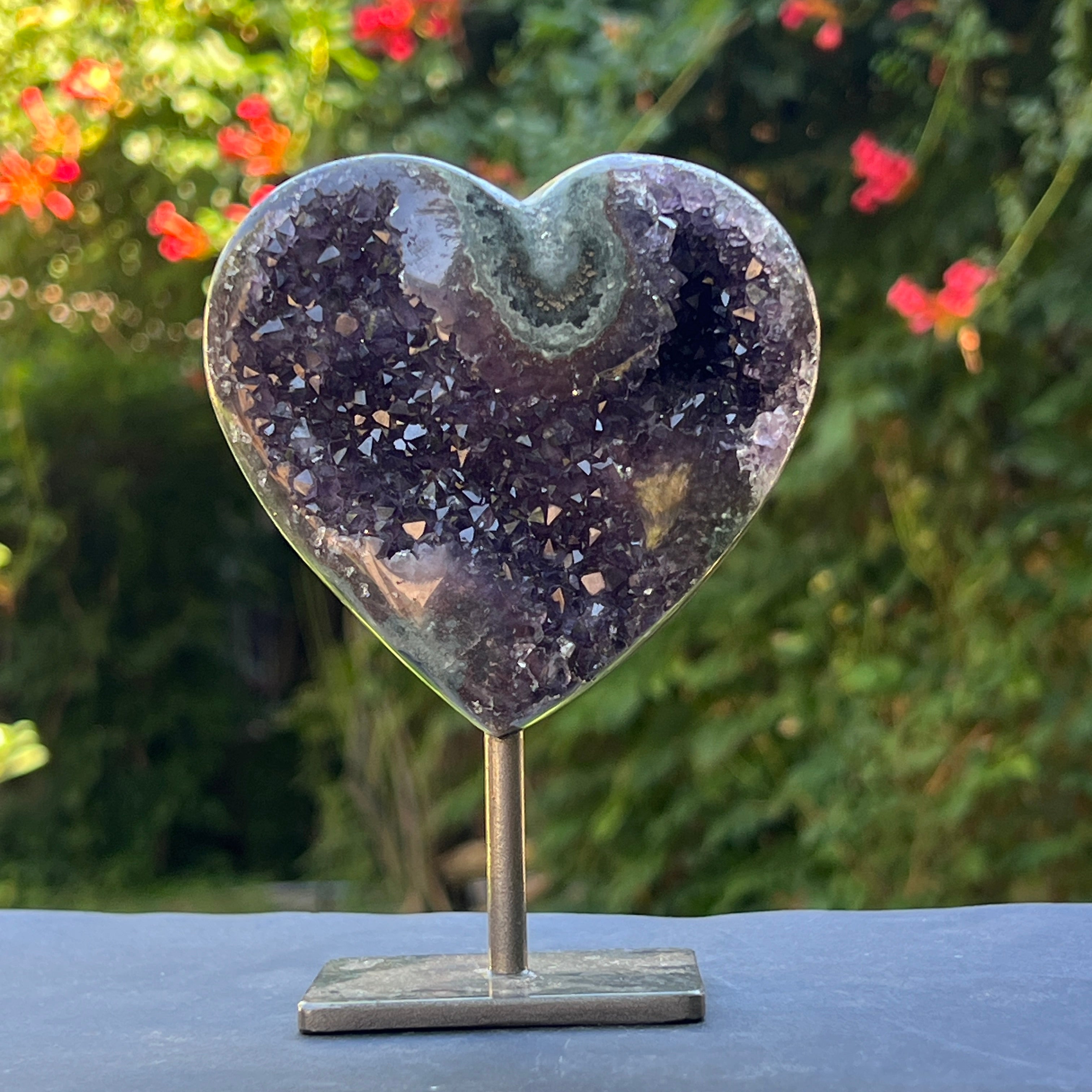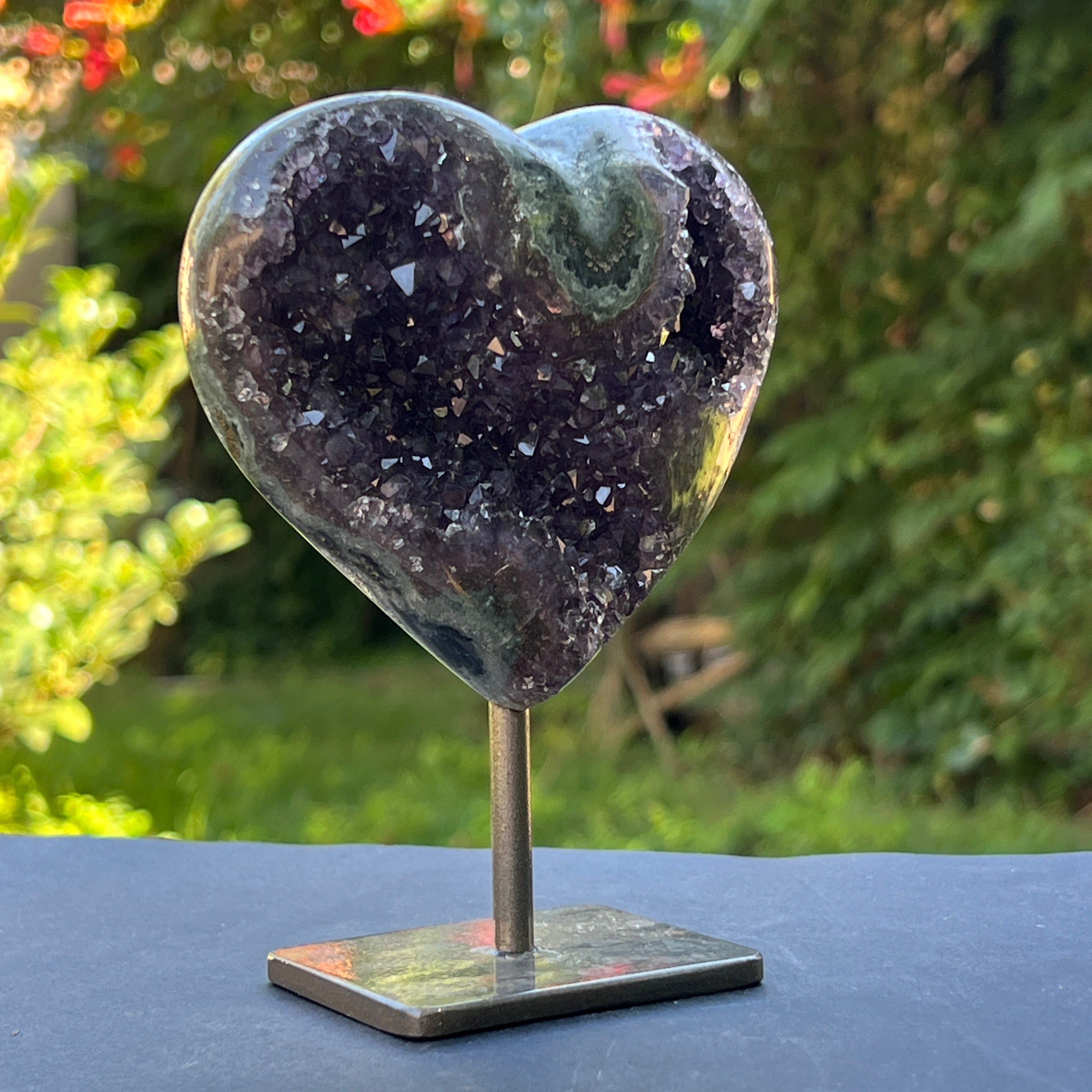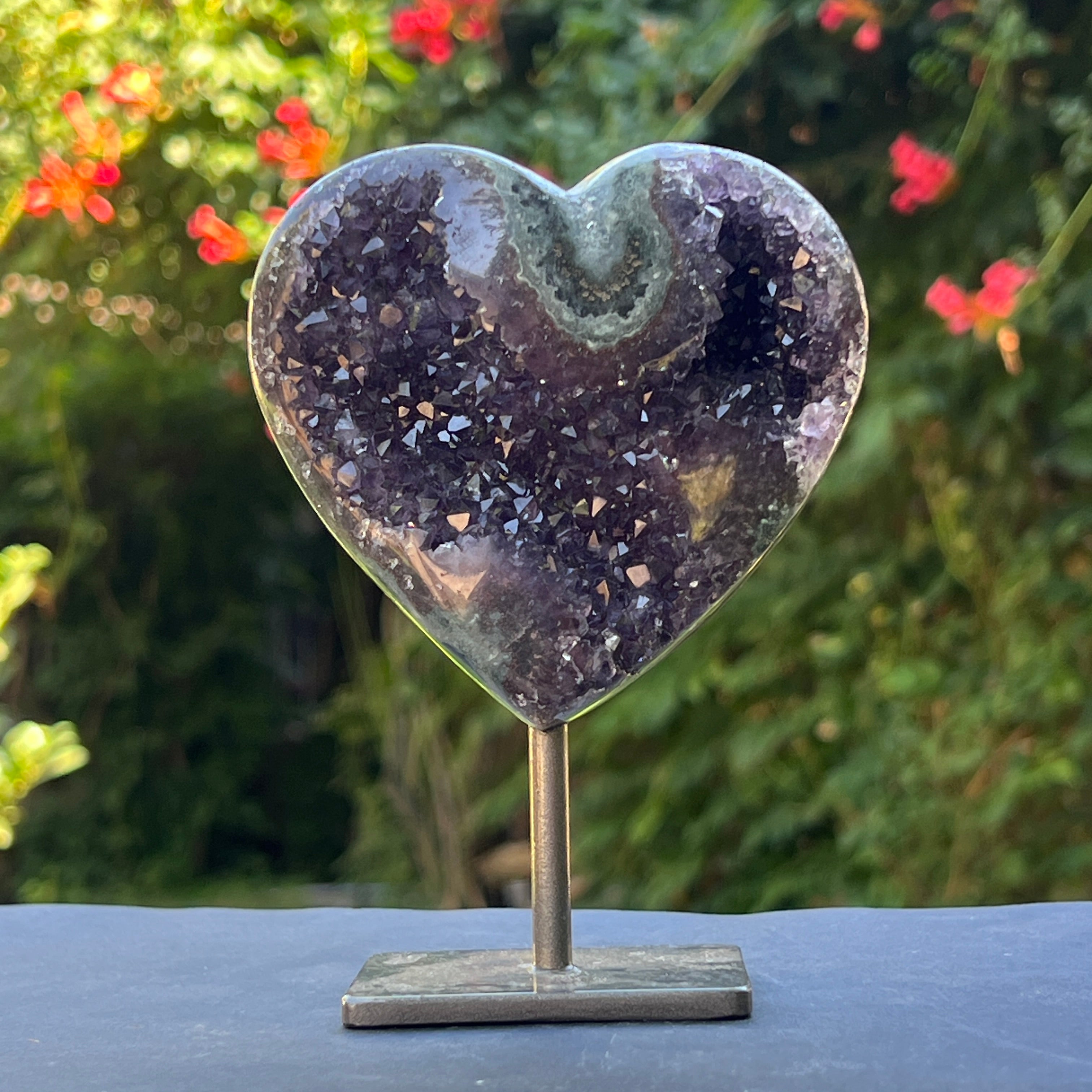 Ametiszt szív állvánnyal modell 7, +AAA minőség, uruguayi ametiszt geóda