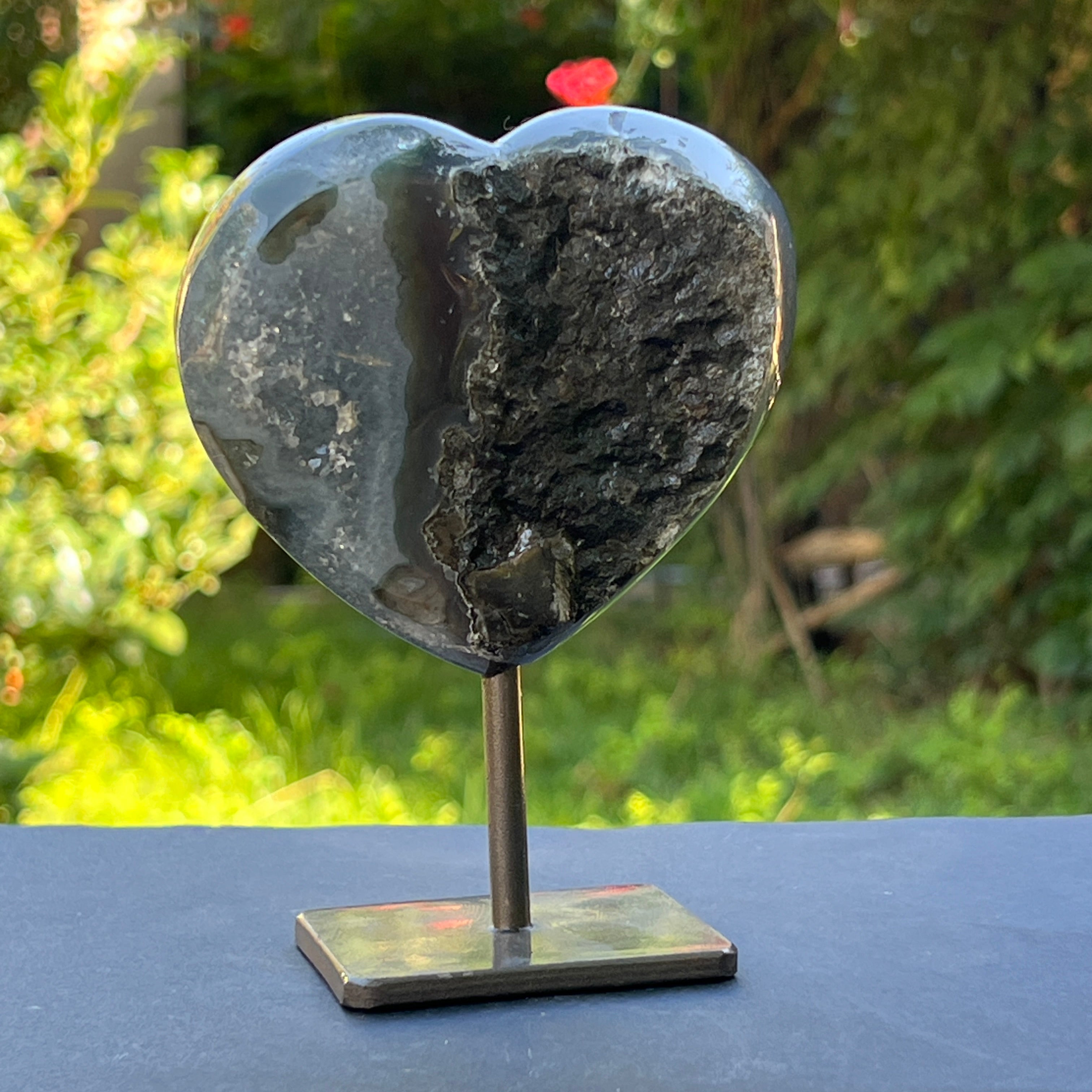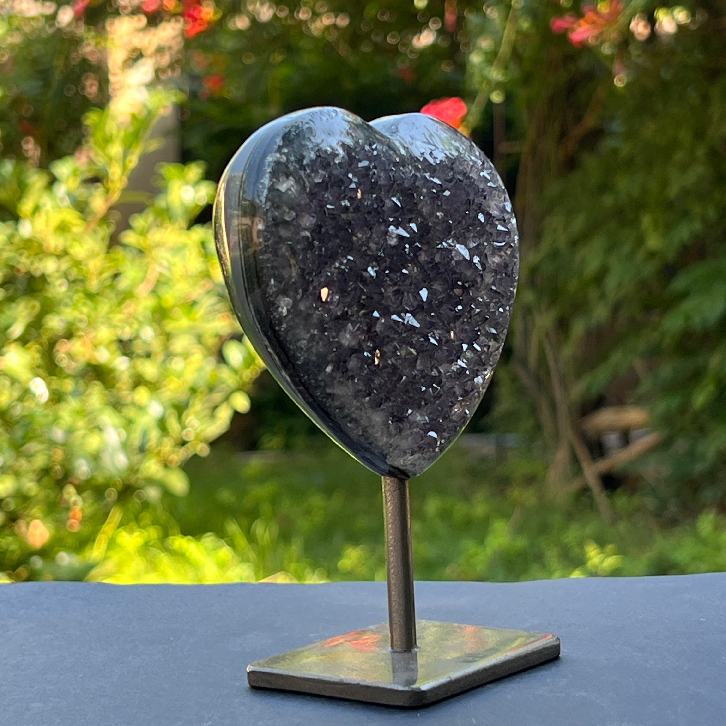 Ametiszt szív állvány 2-es modell, Uruguay-i ametiszt geoda, szív mérete 8,5 cm * 9,5 cm * 2,5 cm