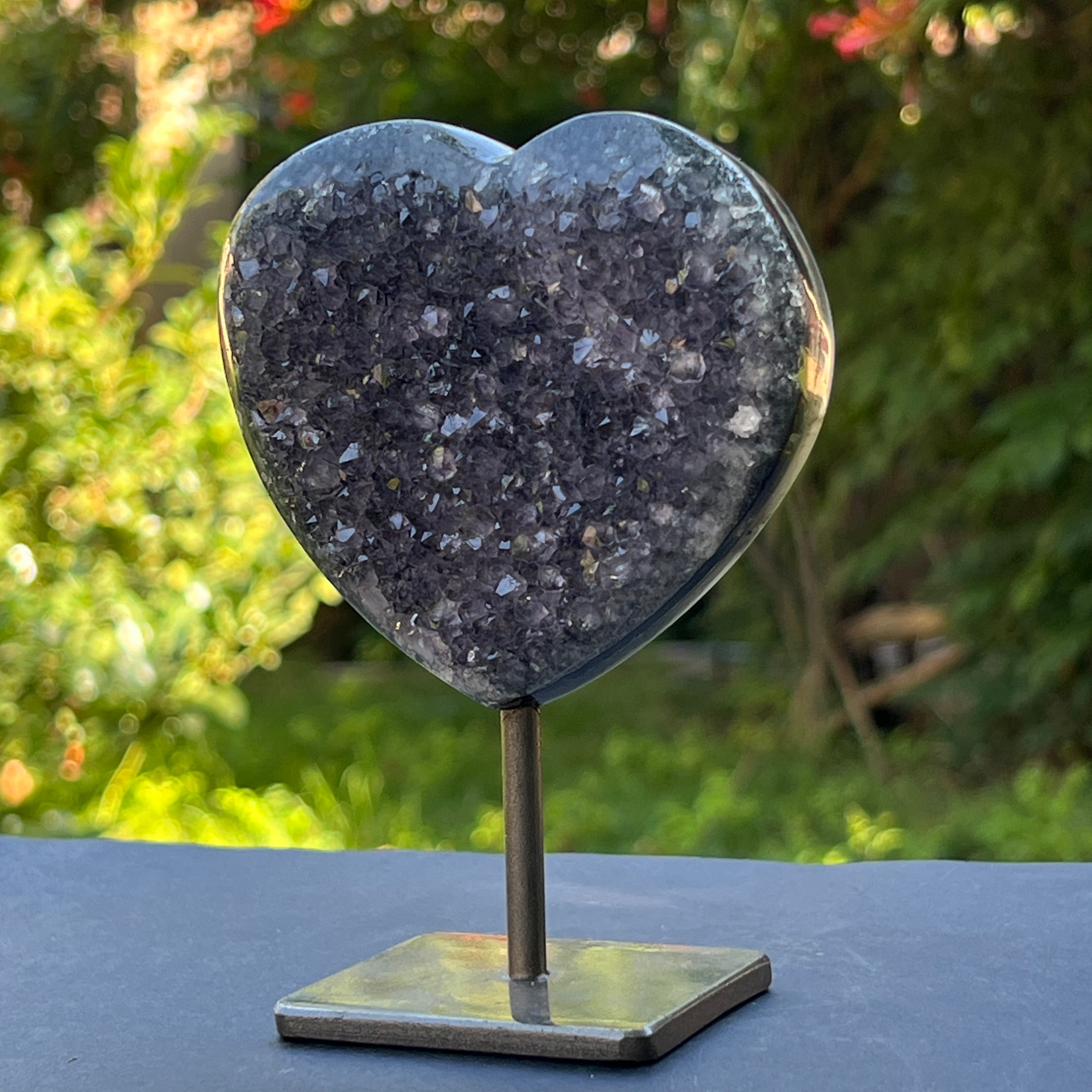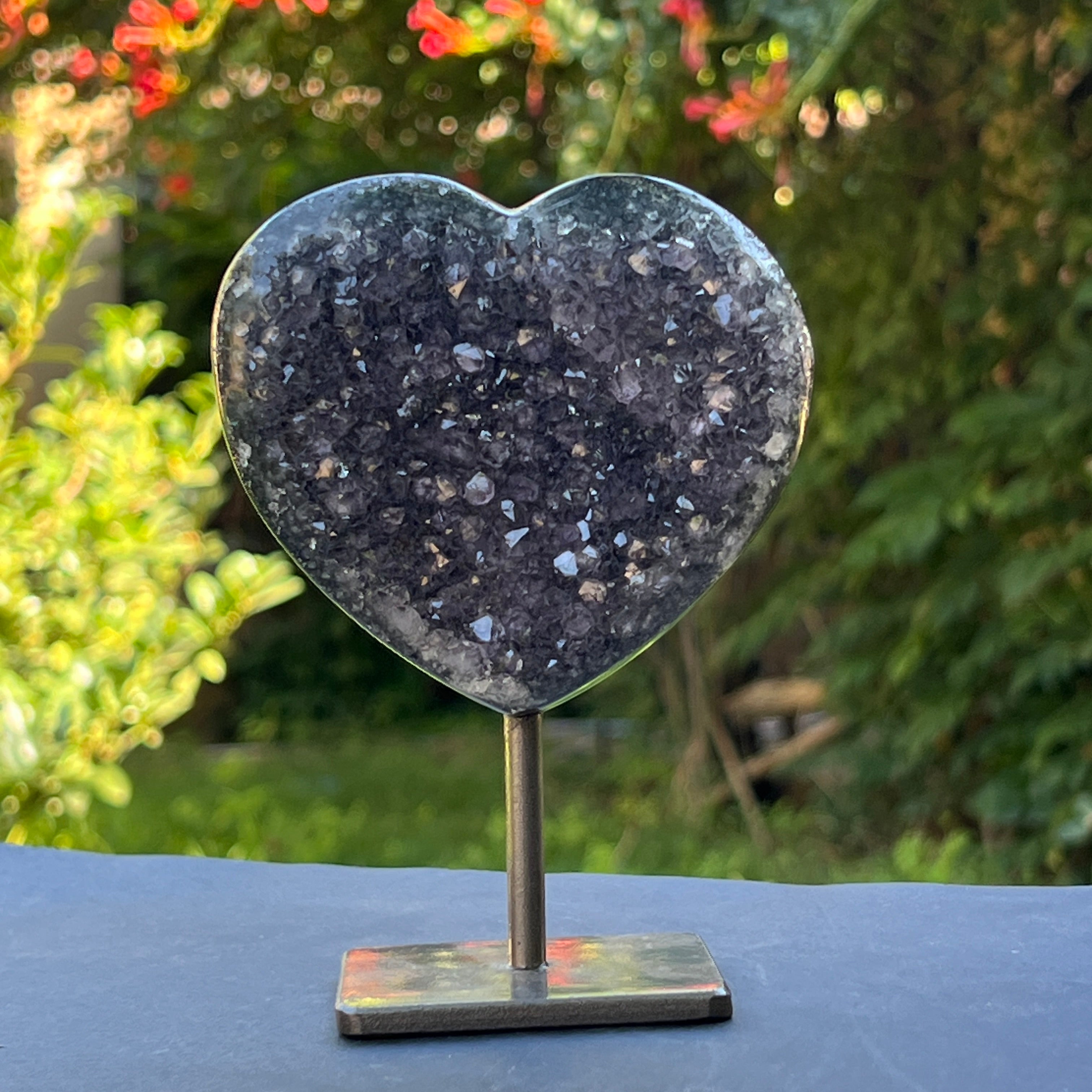 Ametiszt szív állvány 2-es modell, +AAA minőség, Uruguay-i ametiszt geoda