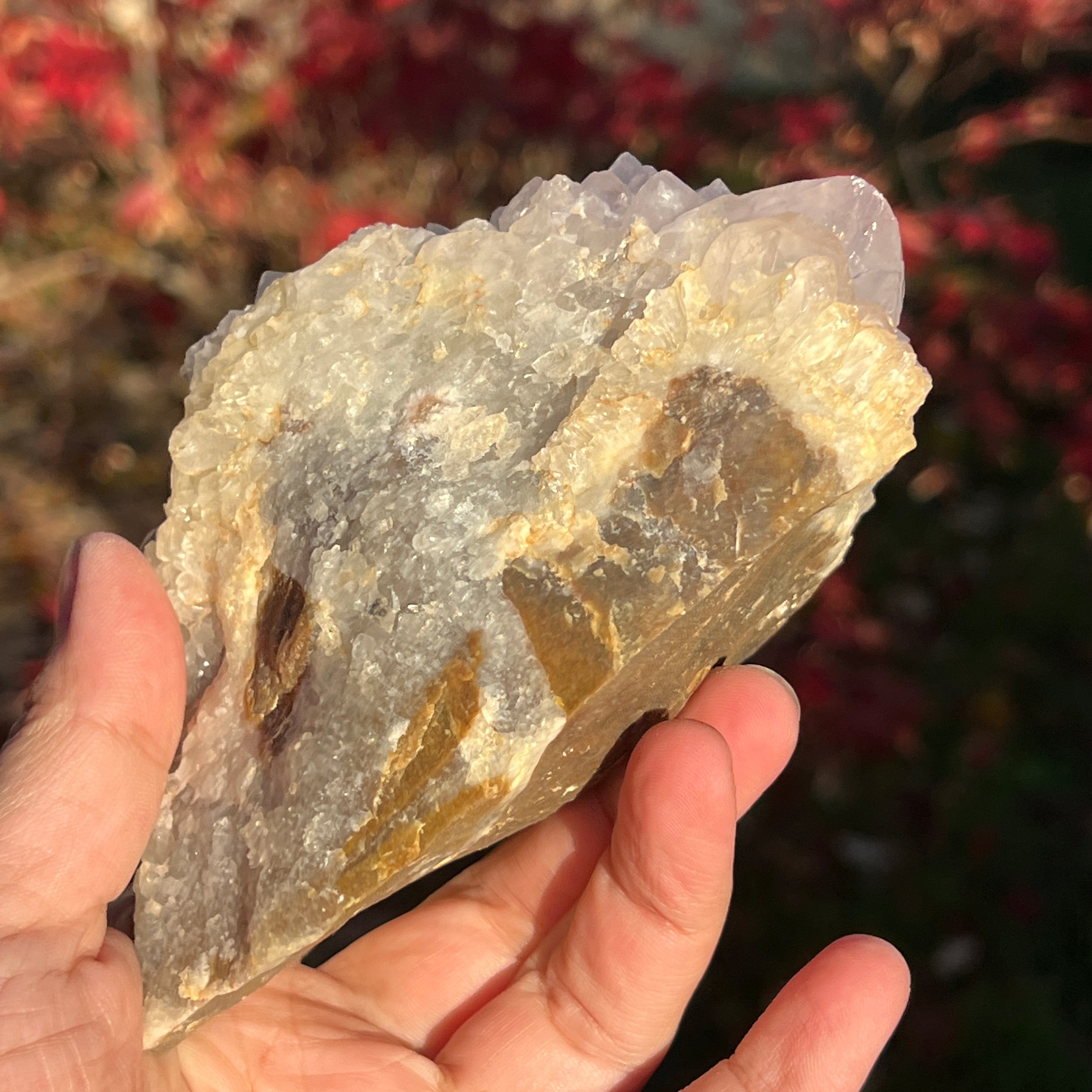 Ez az ametisztes achát ásványvirág egy ritka természetes darab, amely a Föld mélyén keletkezett, ott, ahol az achát lágy vonalai találkoznak az ametiszt misztikus csillogásával.