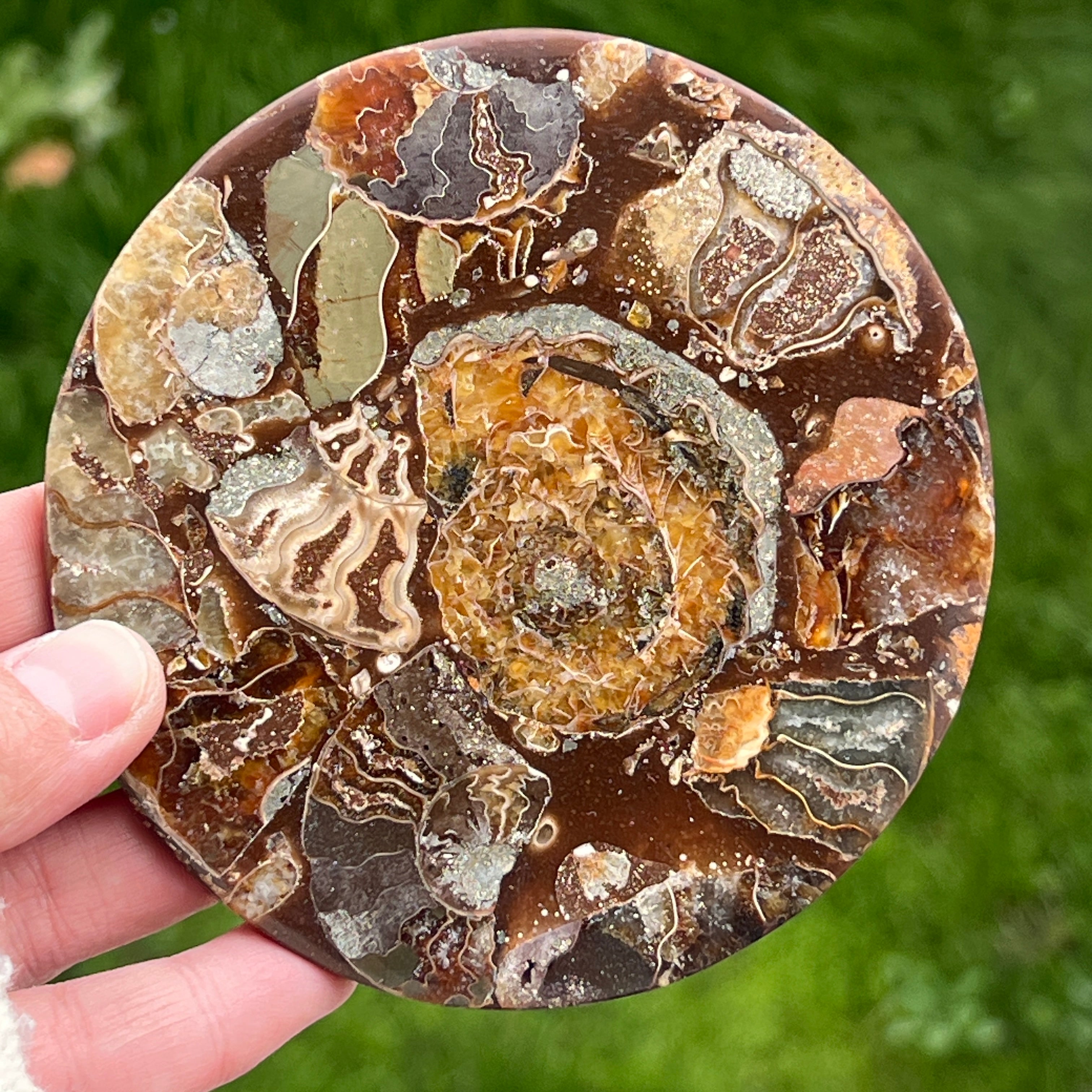 Az amonit fosszília kristályok valódi amonit fosszíliákból készülnek. Ezek a fosszíliák különböző méretűek és díszítésűek lehetnek, a fajoktól és a geológiai koruktól függően.