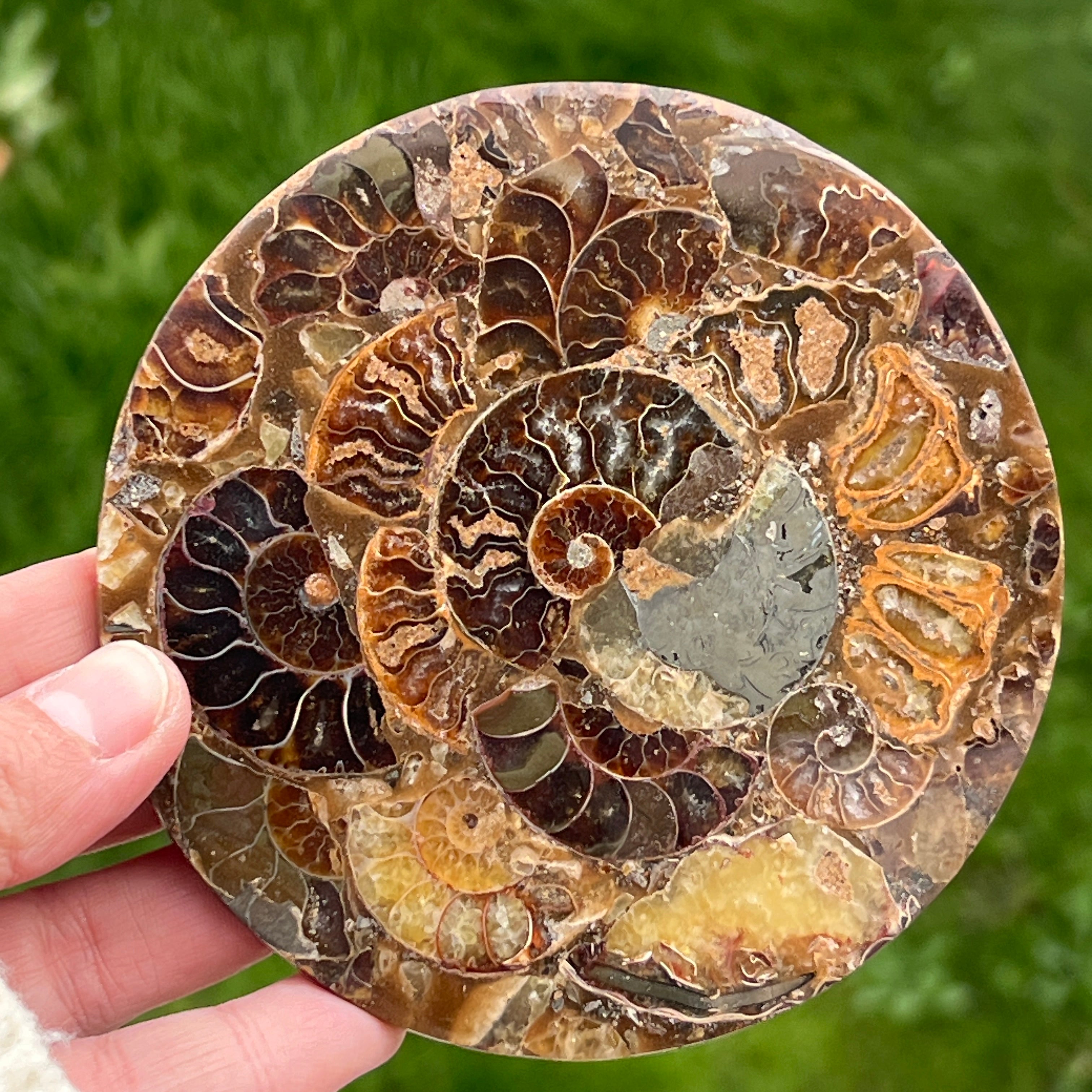 Az amonit fosszília kristályok valódi amonit fosszíliákból készülnek. Ezek a fosszíliák különböző méretűek és díszítésűek lehetnek, a fajoktól és a geológiai koruktól függően.