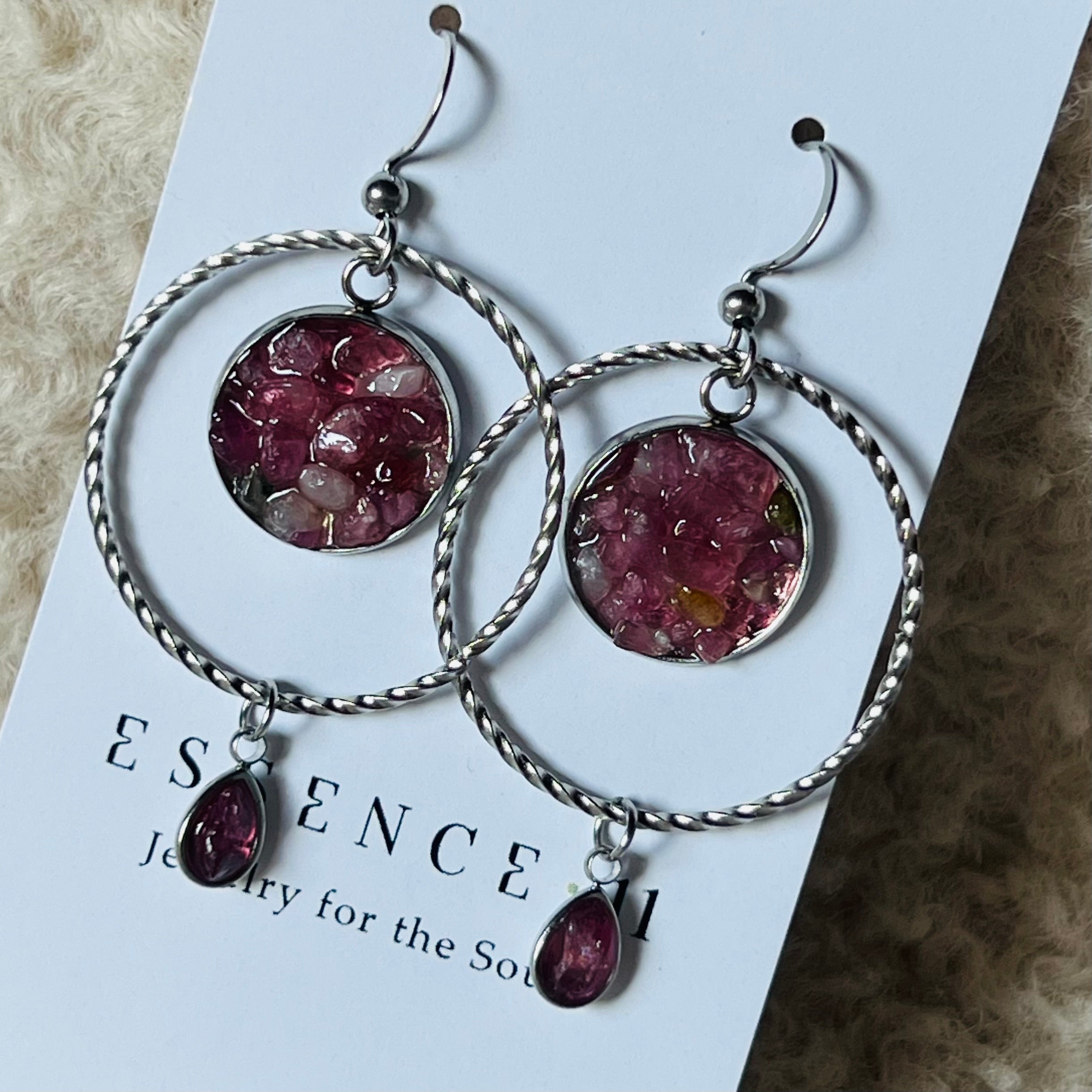 Amplify rózsaszín turmalin fülbevaló, méret: 4,5 cm, Essence 11 kollekció