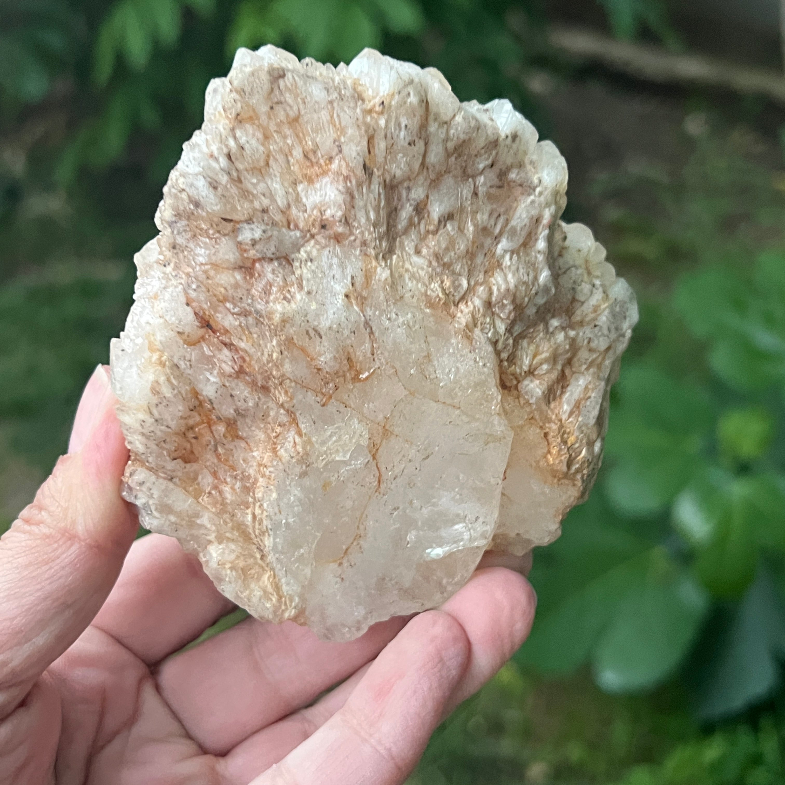 Az a jelenség, amely e különleges forma létrejöttét okozza, a másodlagos epitaxia – egy olyan folyamat, amely során a kis kvarckristályok egy anya kristály felületén fejlődnek, megőrizve a kristályos orientációt, de tömör, szemcsés és sugárzó textúrát képezve. Az eredmény egy gazdagon texturált felület organikus esztétikával és finom fényjátékkal, az adott szögből való megtekintéstől függően.