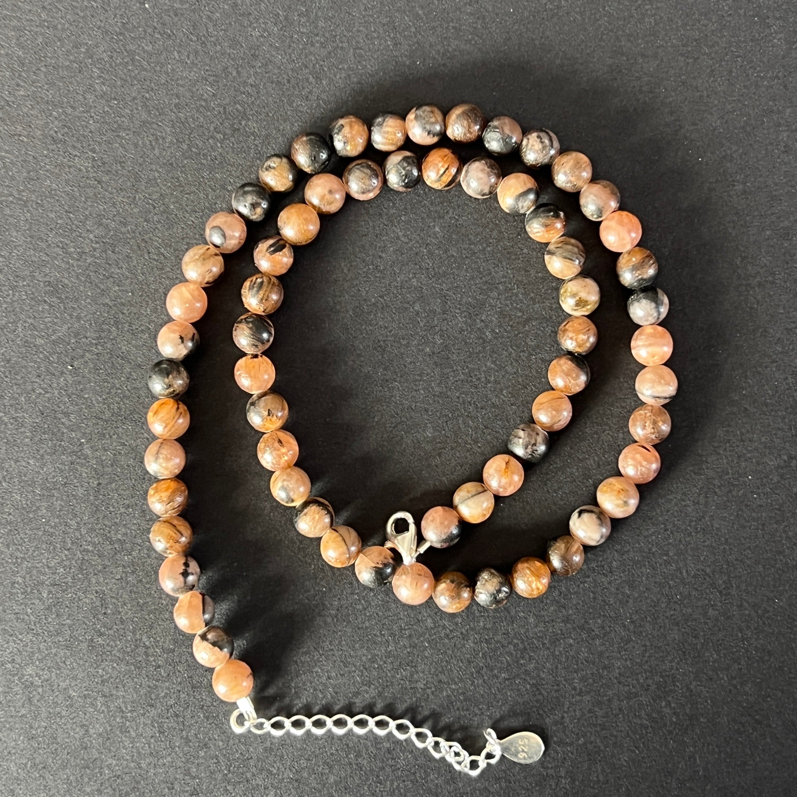 Anyagok: természetes andaluzit (kiasztolit) 6 mm, ezüst 925