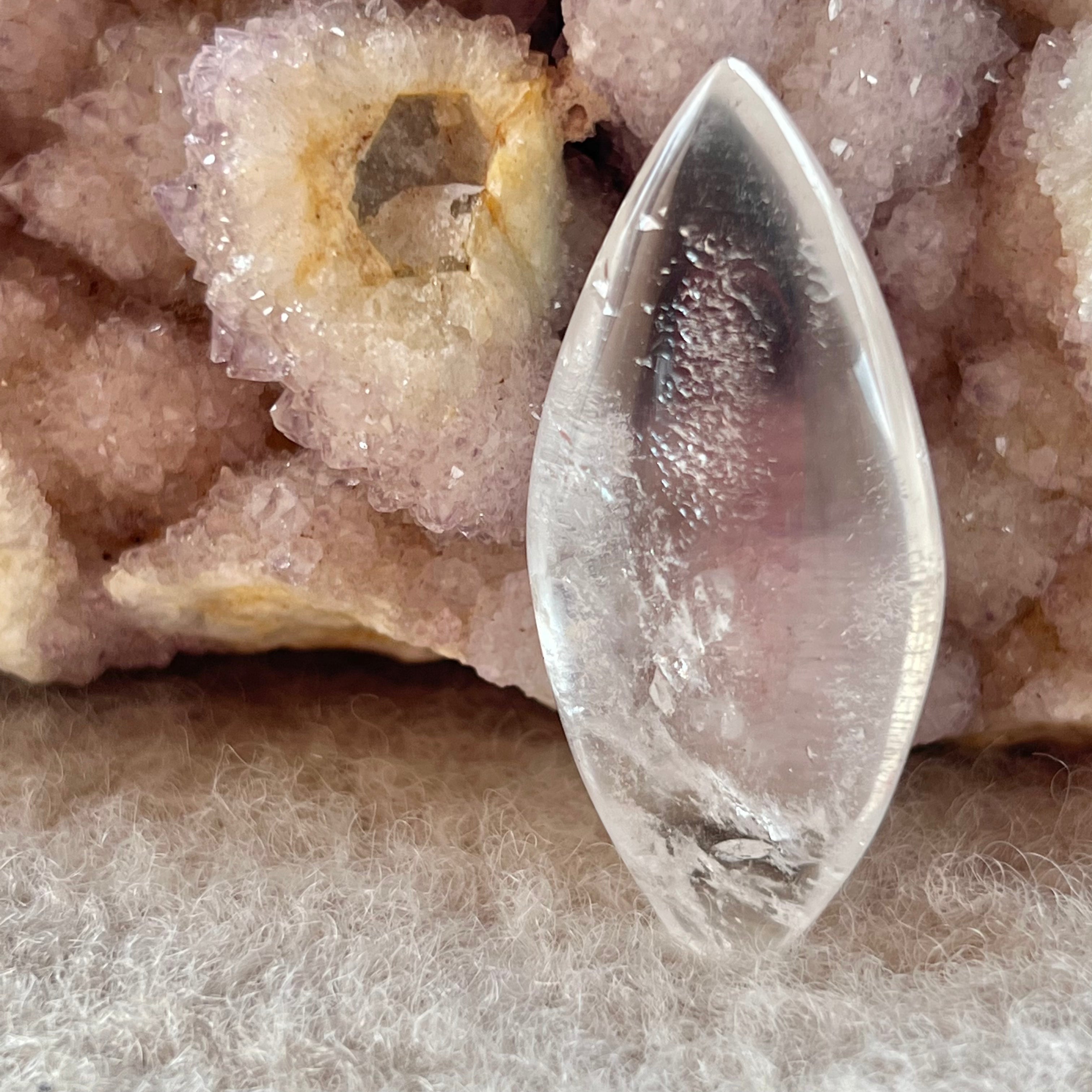 Descriere - Angyalkönnyek színtelen kvarc/kőzetkristály hengerelt kő/cabochon m2